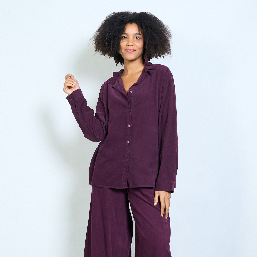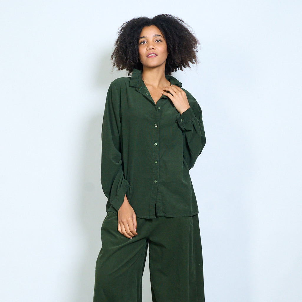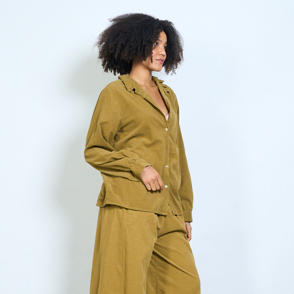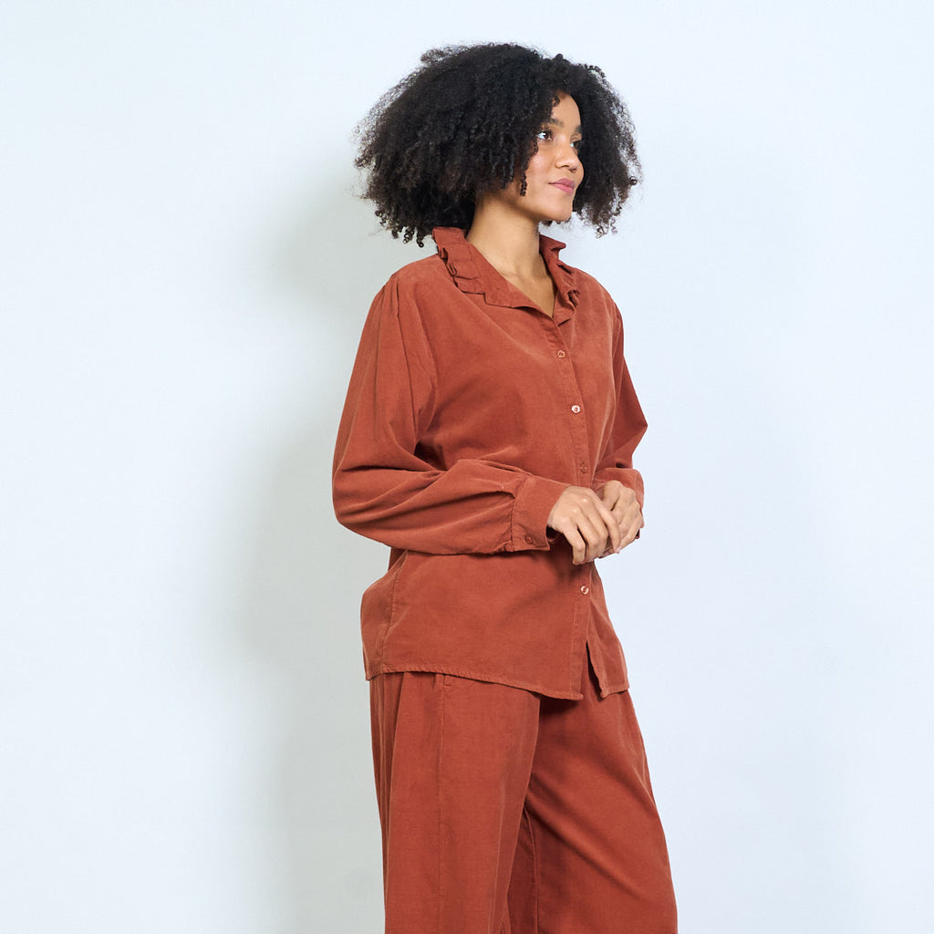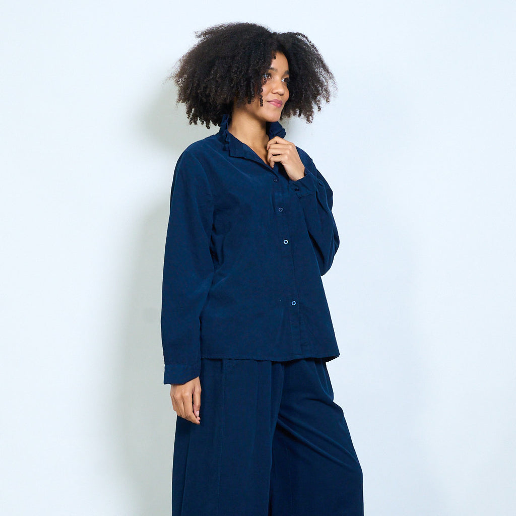 Вельветовая блузка с длинными рукавами и воротником с рюшами на пуговицах оптом