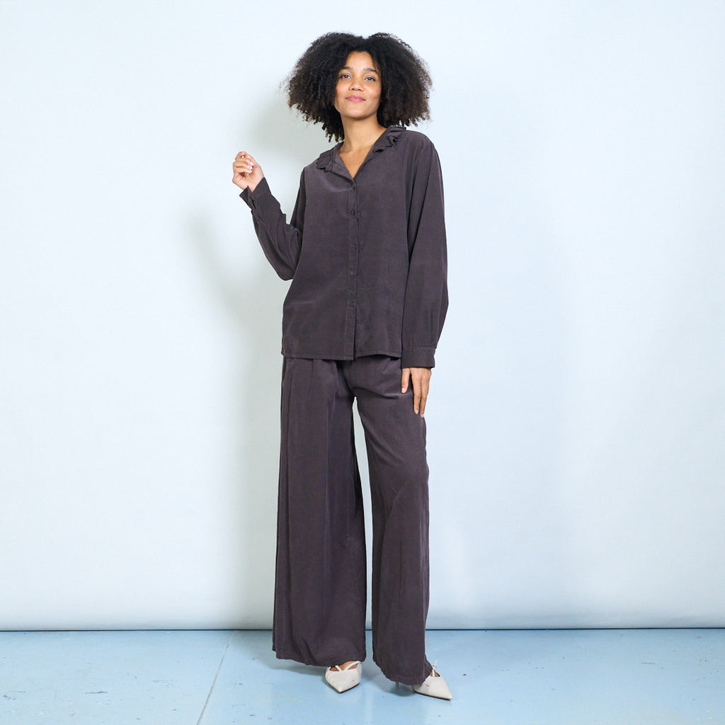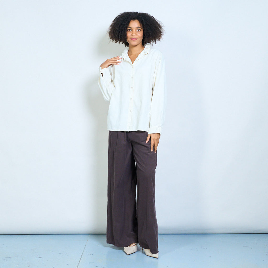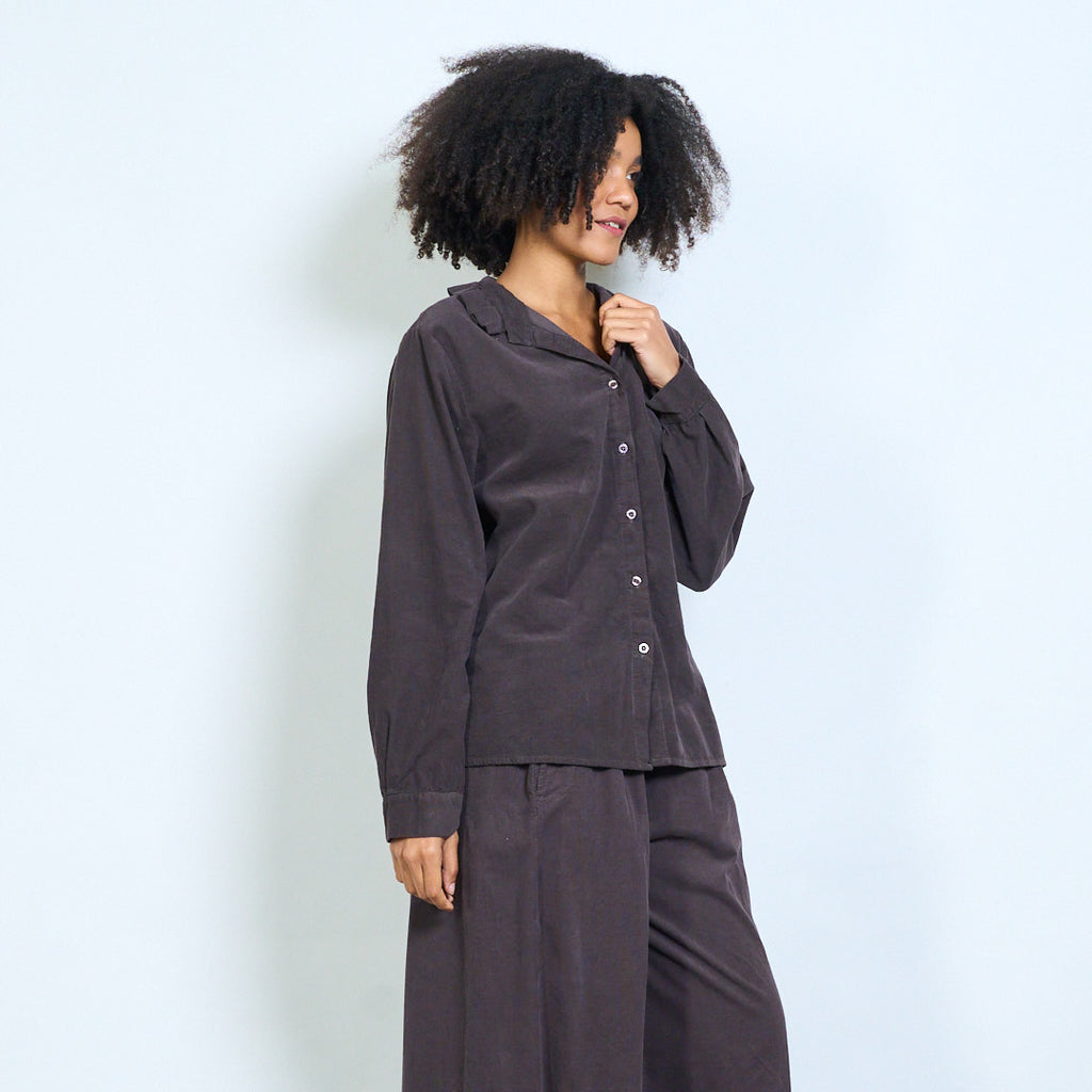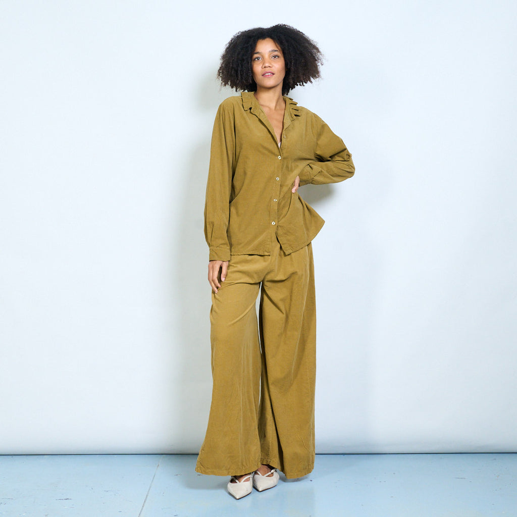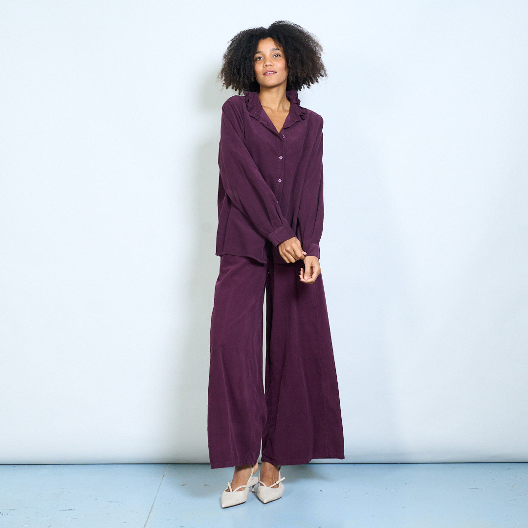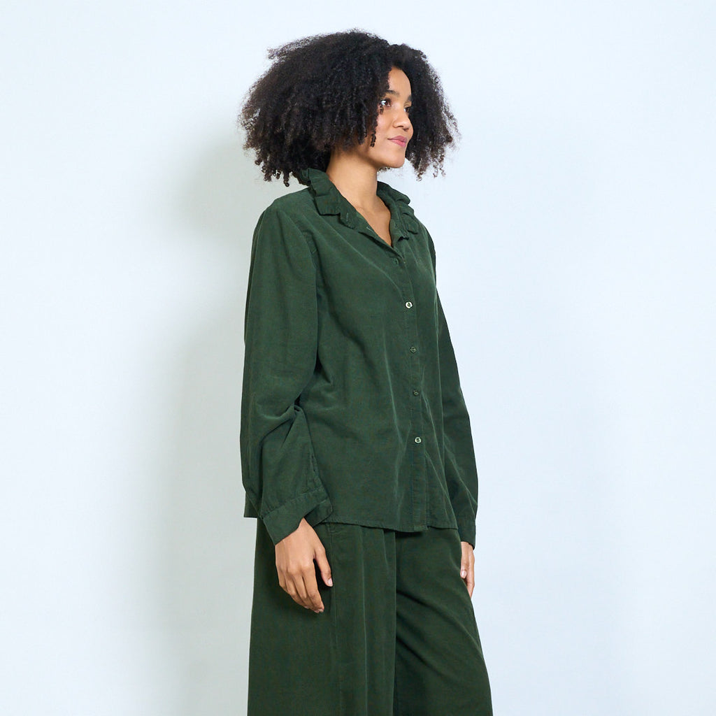 Вельветовая блузка с длинными рукавами и воротником с рюшами на пуговицах оптом