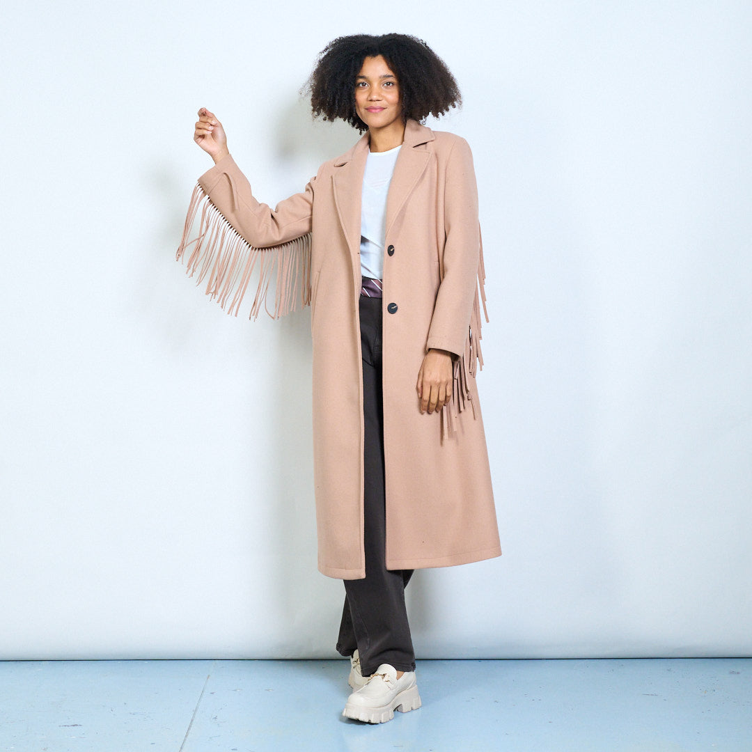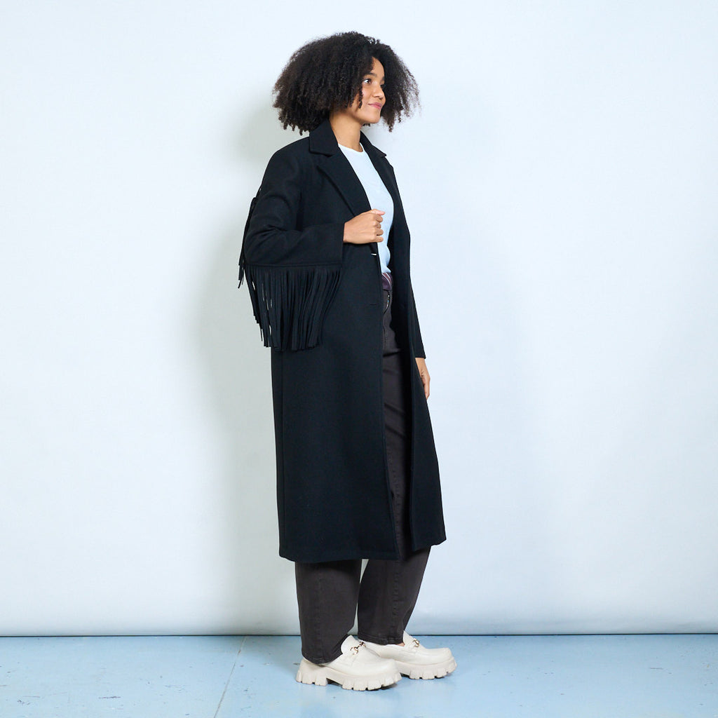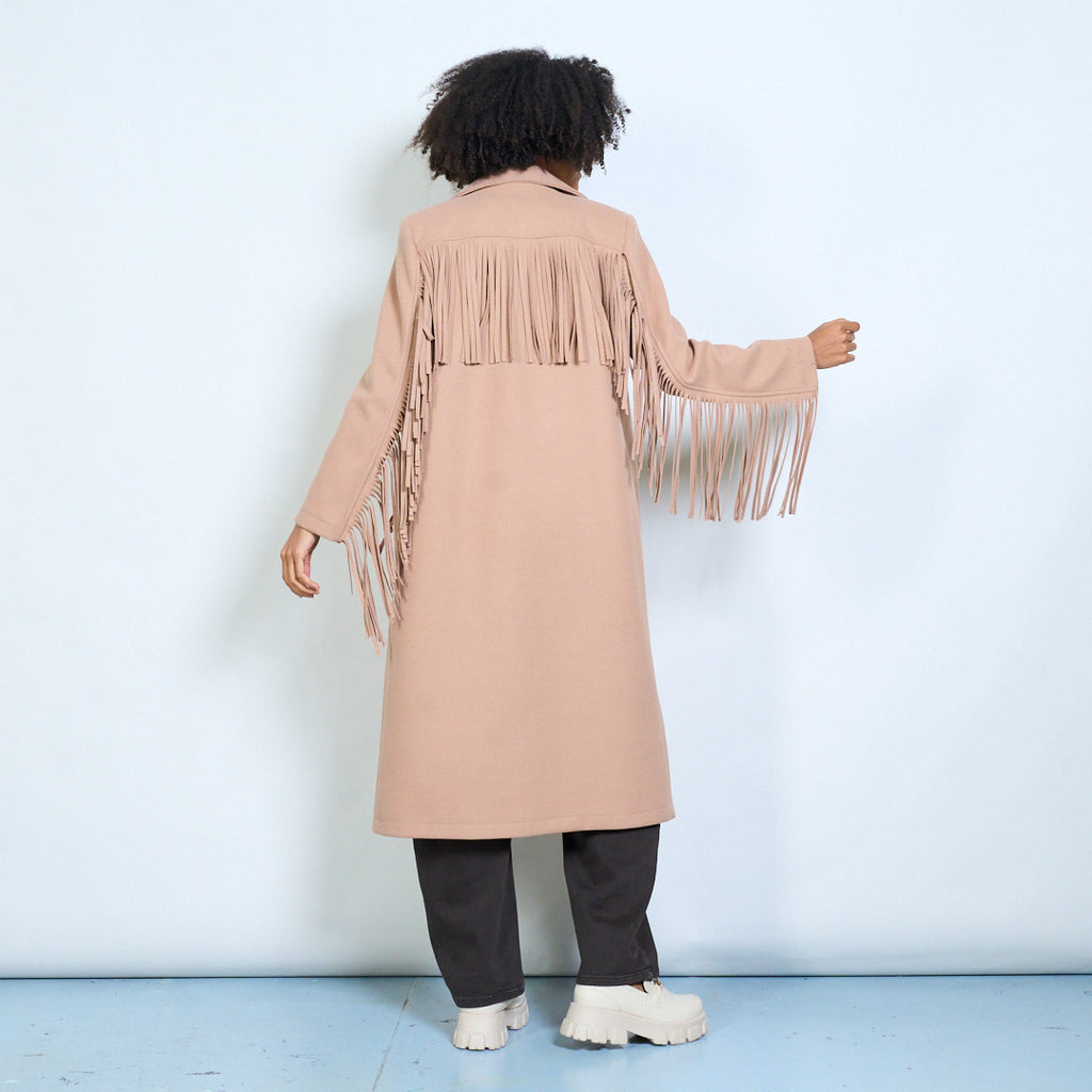 Длинное пальто строгого кроя с бахромой в стиле вестерн оптом