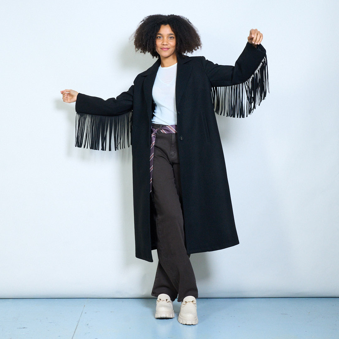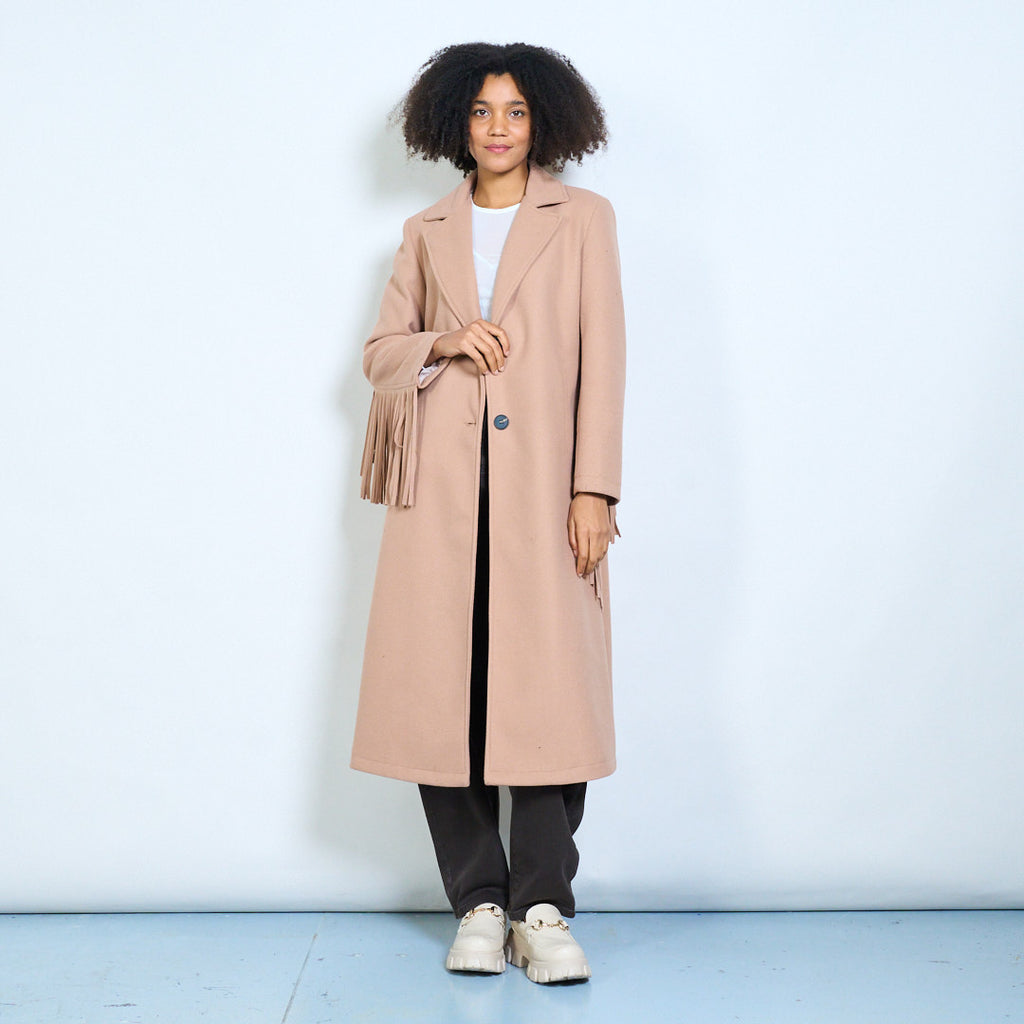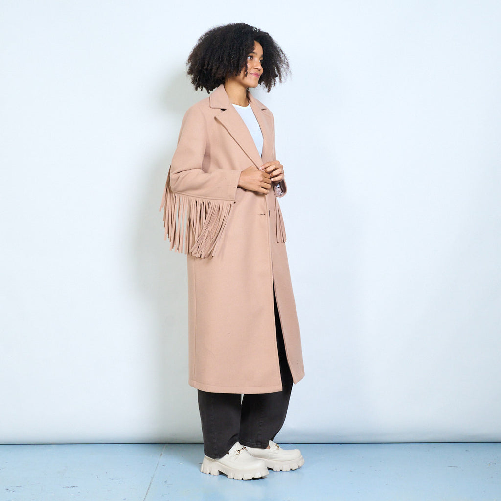 Длинное пальто строгого кроя с бахромой в стиле вестерн оптом