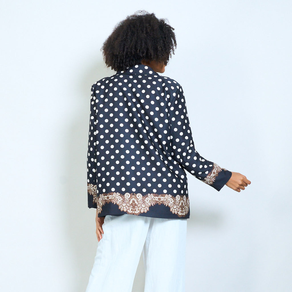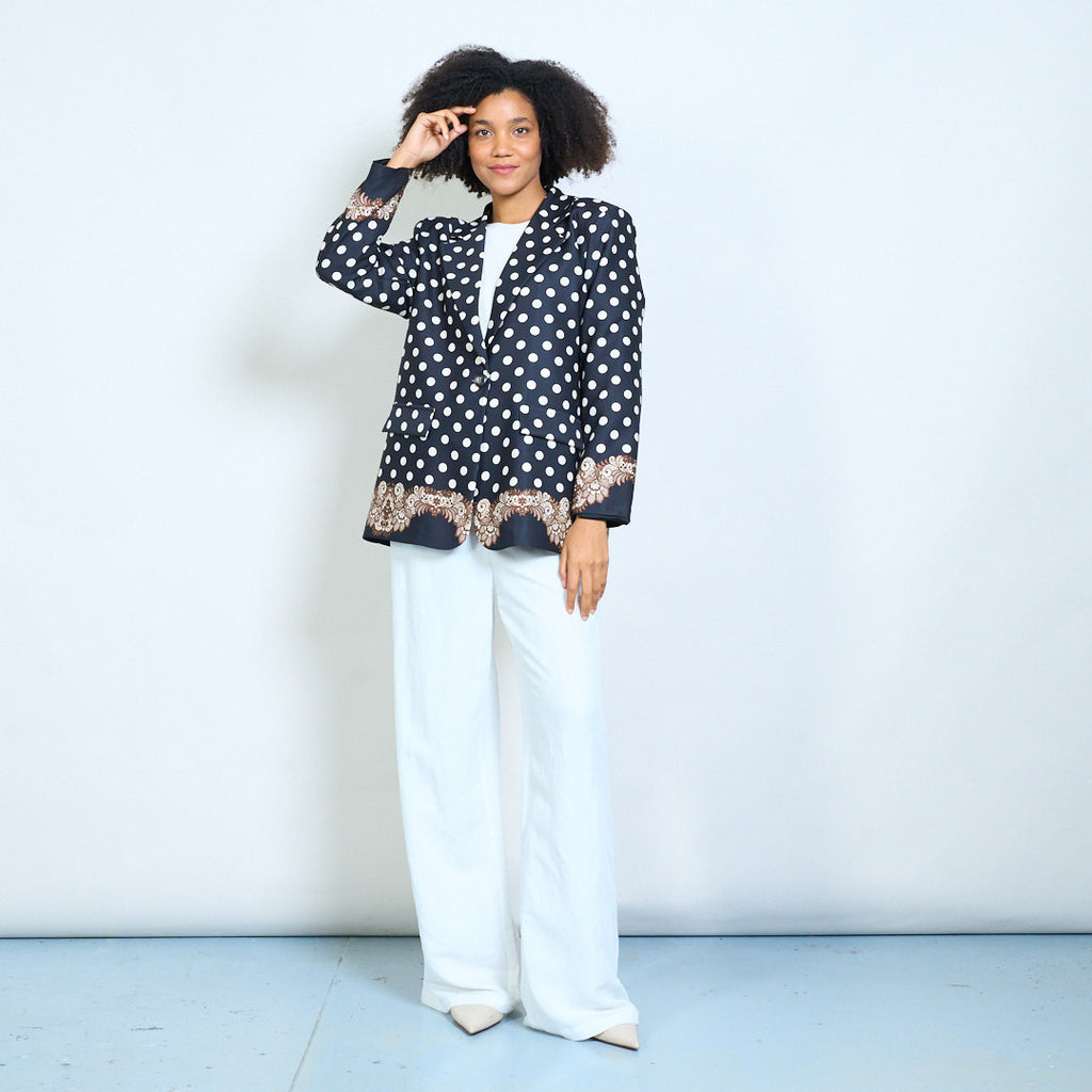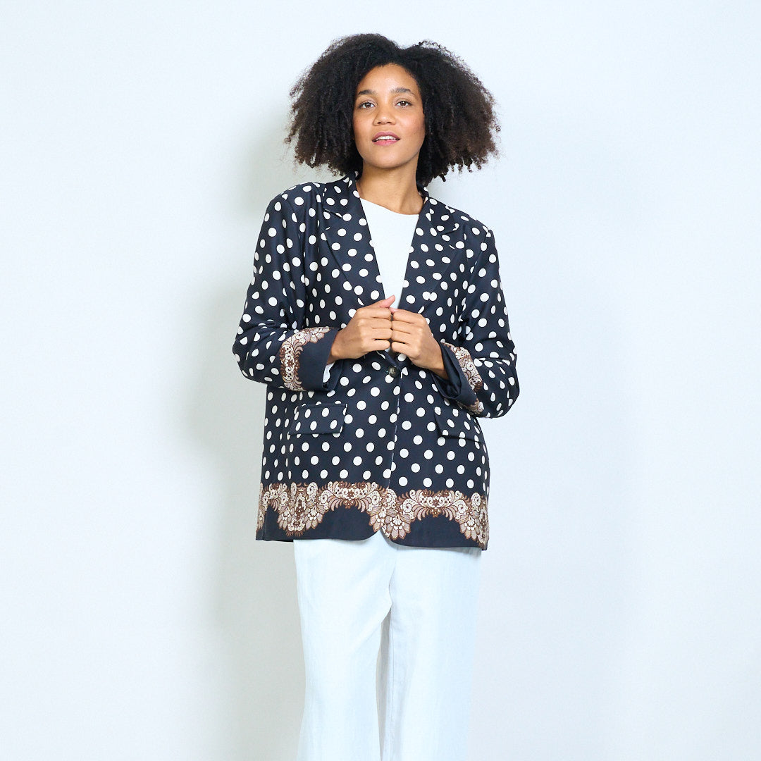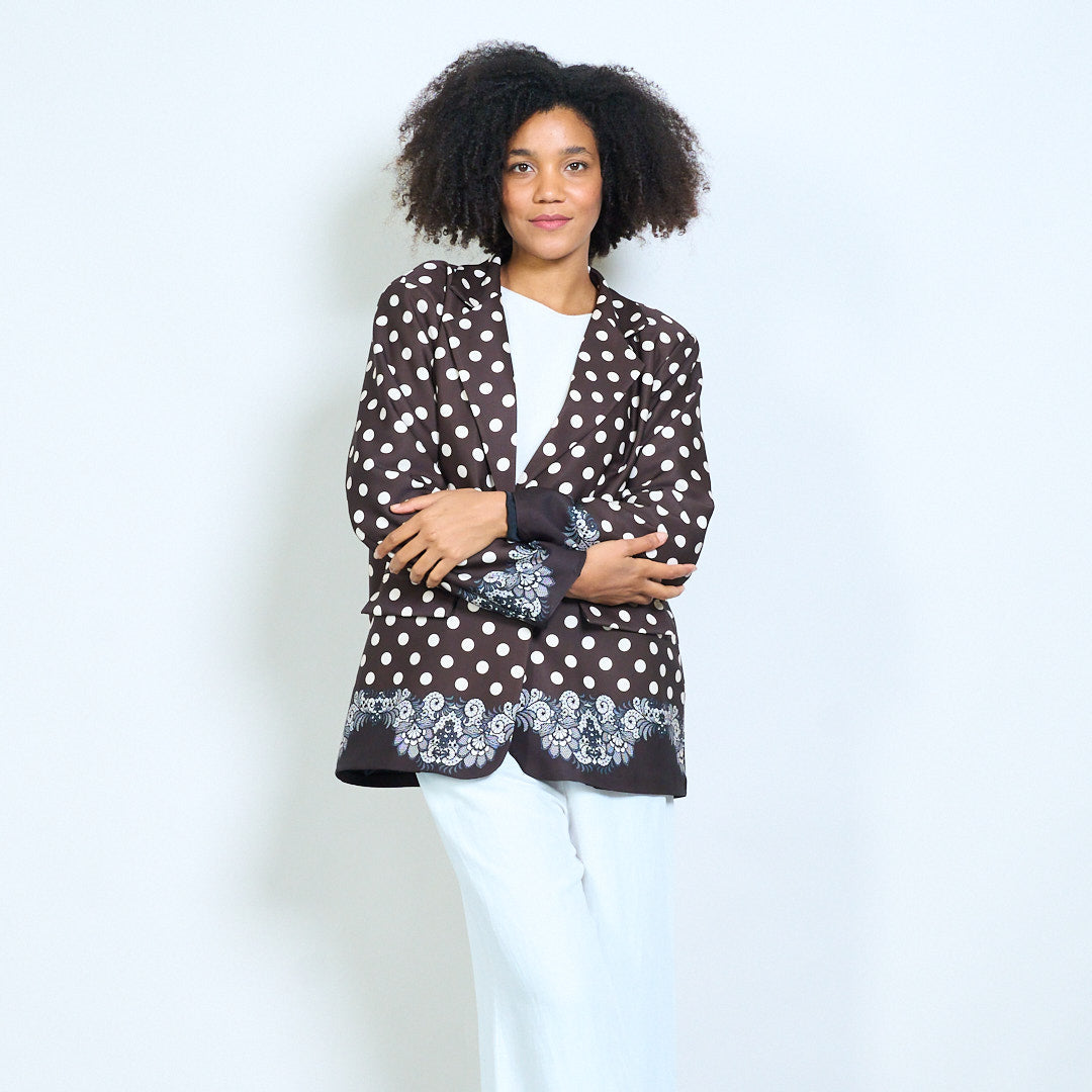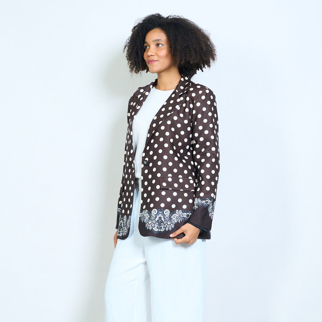 Пиджак на одной пуговице с принтом в горошек и кружевной каймой с принтом оптом