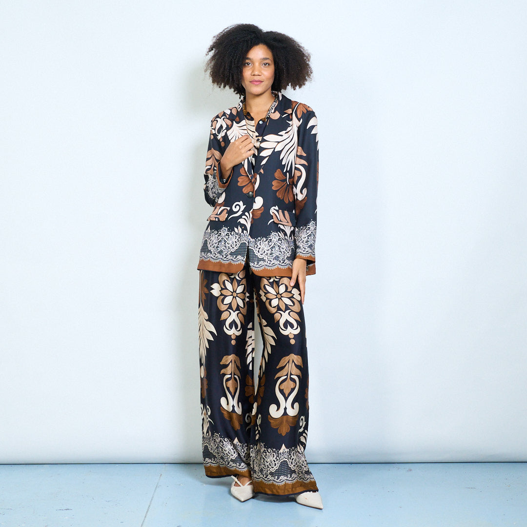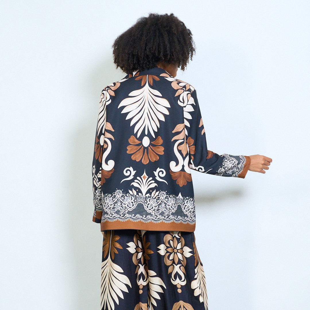 • Демонстрирует элегантный цветочный принт в стиле барокко с богато украшенной отделкой.
