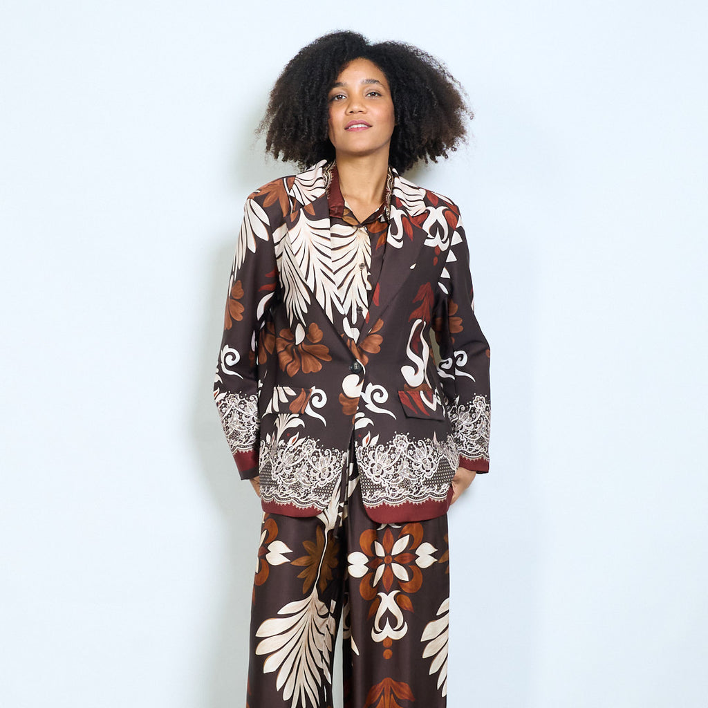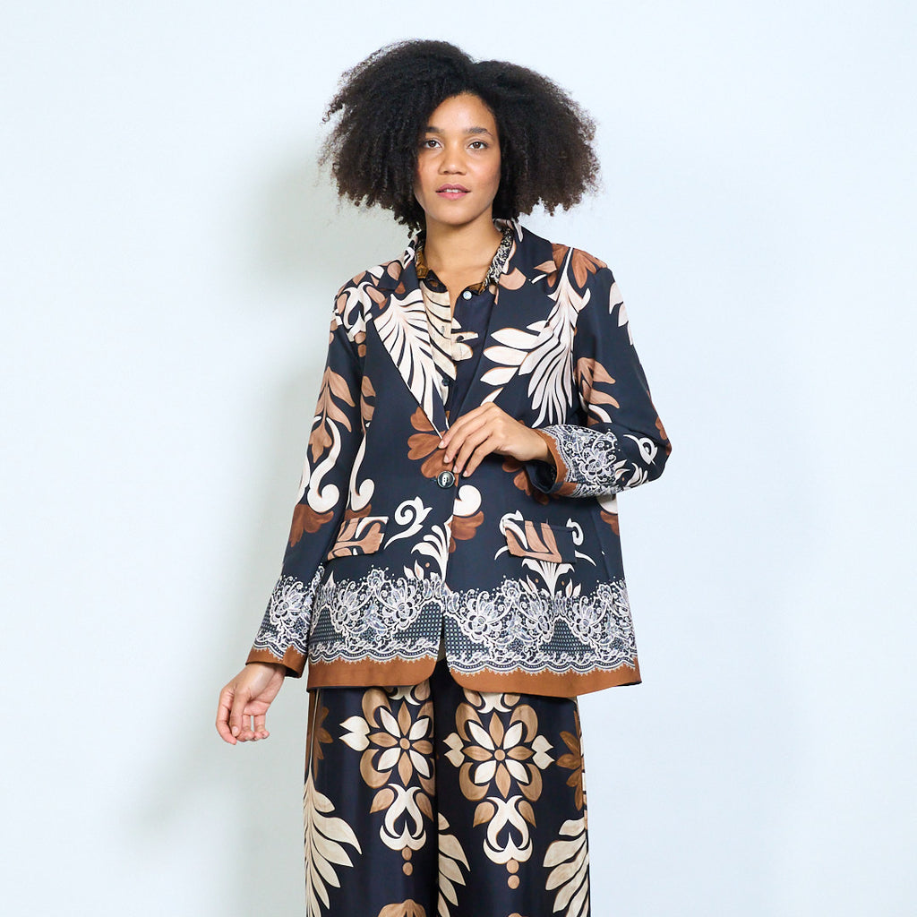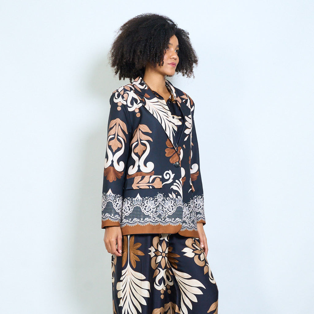 Пиджак на одной пуговице с цветочным принтом в стиле барокко оптом