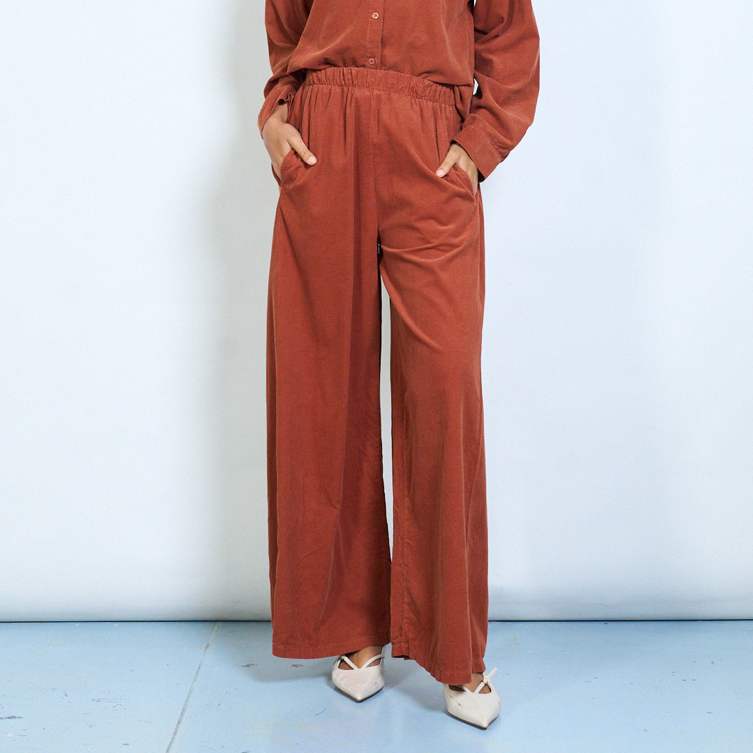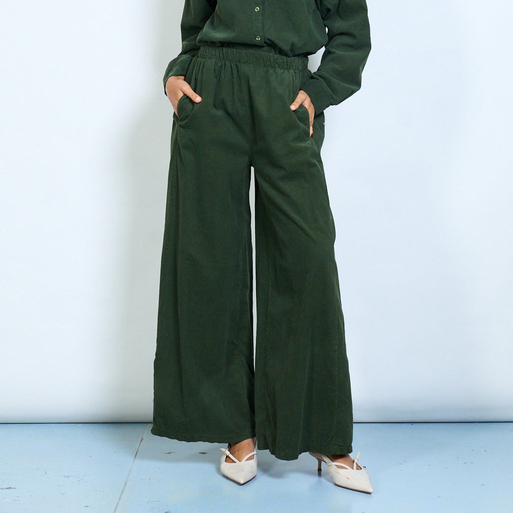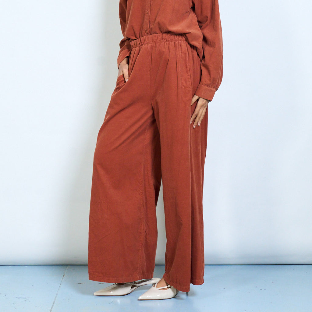 Свободные широкие вельветовые брюки на эластичном поясе оптом.