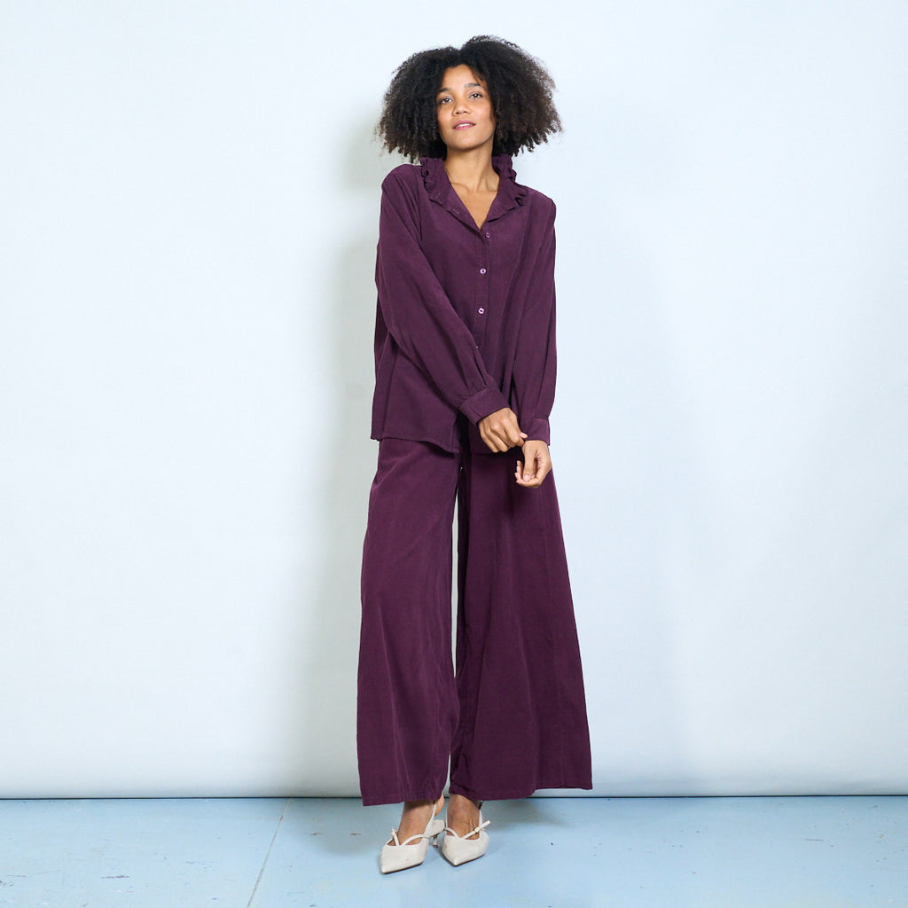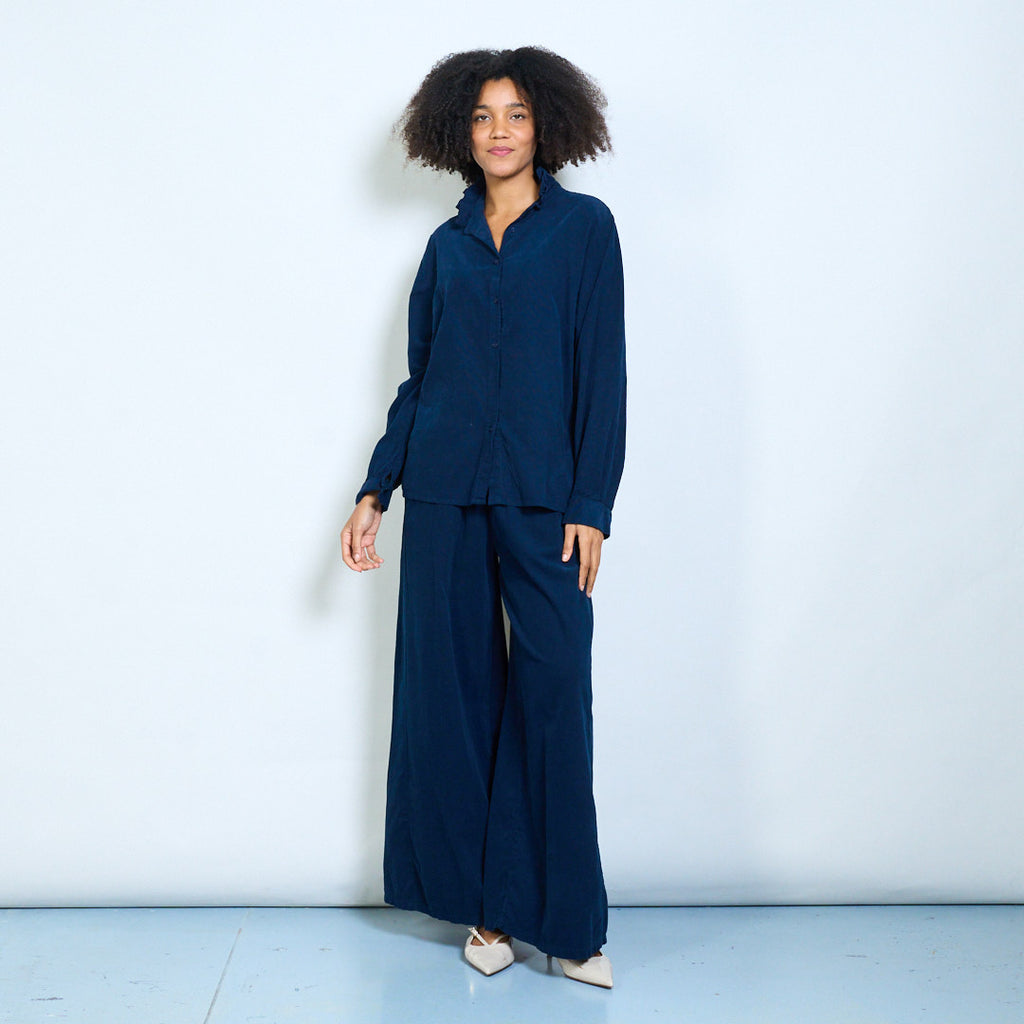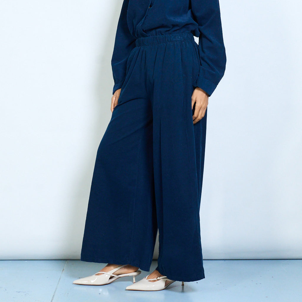- Широкий силуэт ног обеспечивает легкость движений и расслабленность.