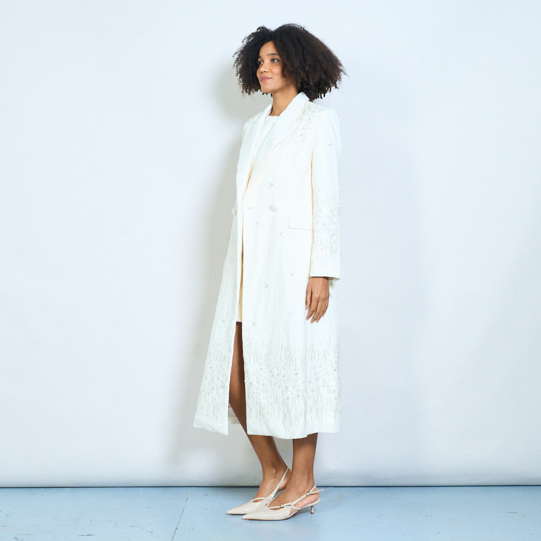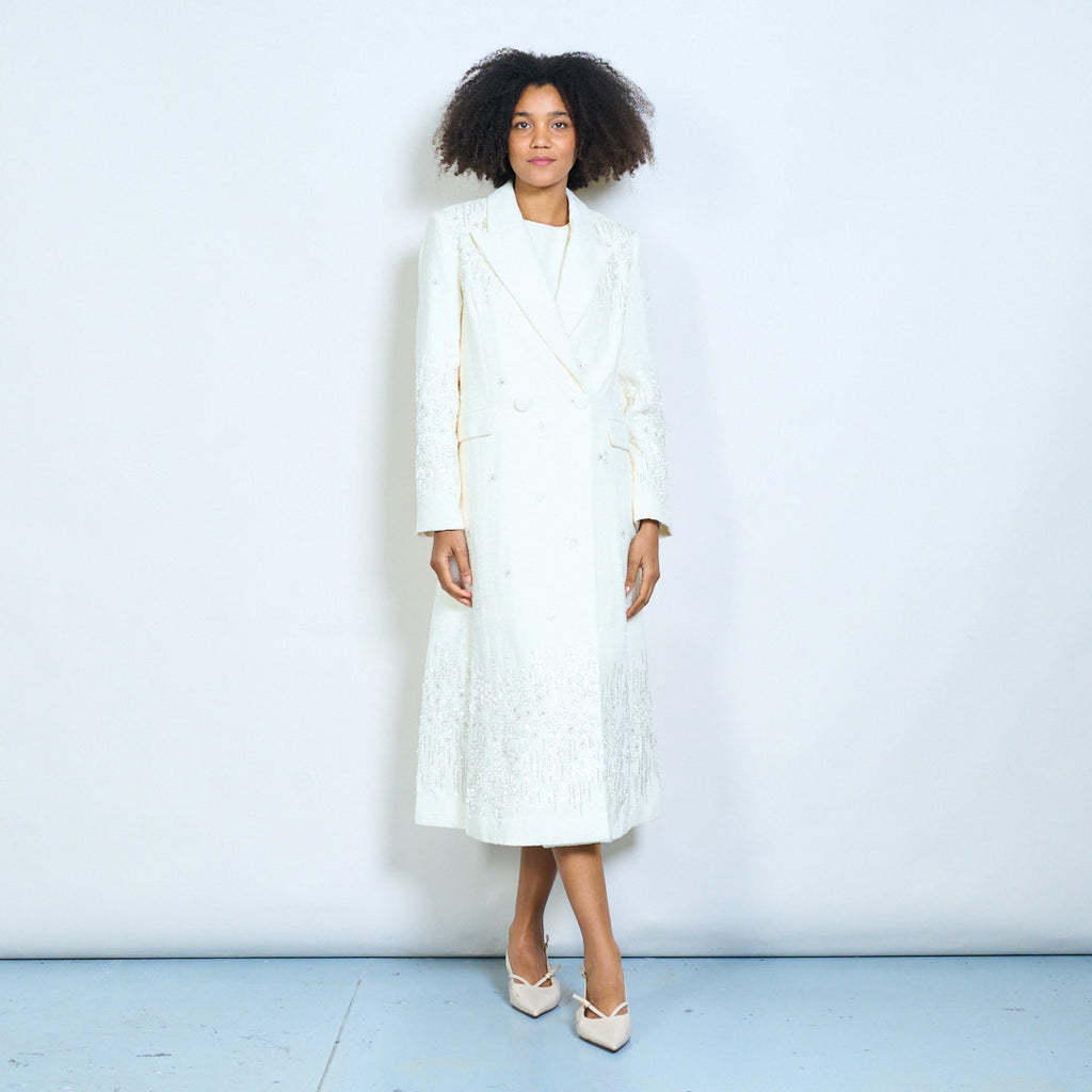 Украшенный удлиненный пиджак с градиентным узором из бисера оптом