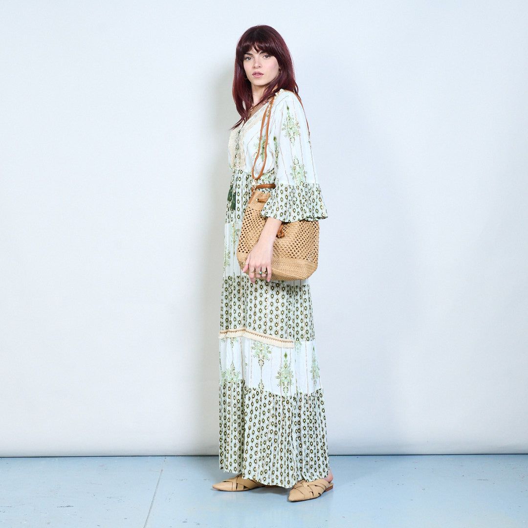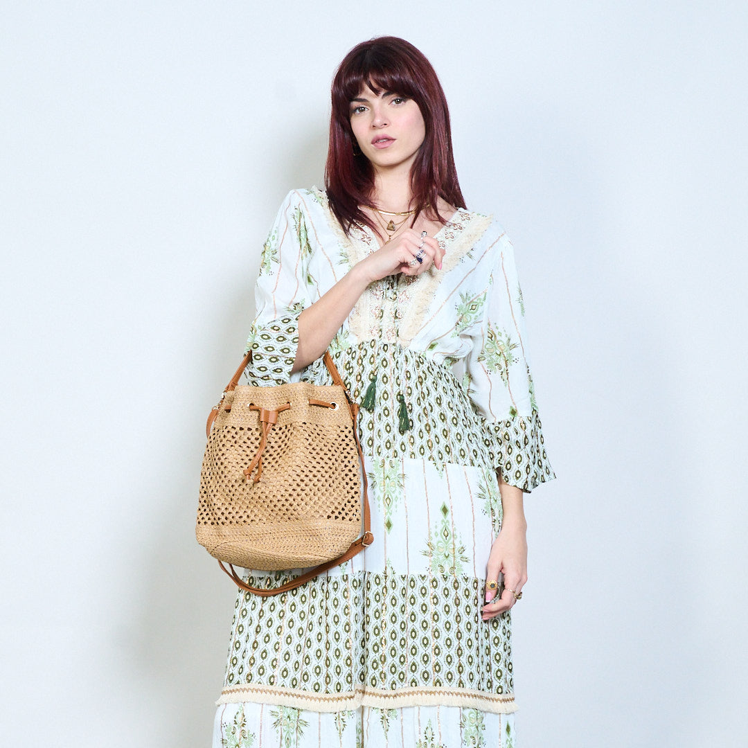 Сумка-ведро ручной работы из ткани вязания крючком с шнурком оптом