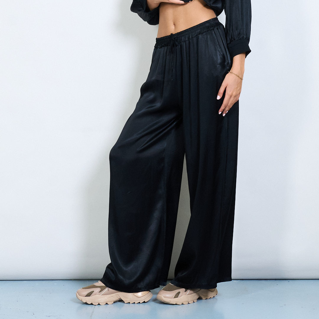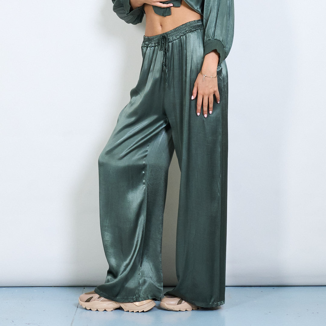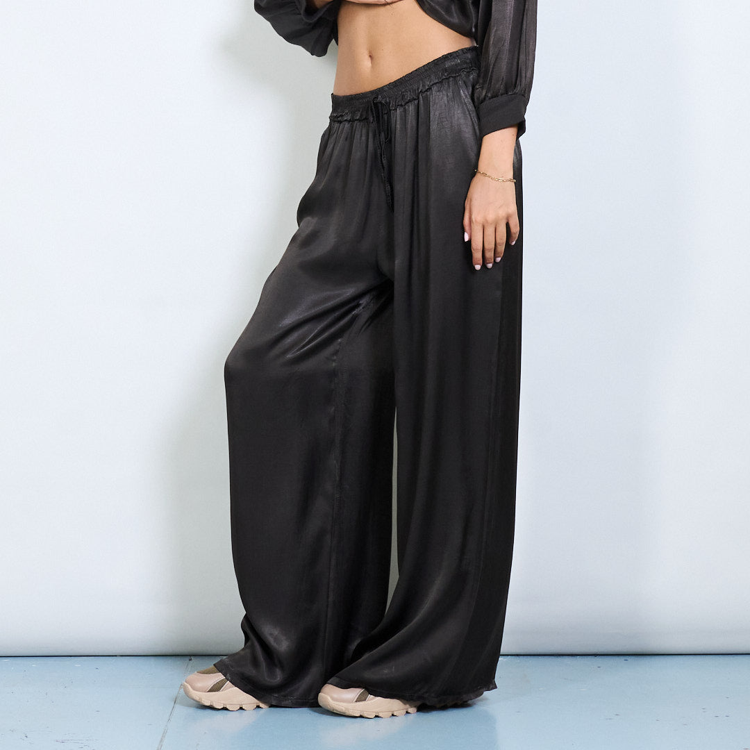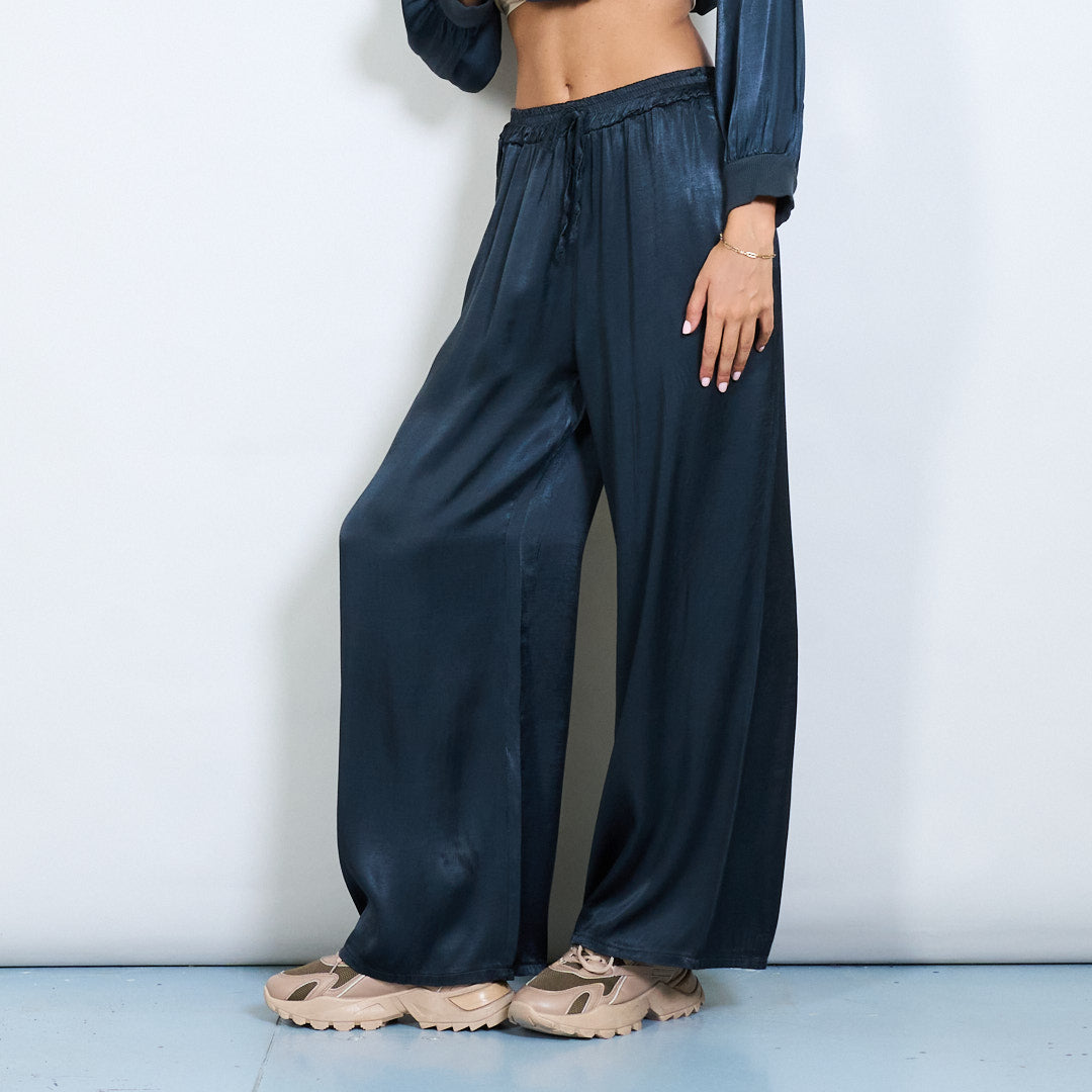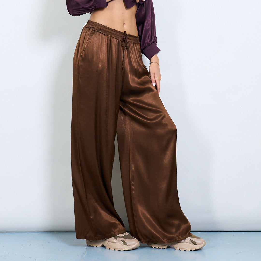 Брюки шнурки с широким атласным эффектом.