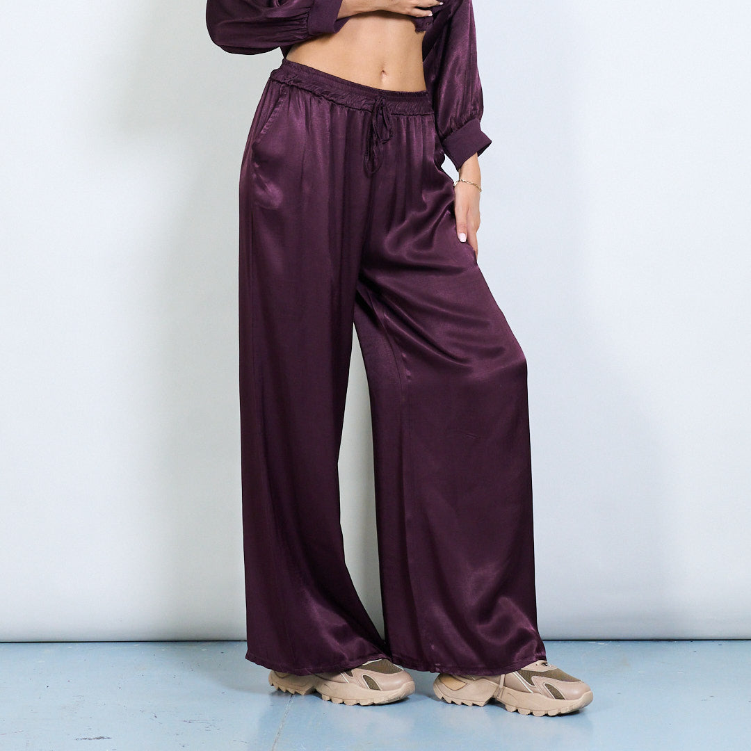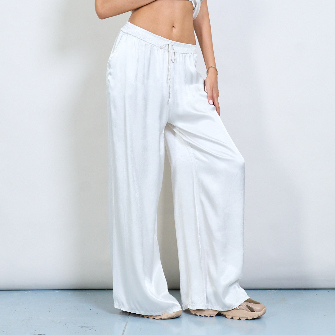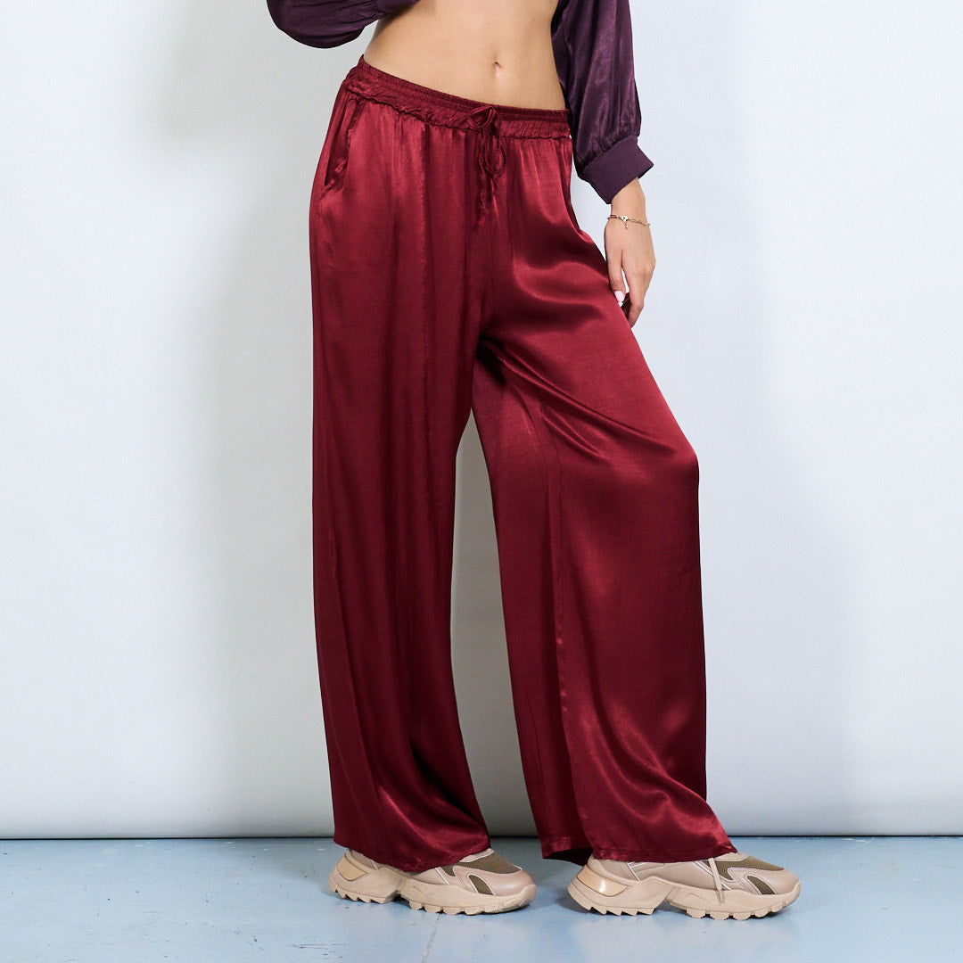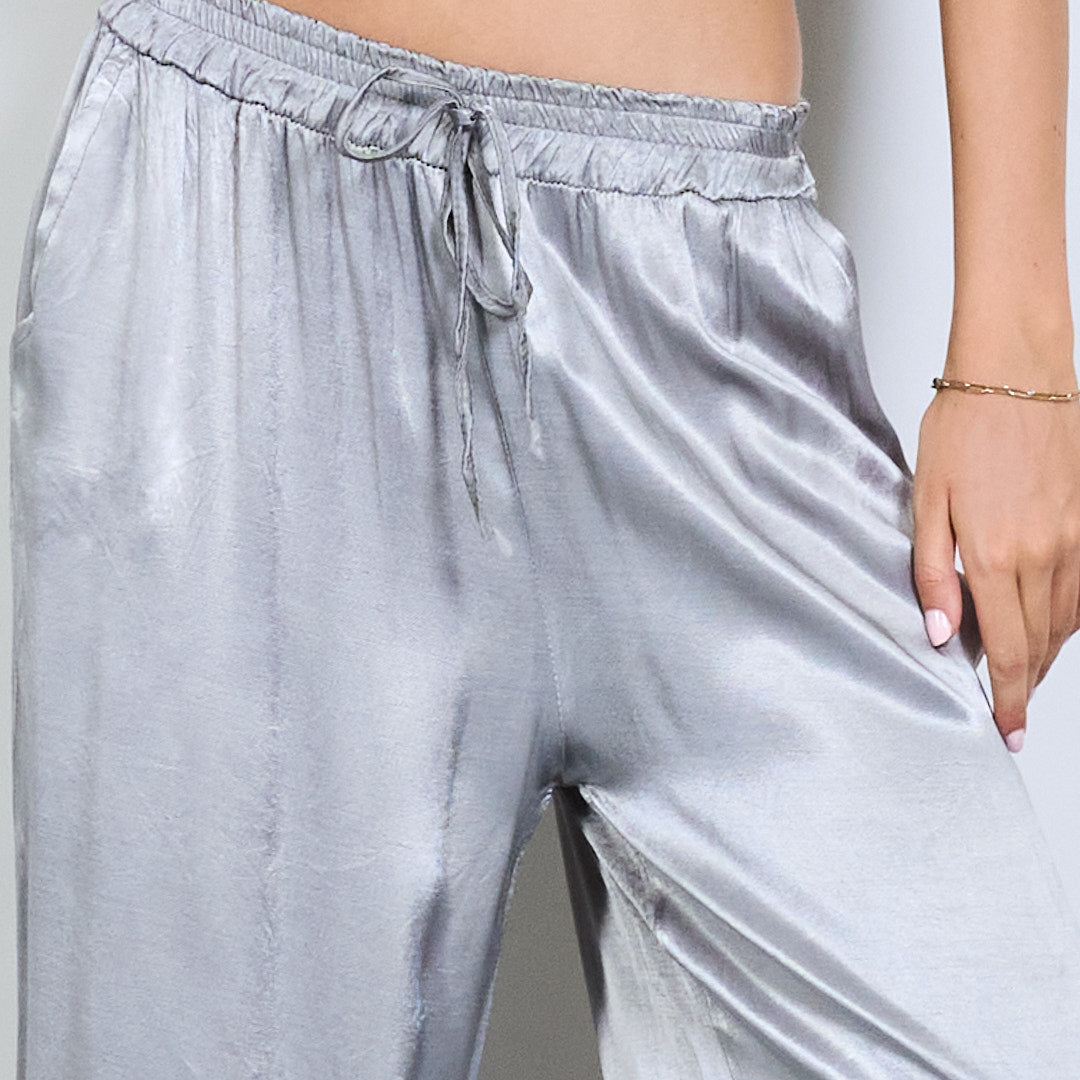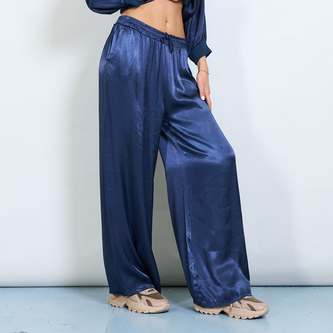 Брюки шнурки с широким атласным эффектом.