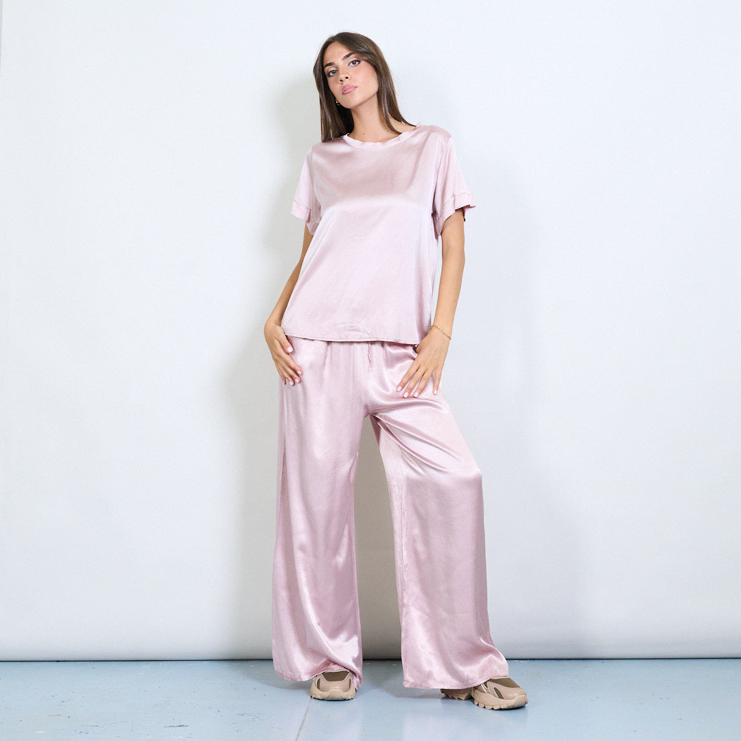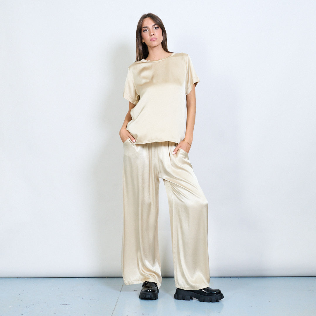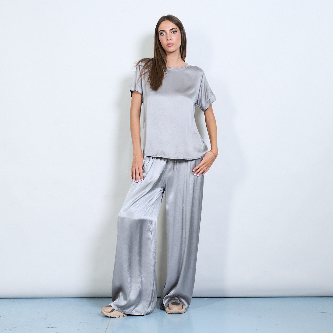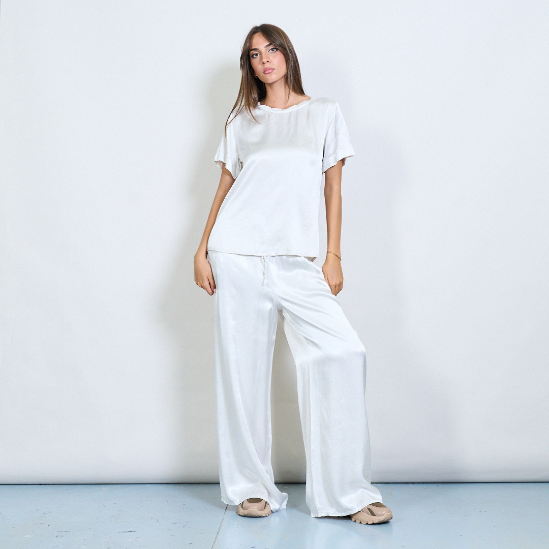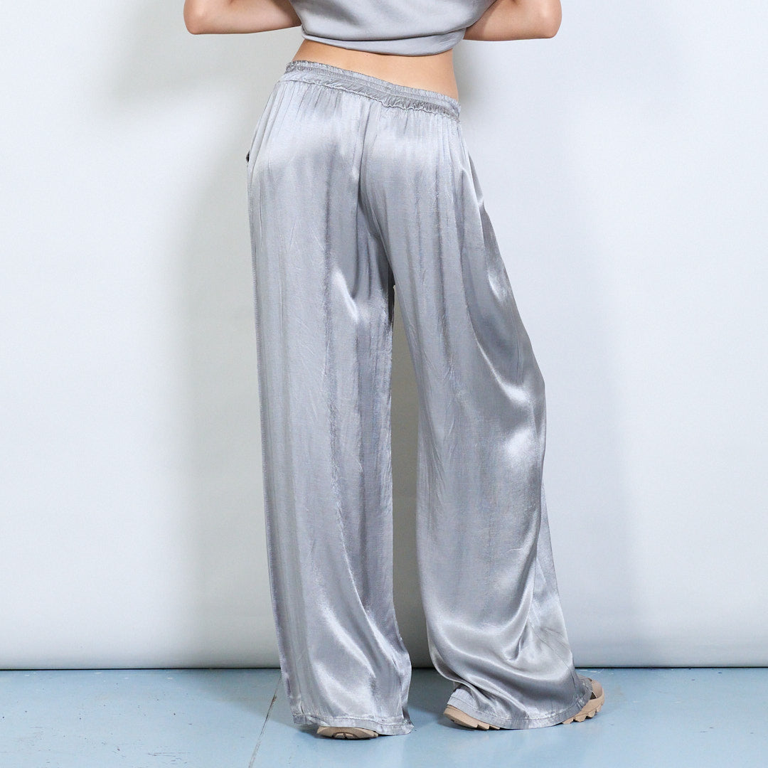 Брюки шнурки с широким атласным эффектом.