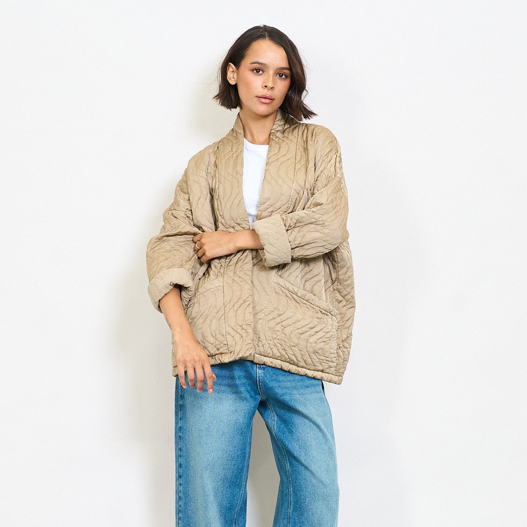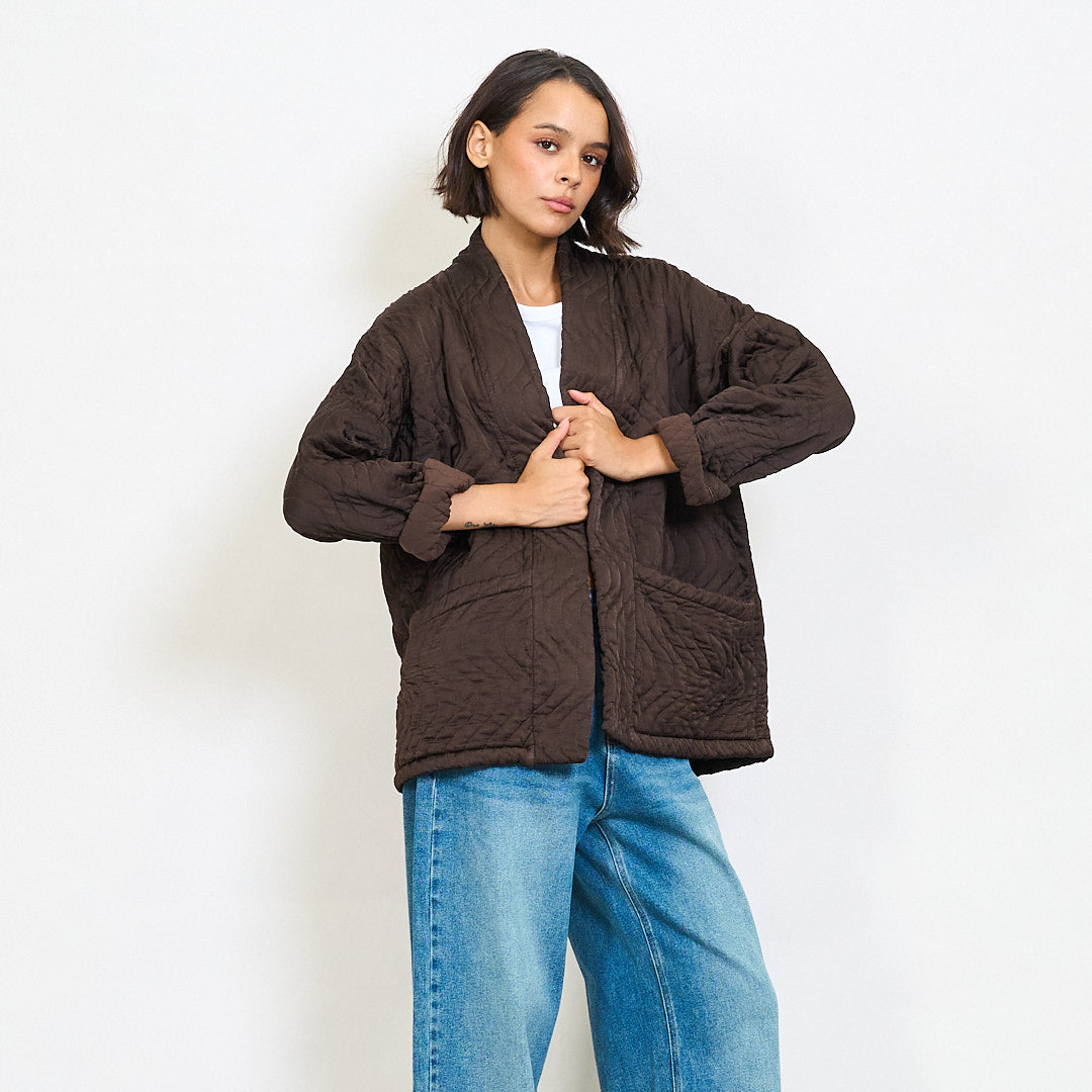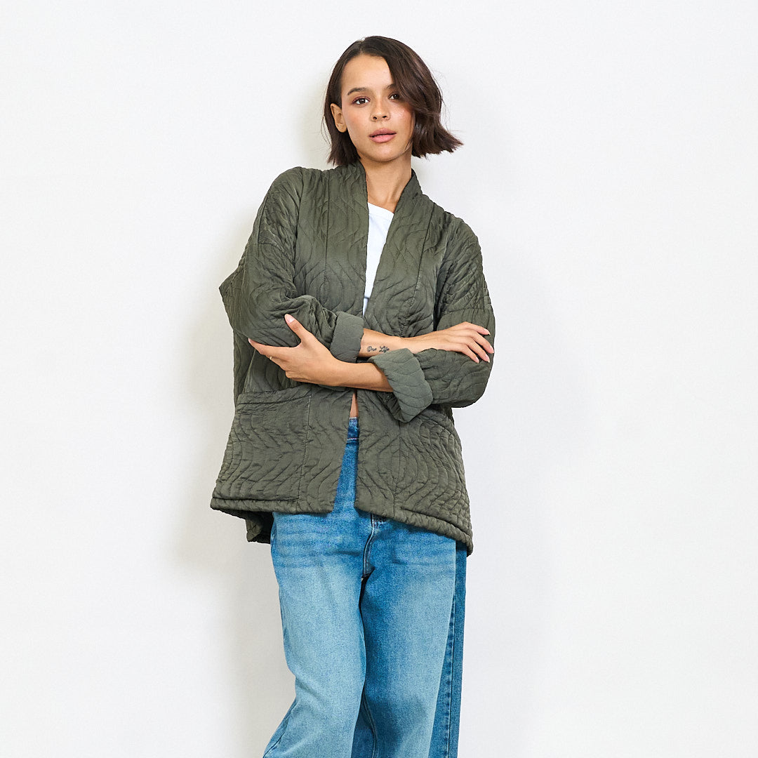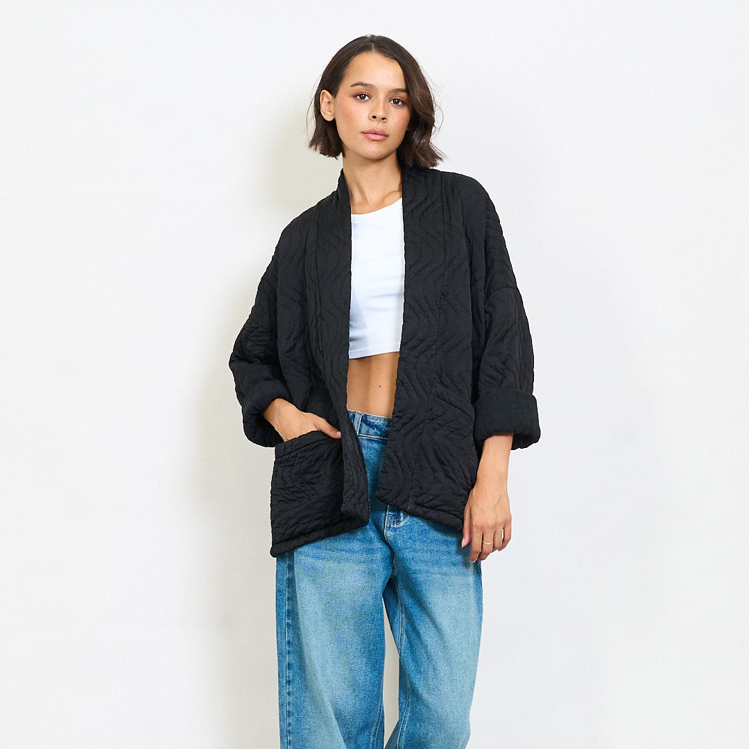 Стеганая волновая узор с открытой передней одеждой с негабаритными лацканами оптом