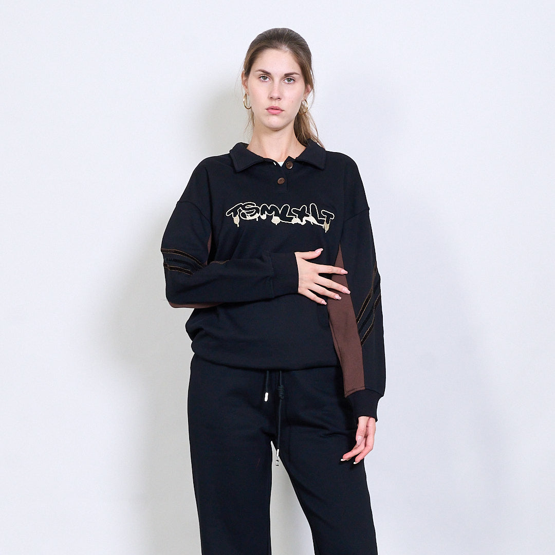 • Расслабленная толстовка Fit с классическим воротником поло и кнопки