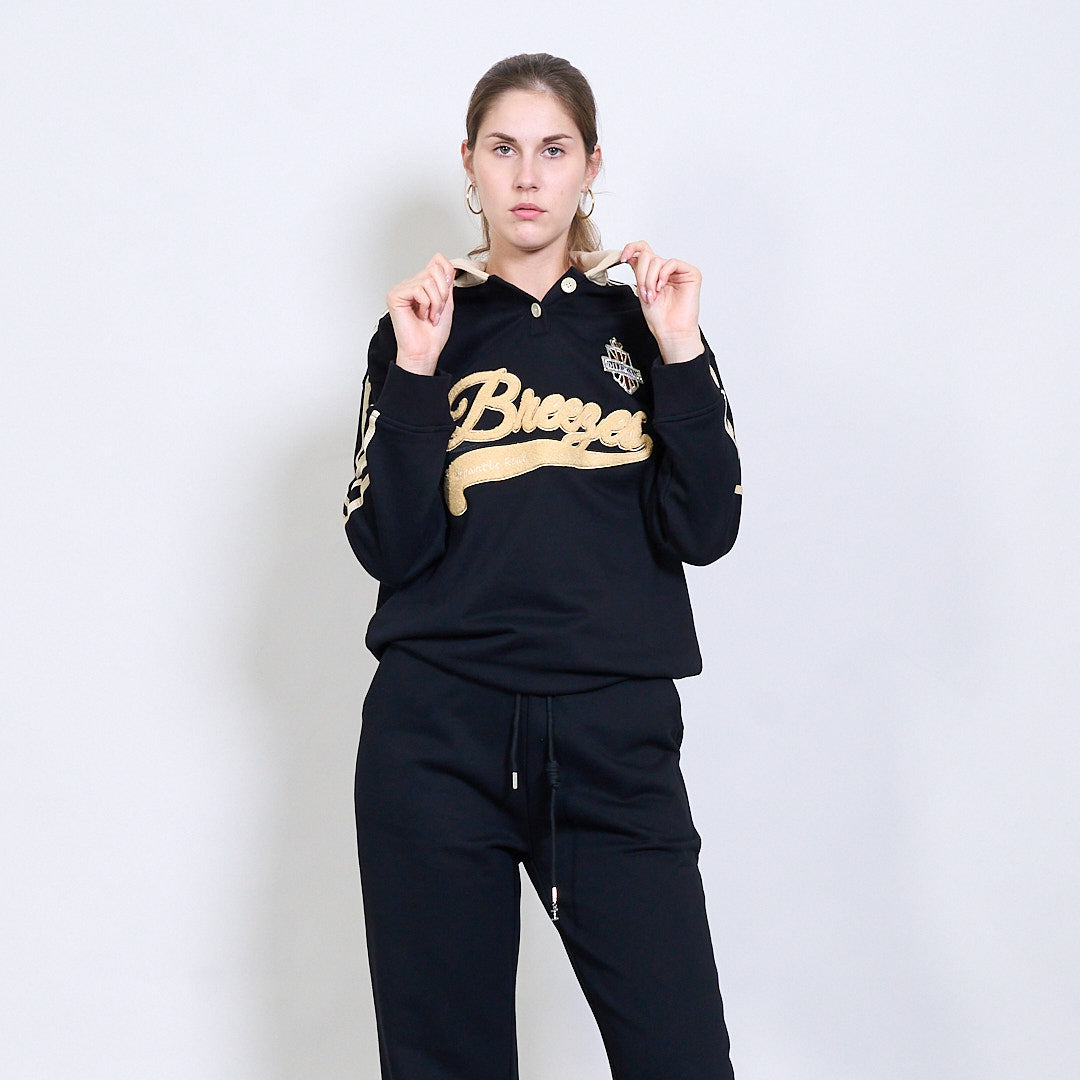 - Толстовка в стиле поло с контрастным воротником и кнопкой