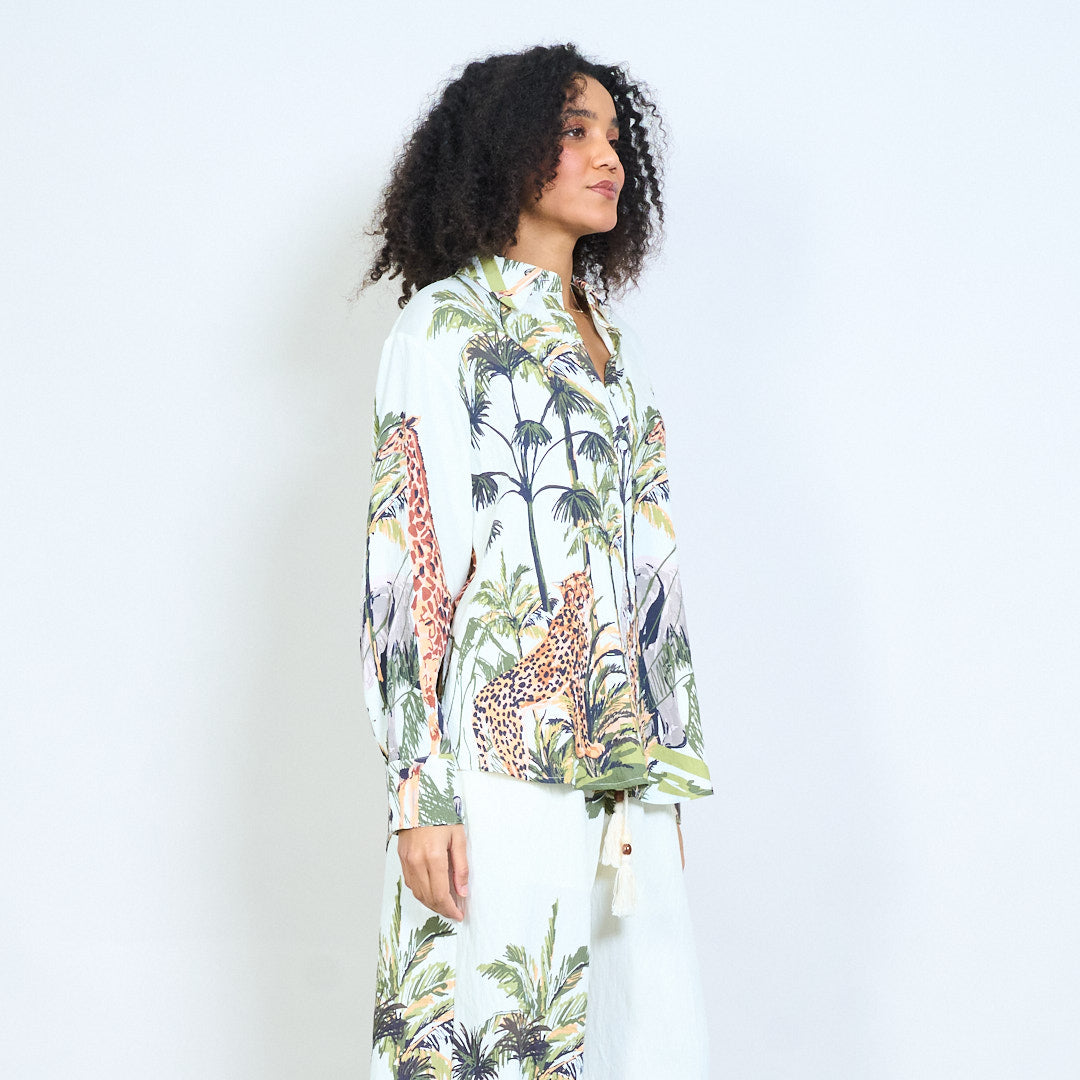 • Рубашка на пуговицах с длинными рукавами и принтом в стиле сафари в джунглях