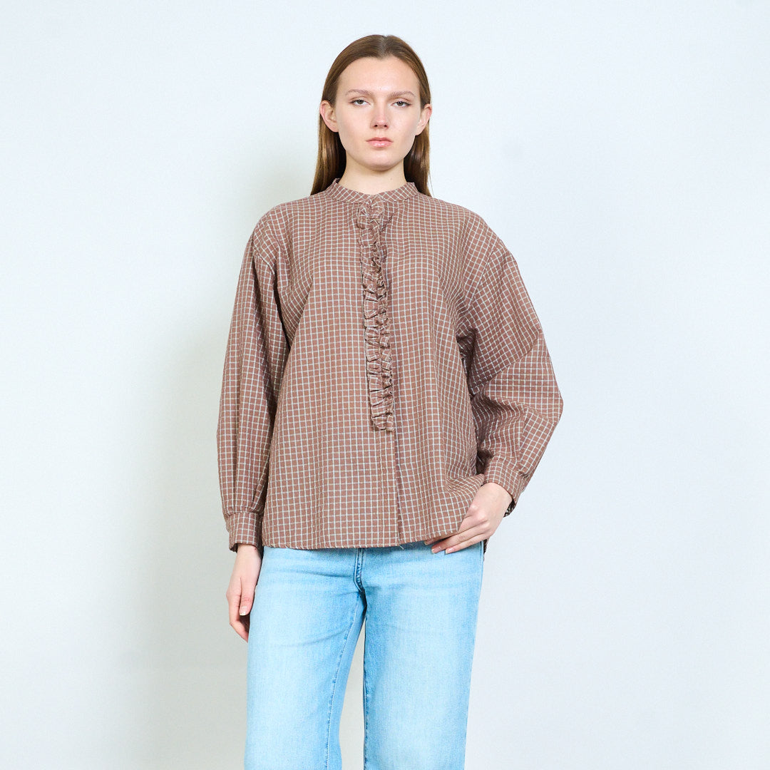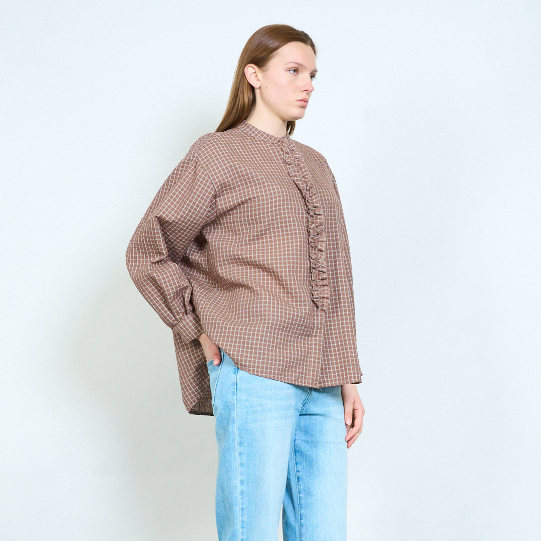 Блузка в клетку с рюшами и свободным силуэтом оптом