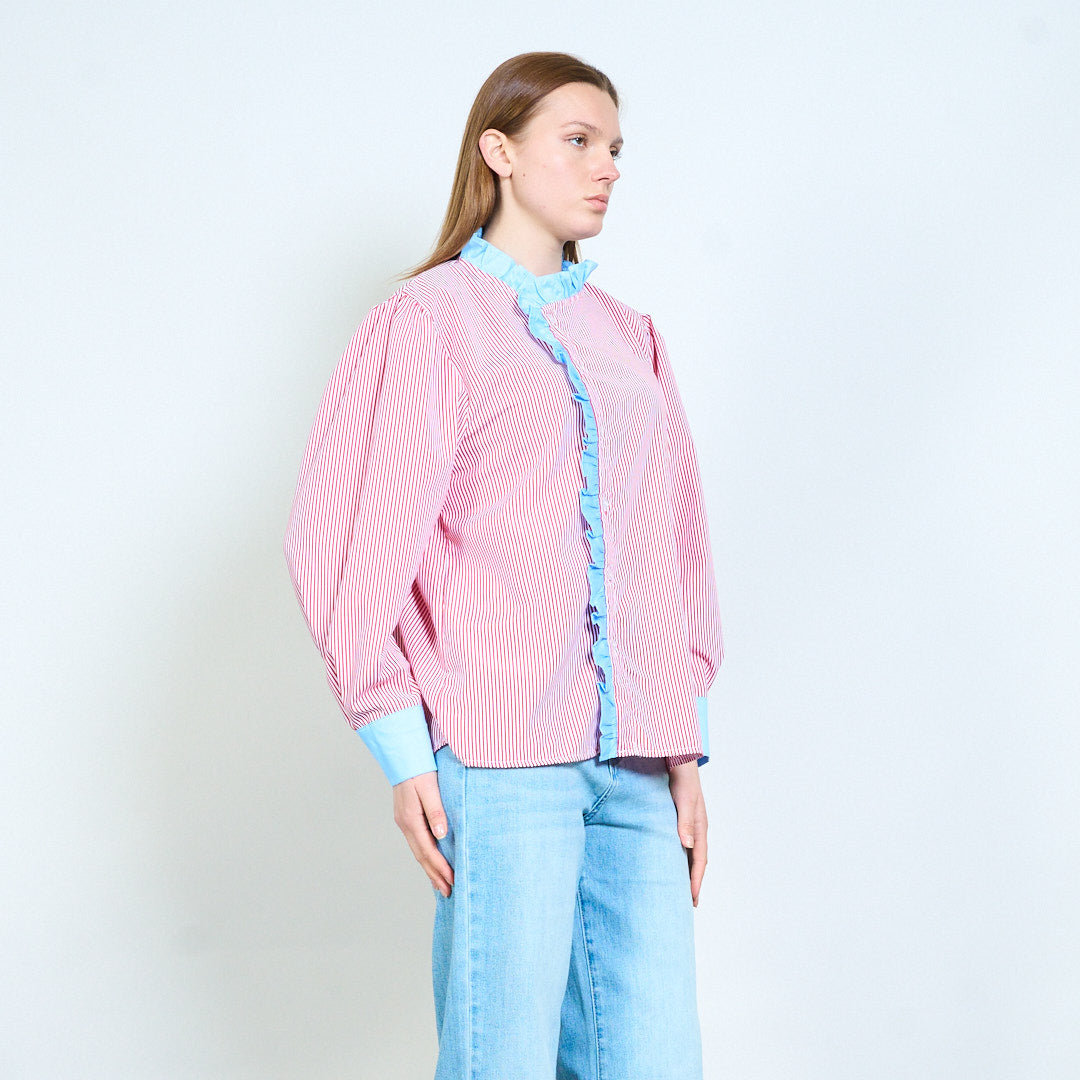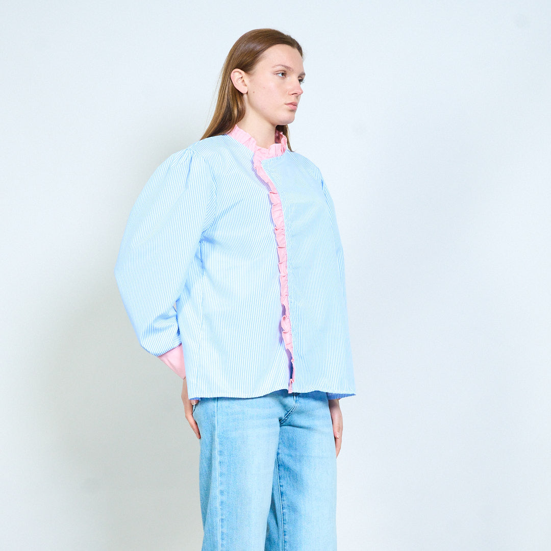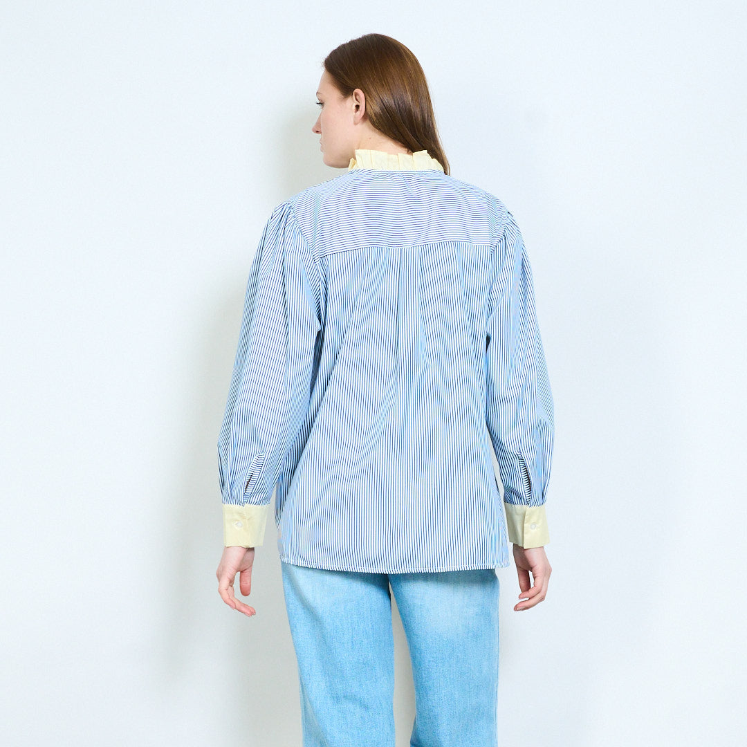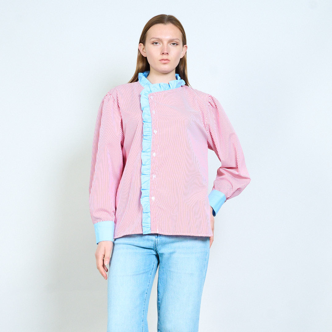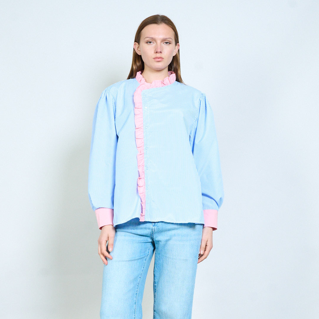Полосатая рубашка с рюшами и контрастными манжетами оптом