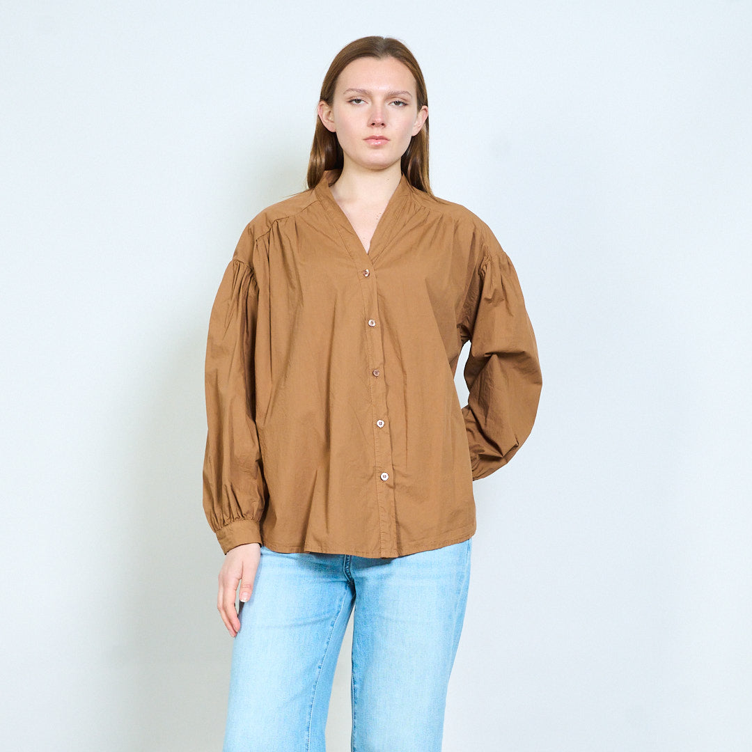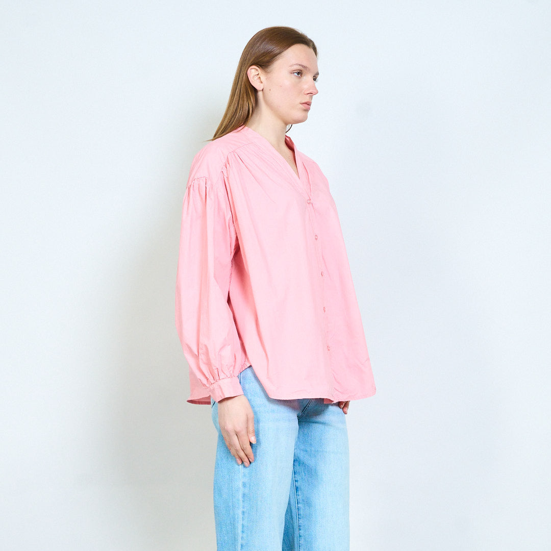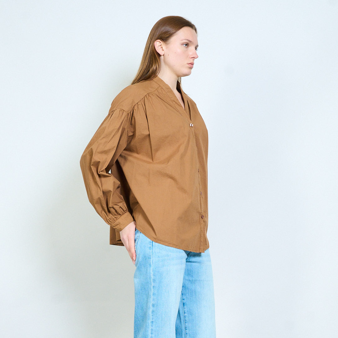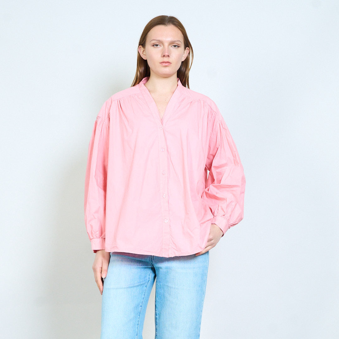 Рубашка из мягкой ткани с V-образным вырезом и присборенными плечами оптом