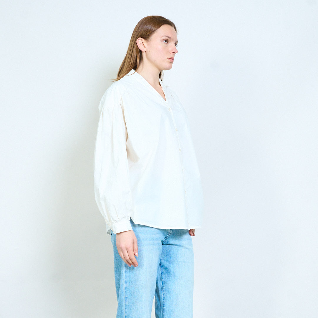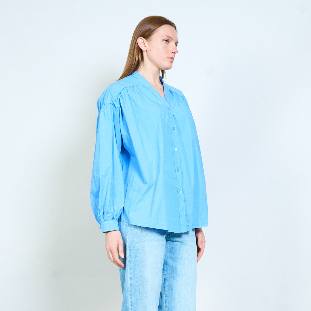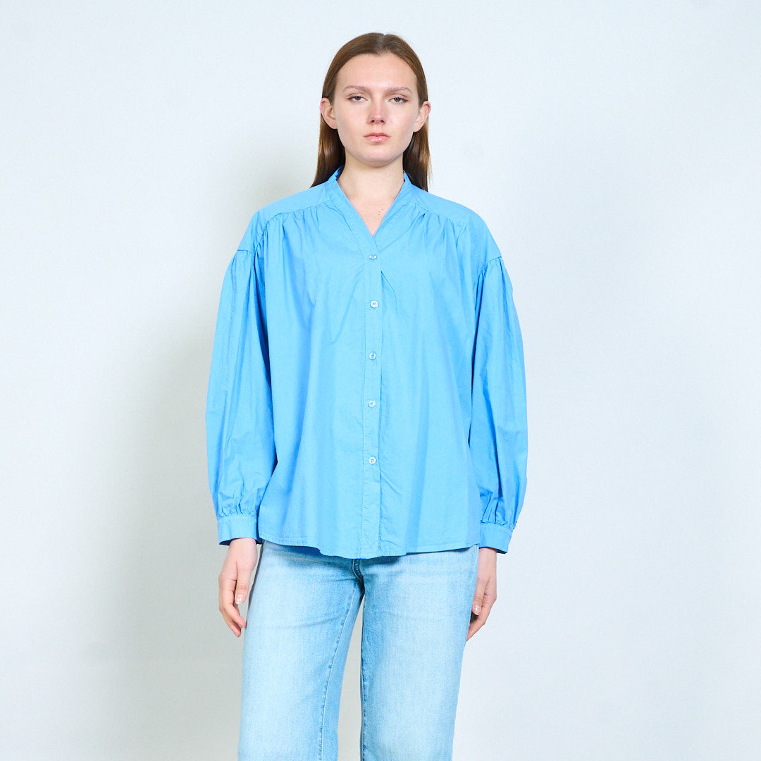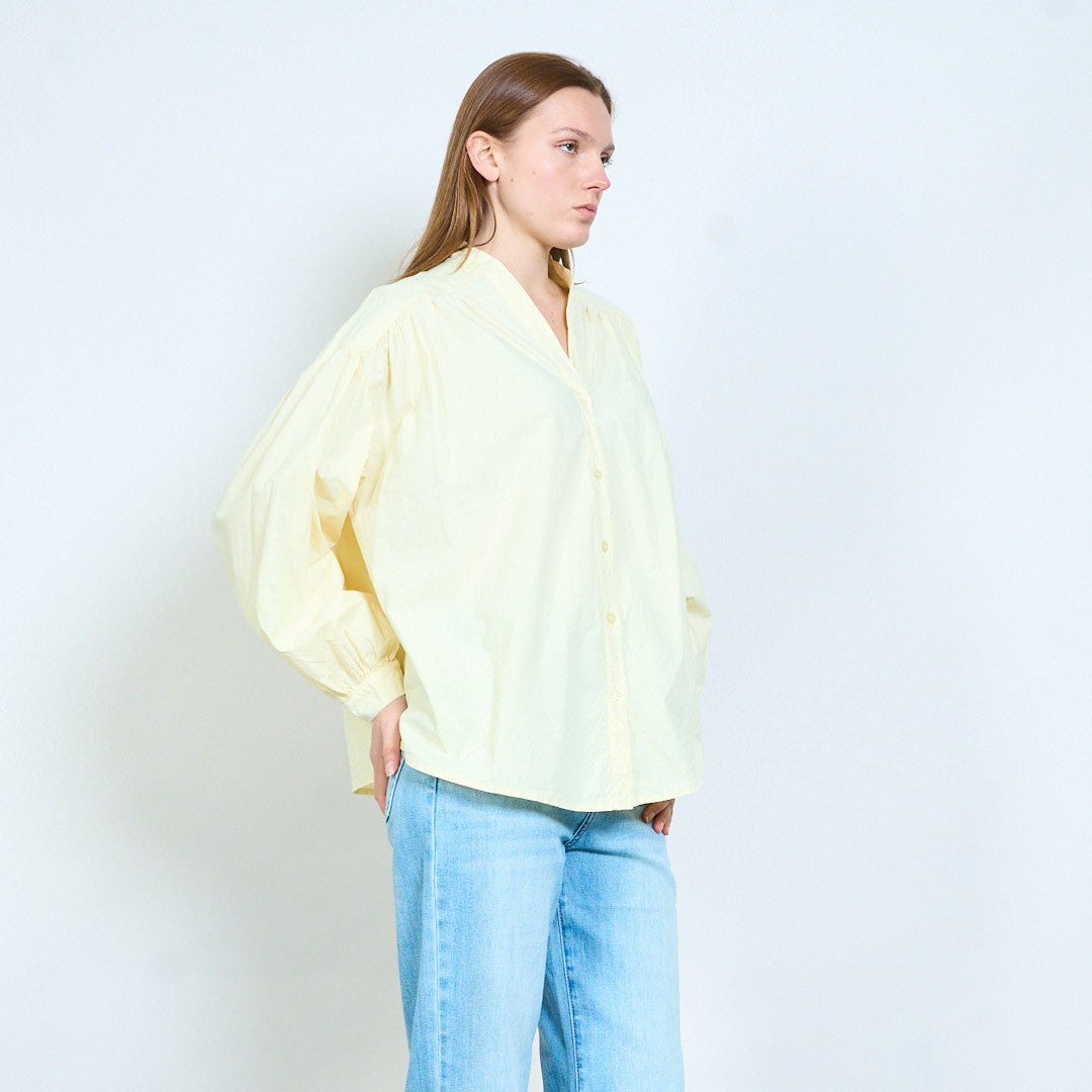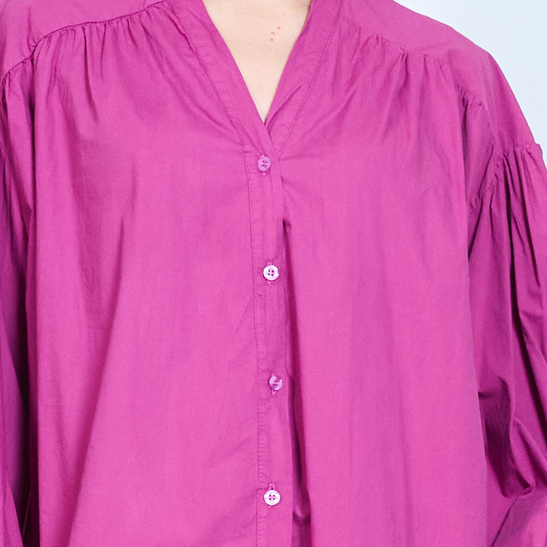 Рубашка из мягкой ткани с V-образным вырезом и присборенными плечами оптом