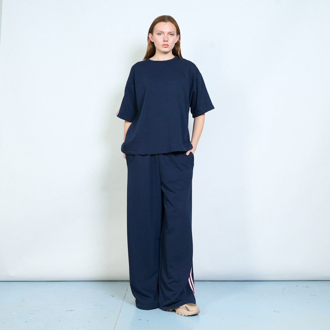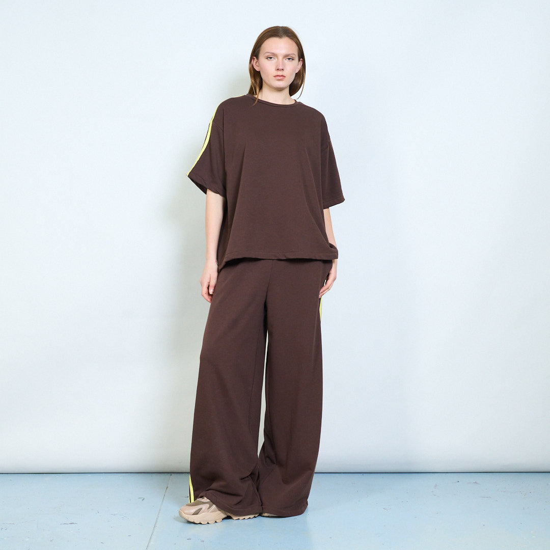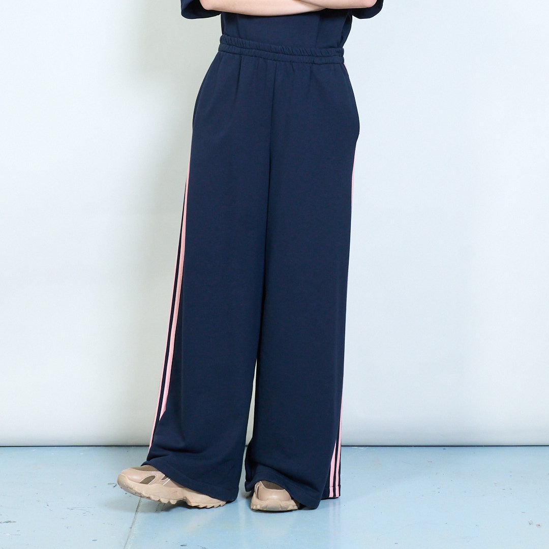Спортивные широкие брюки из трикотажа с контрастными полосками по бокам оптом