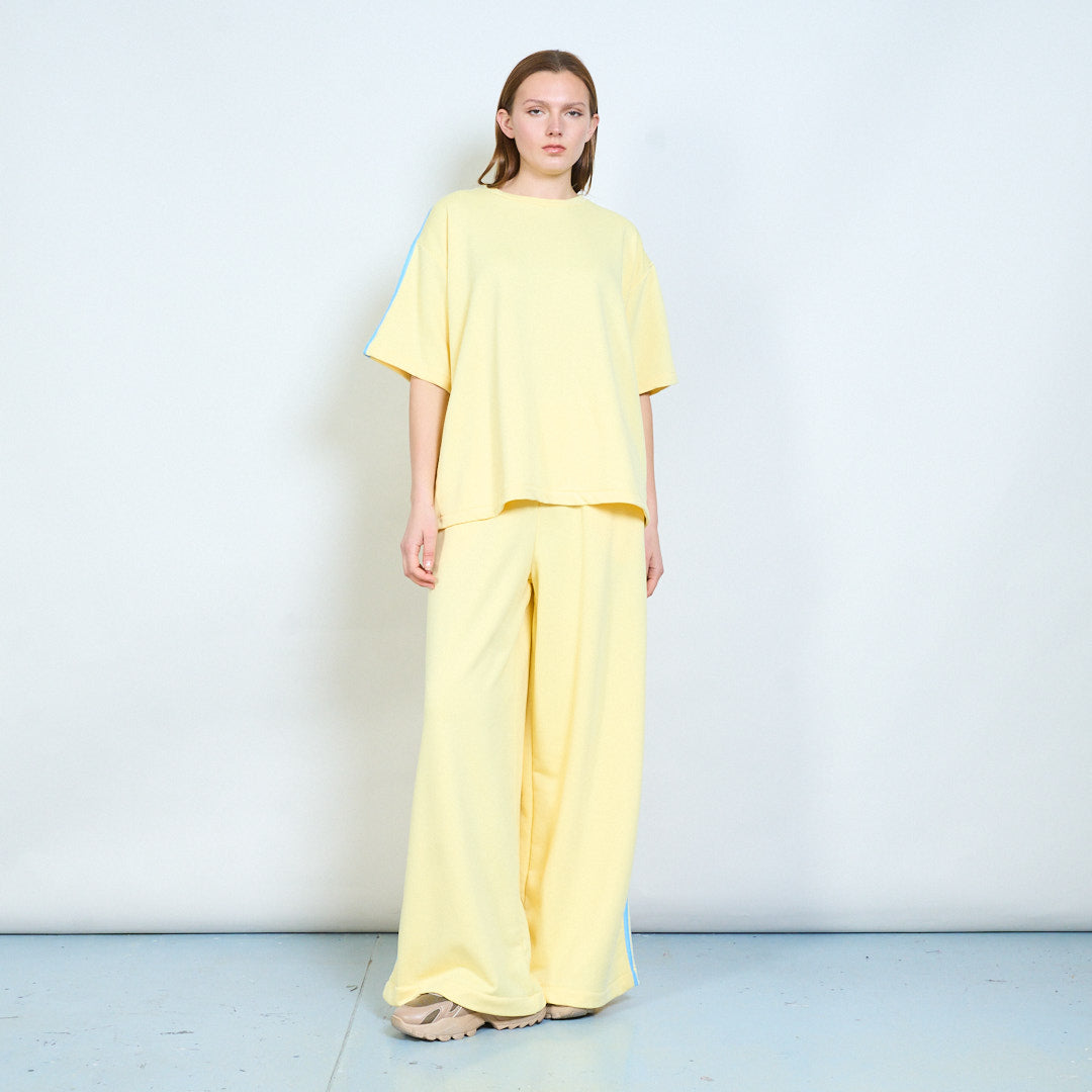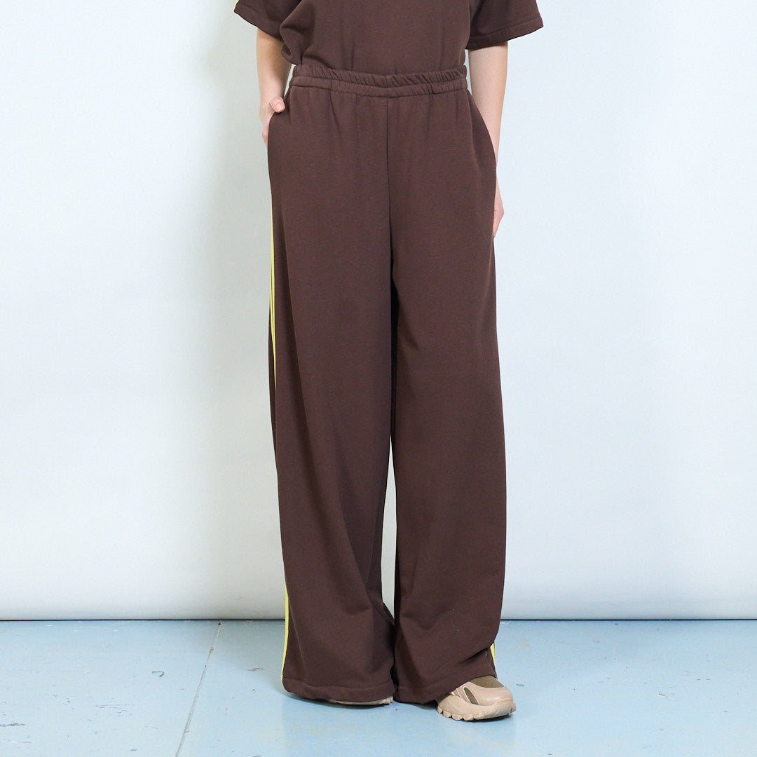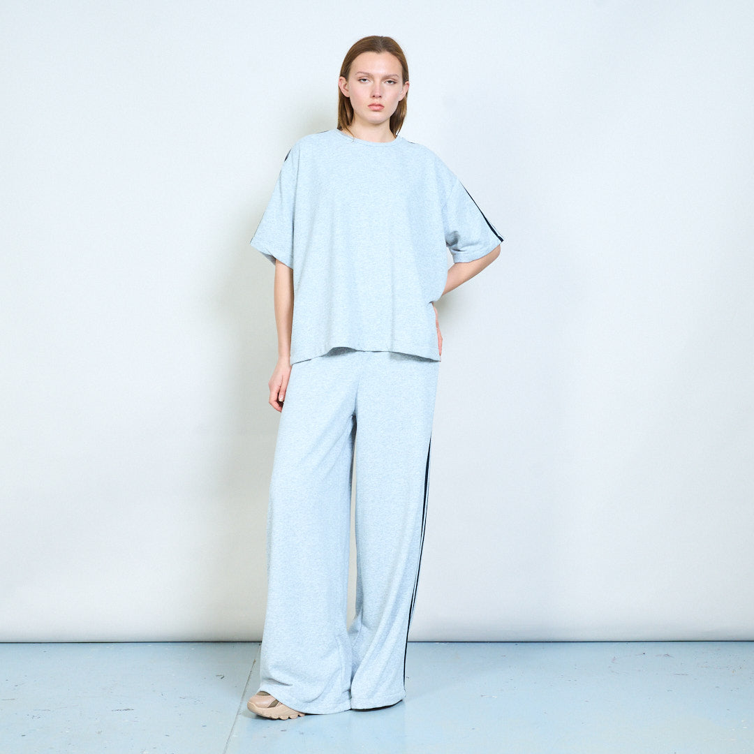 Спортивные широкие брюки из трикотажа с контрастными полосками по бокам оптом