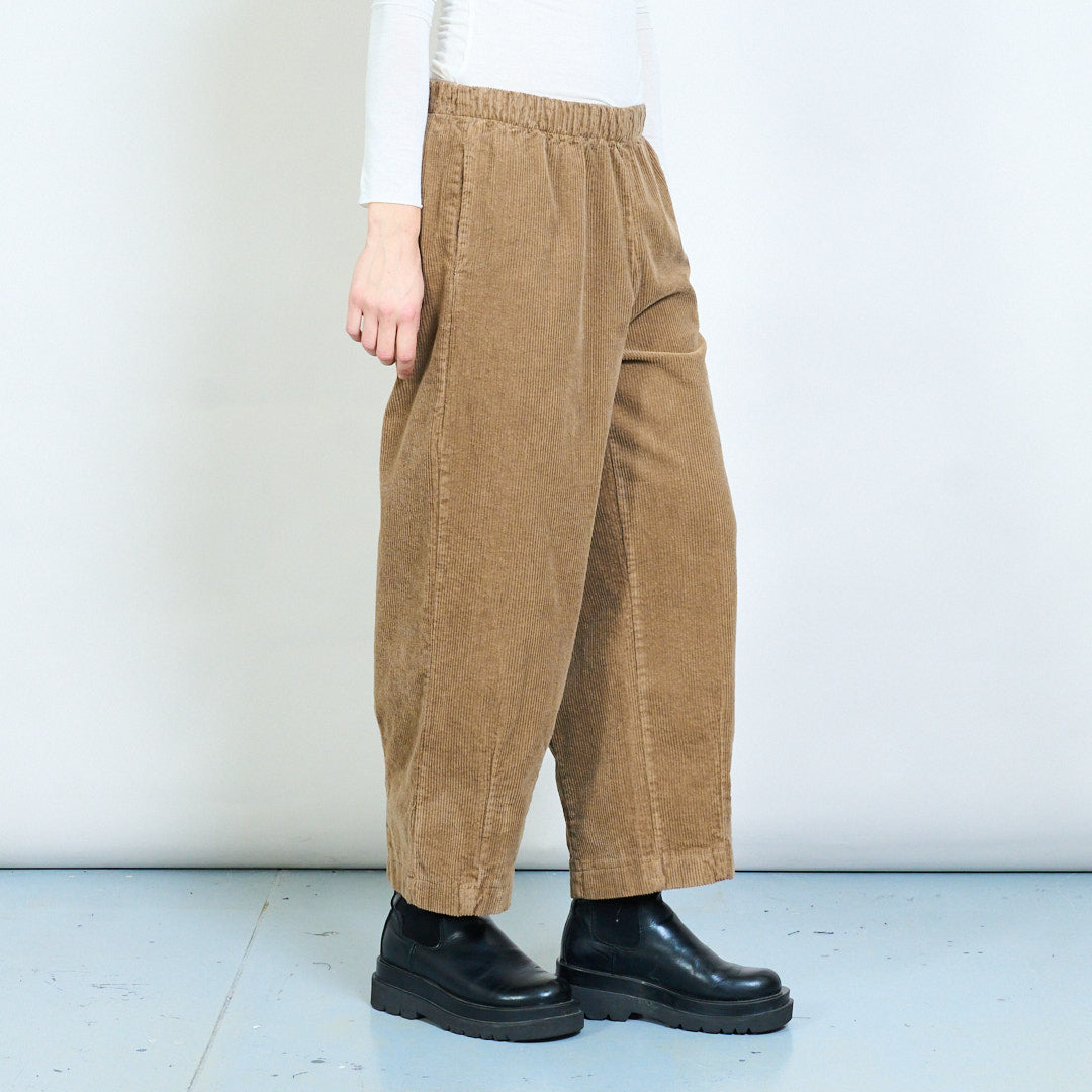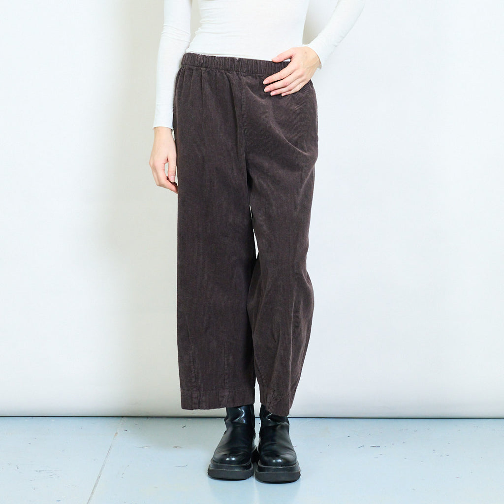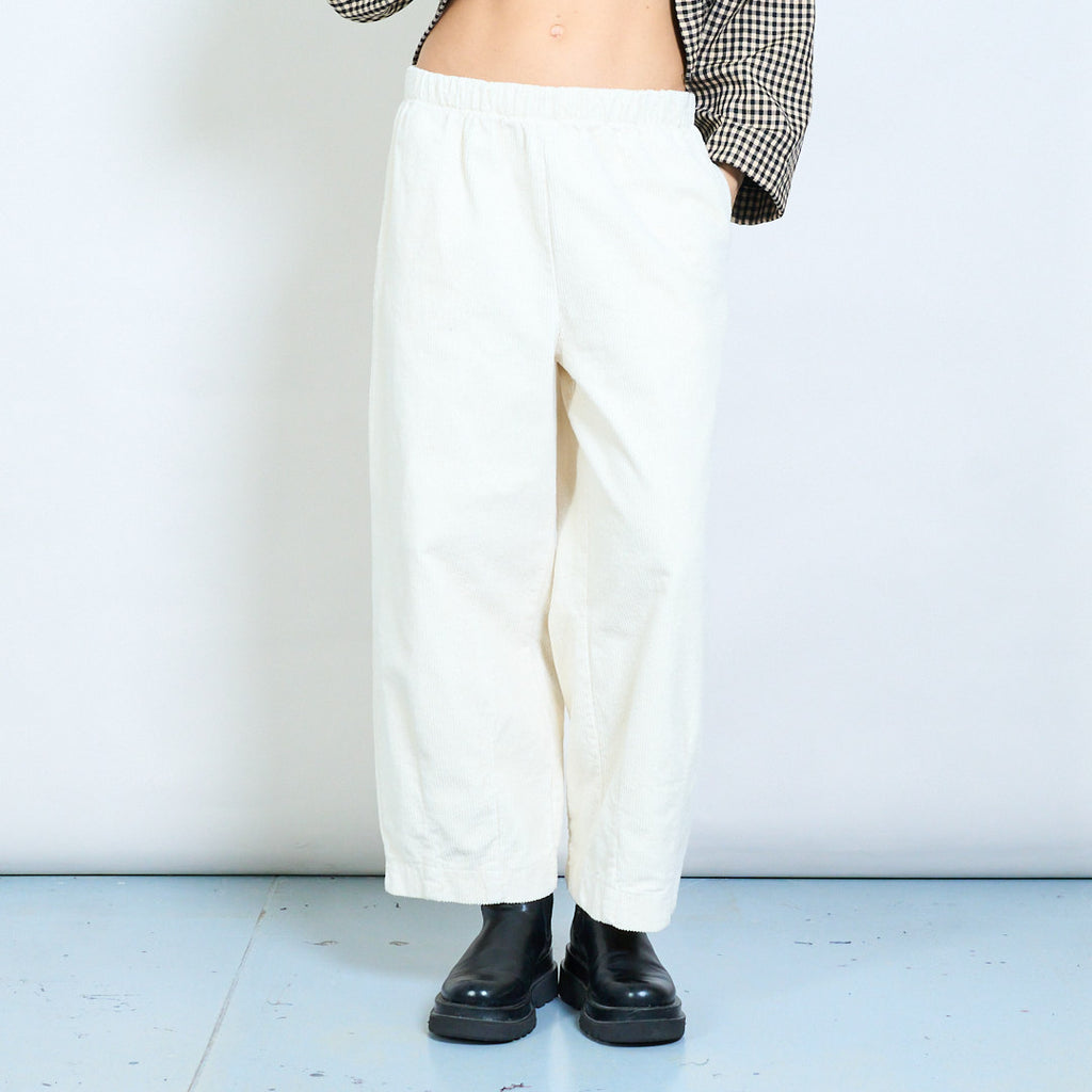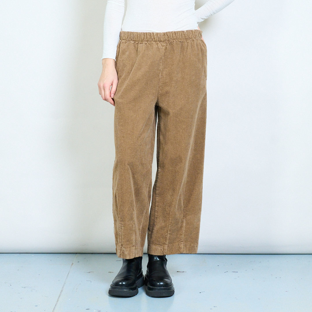 Вельветовые фактурные брюки свободного кроя на резинке оптом