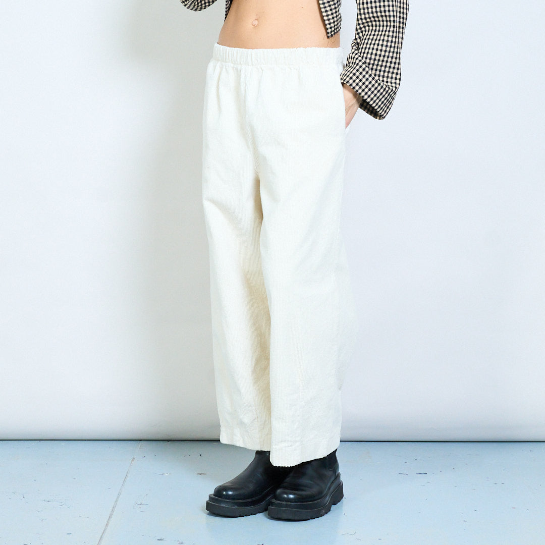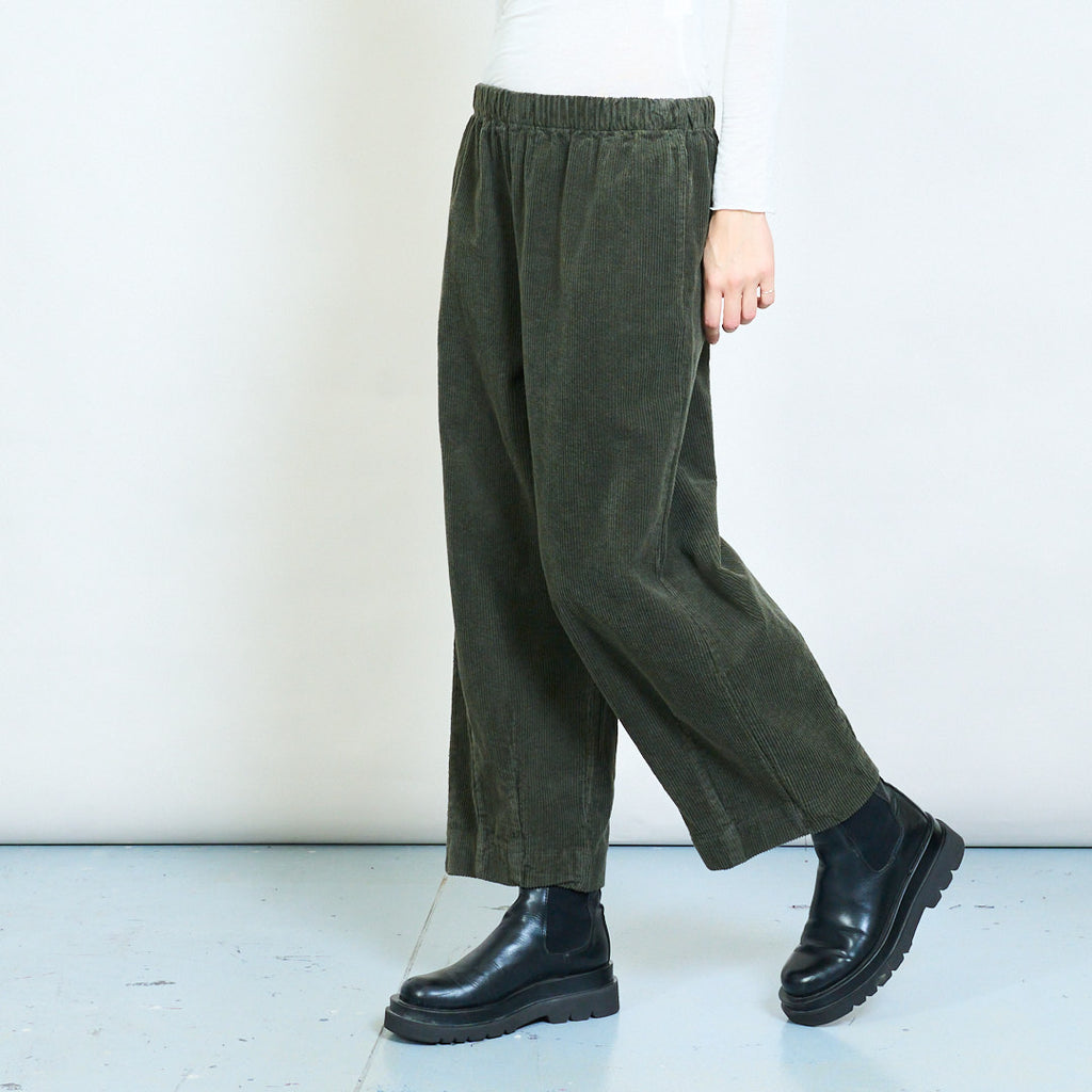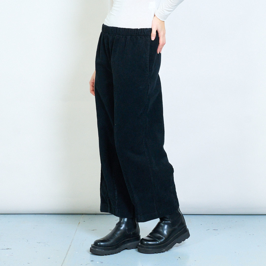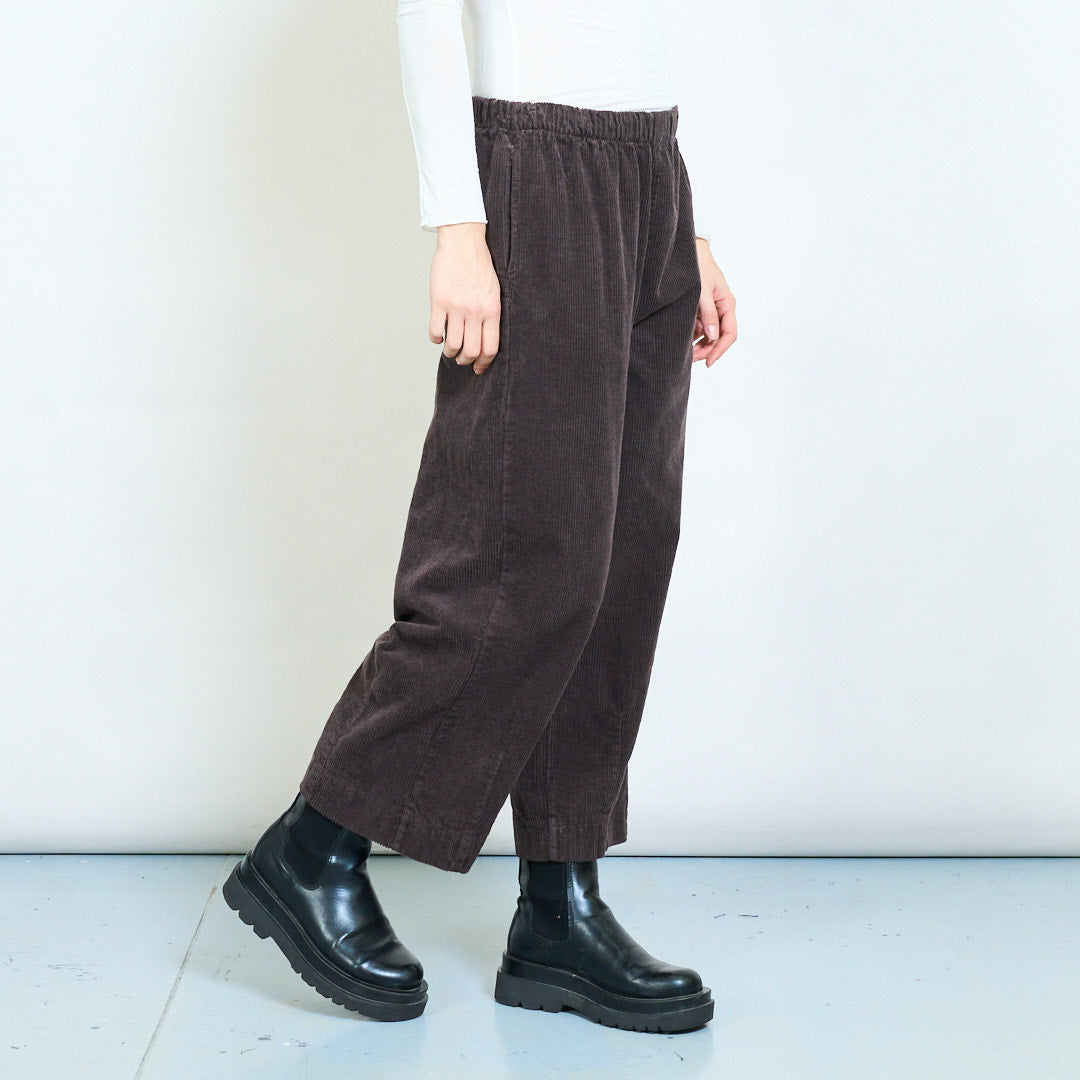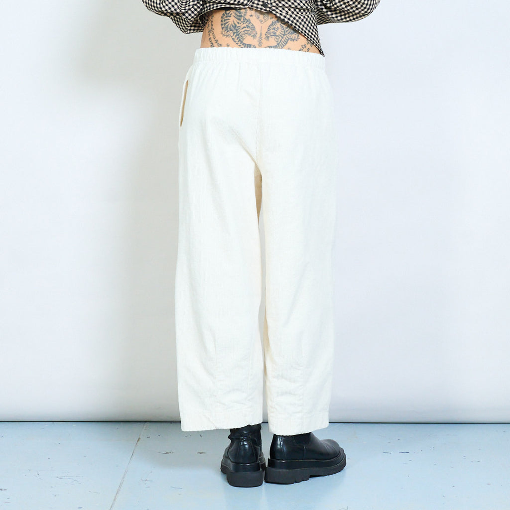 Вельветовые фактурные брюки свободного кроя на резинке оптом