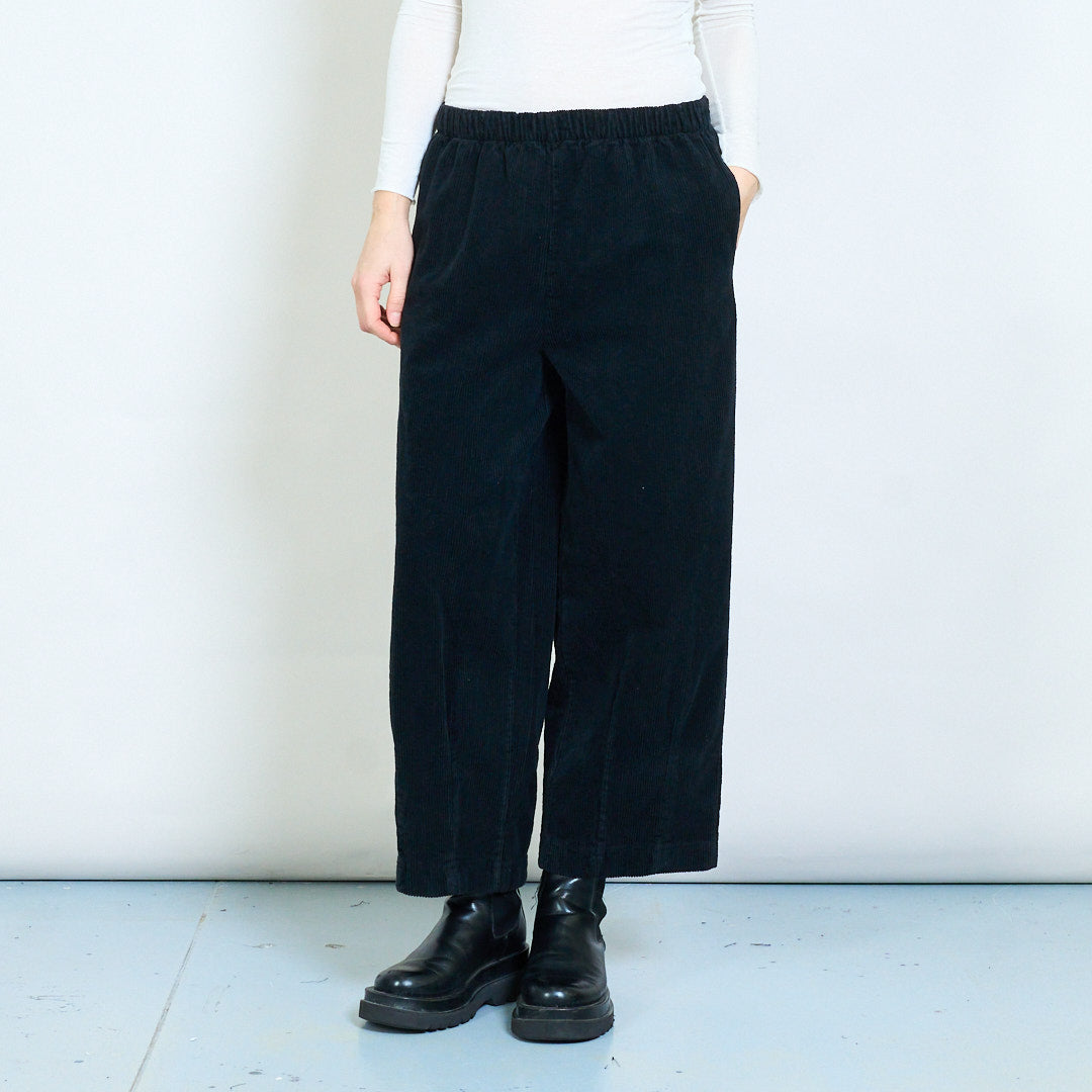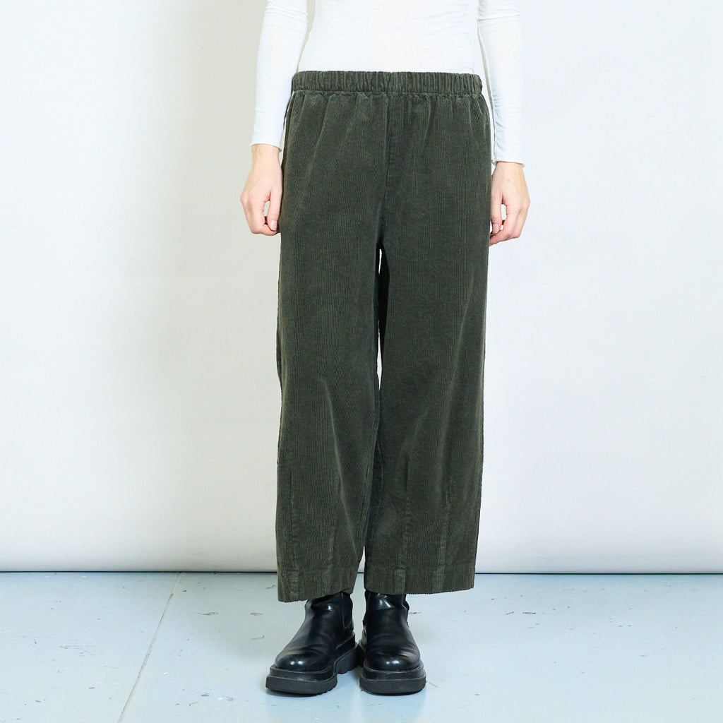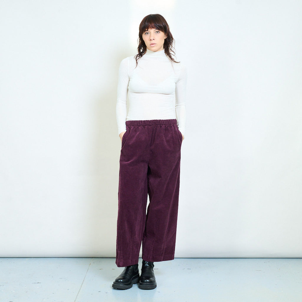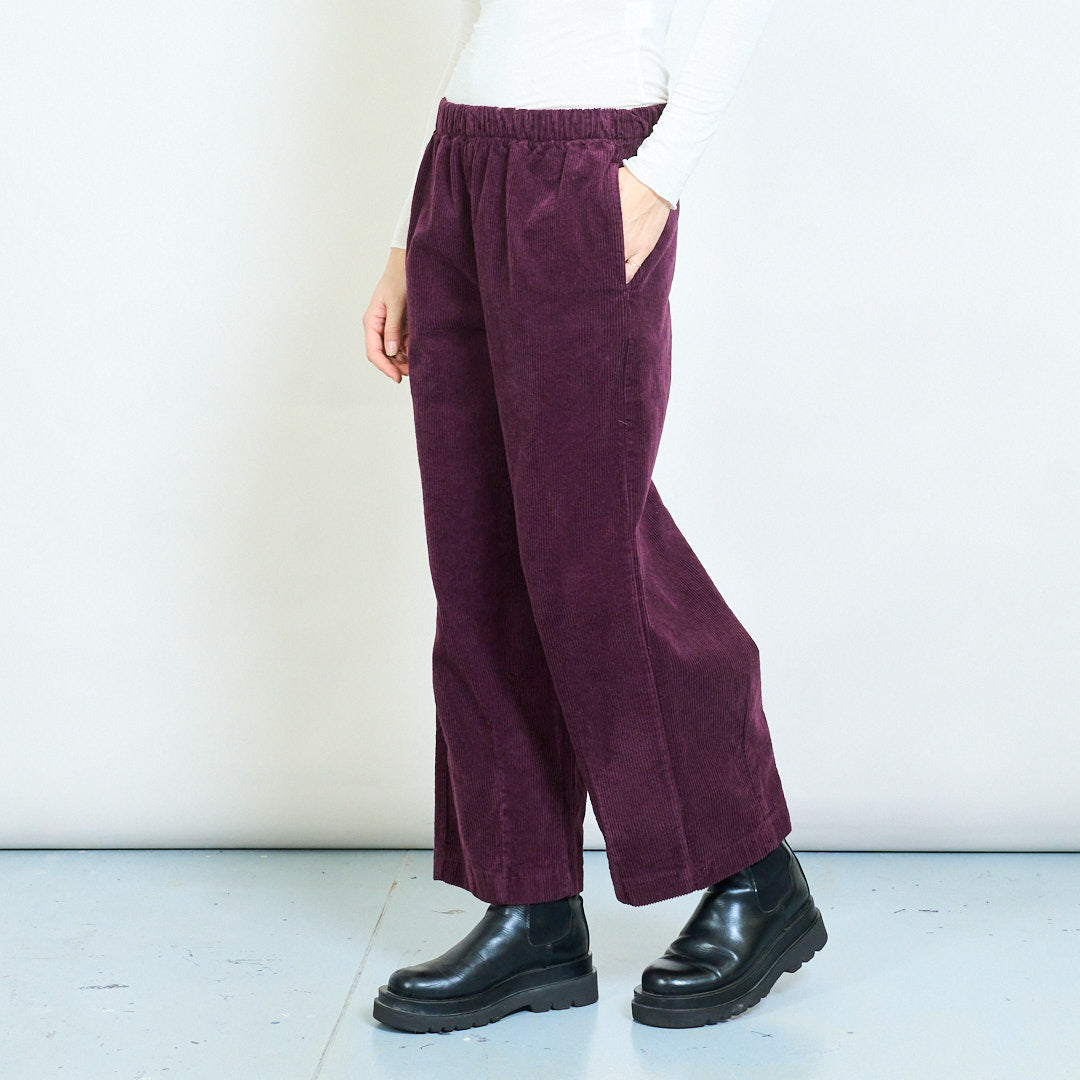 Вельветовые фактурные брюки свободного кроя на резинке оптом