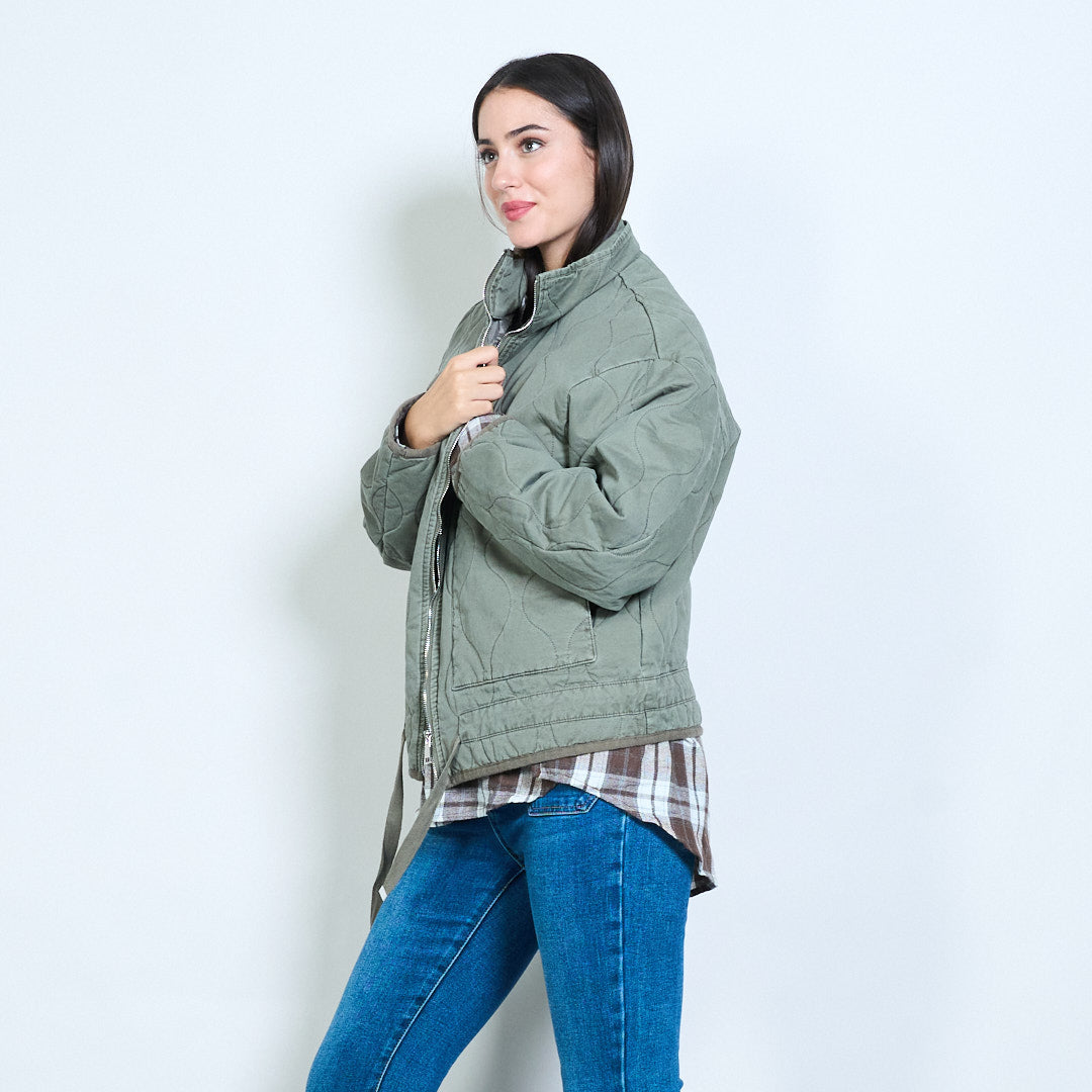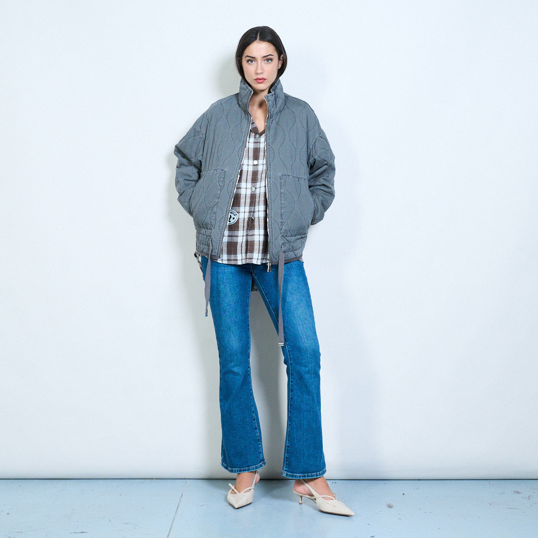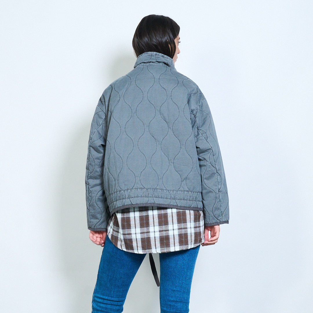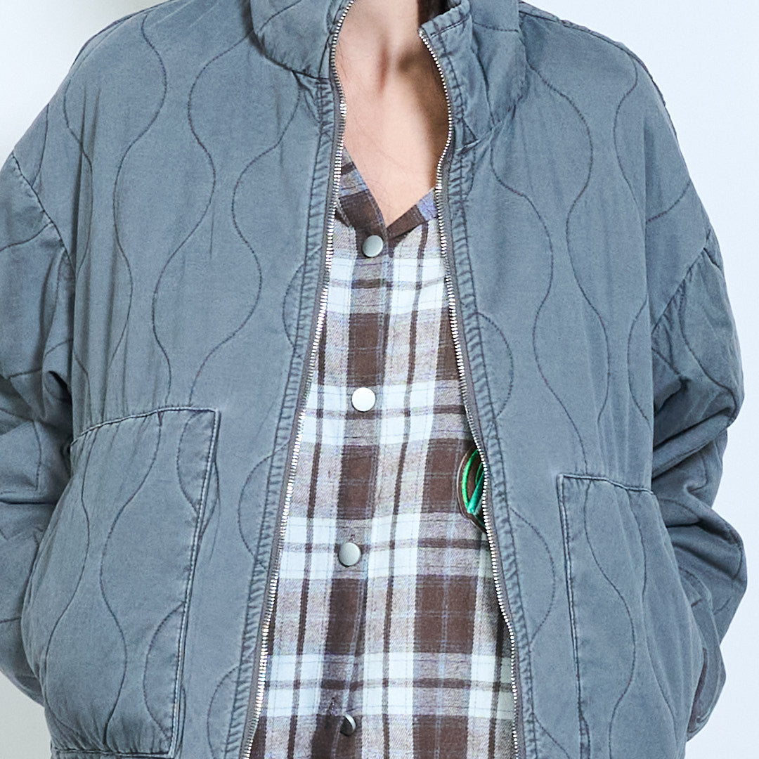 Волнистый стеганый пуховик оверсайз с высоким воротником оптом