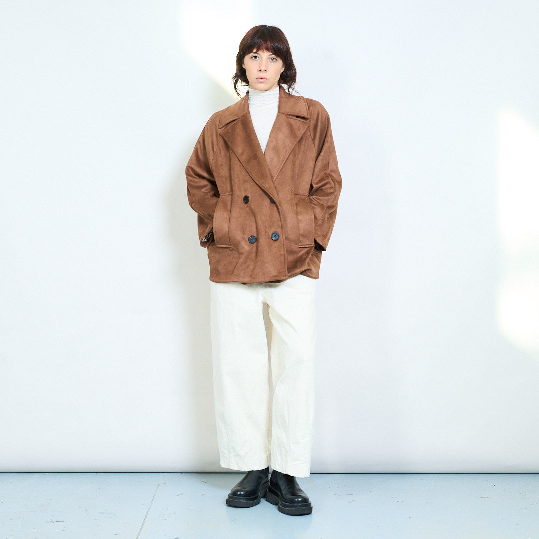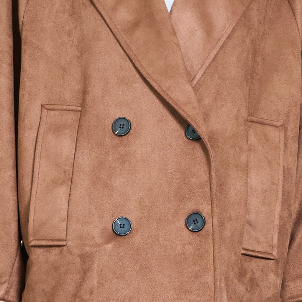 - Двубортный дизайн спереди подчеркивает структурированный классический силуэт.