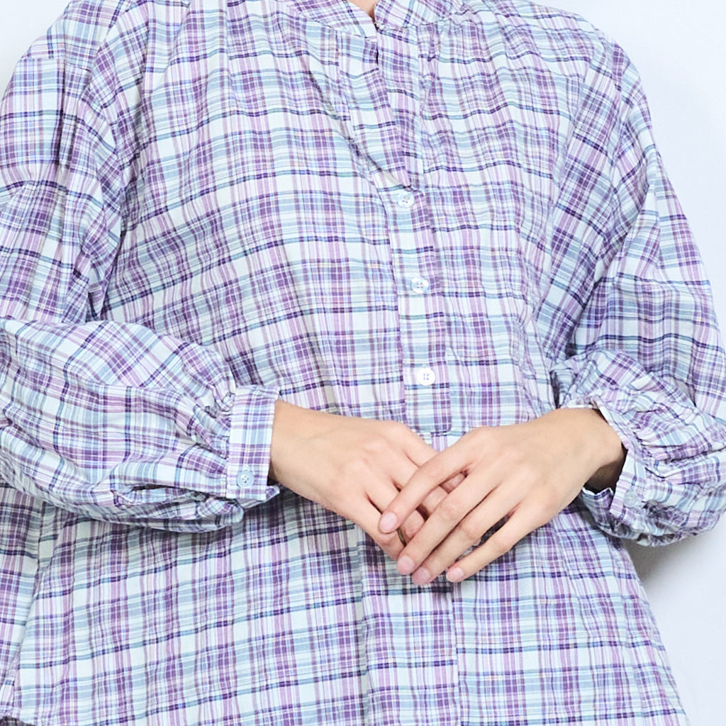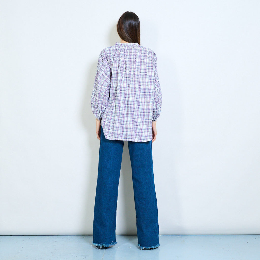 Клетчатая пуговица с передней блузкой с рукавами оптом