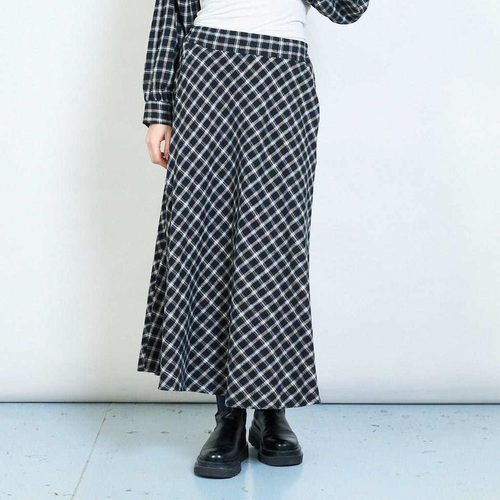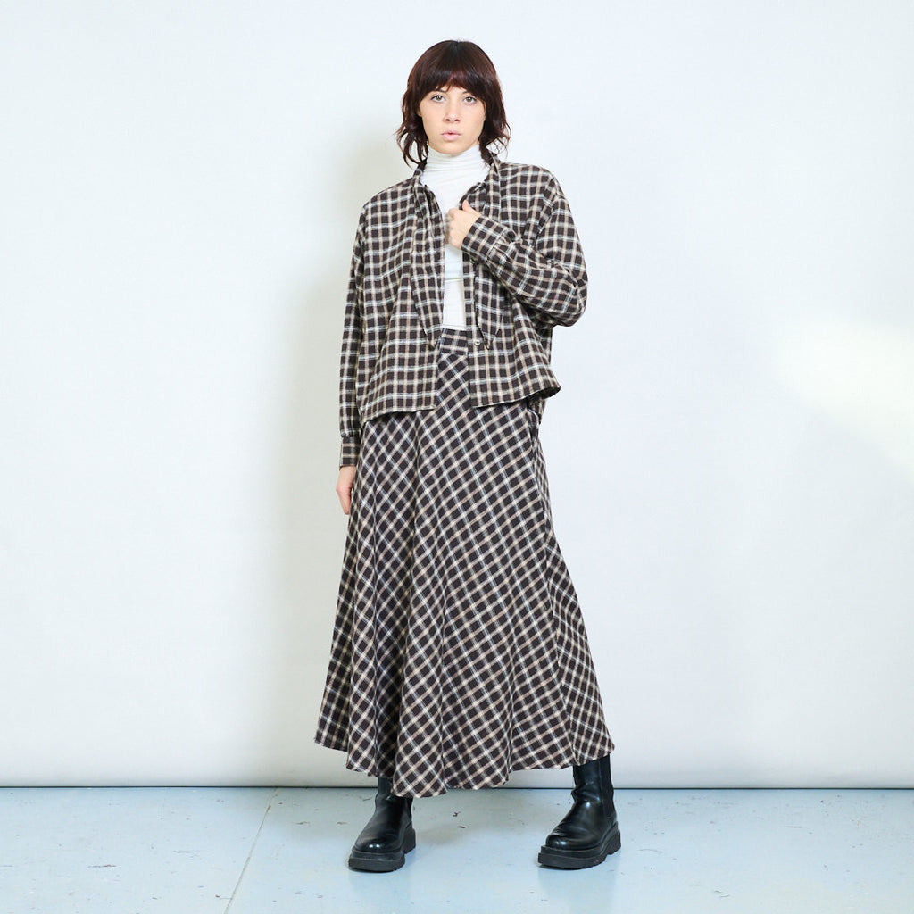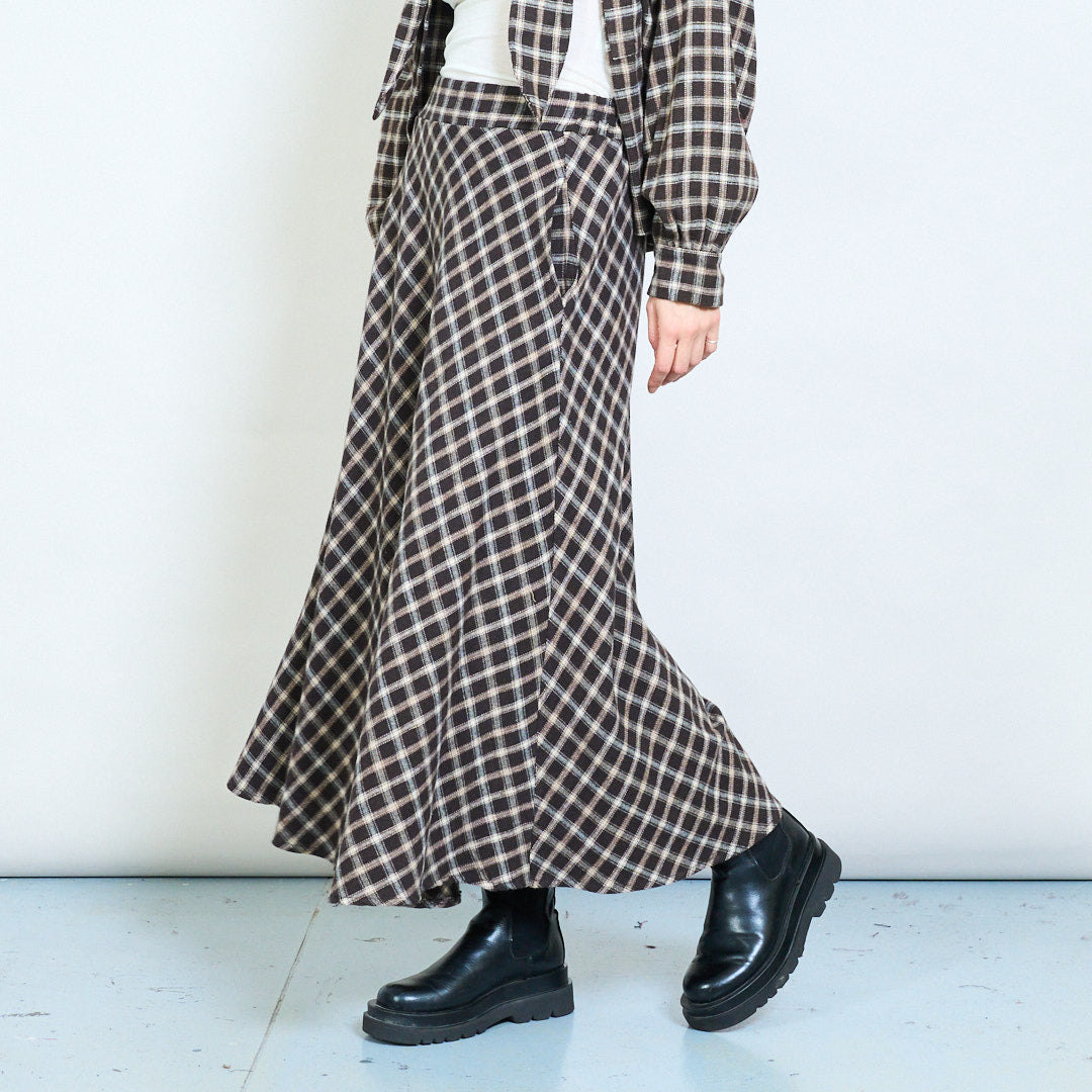 Клетчатая расклешенная трикотажная юбка миди оптом
