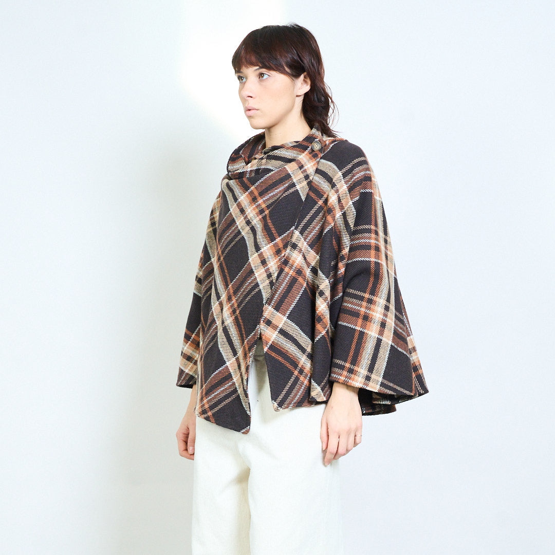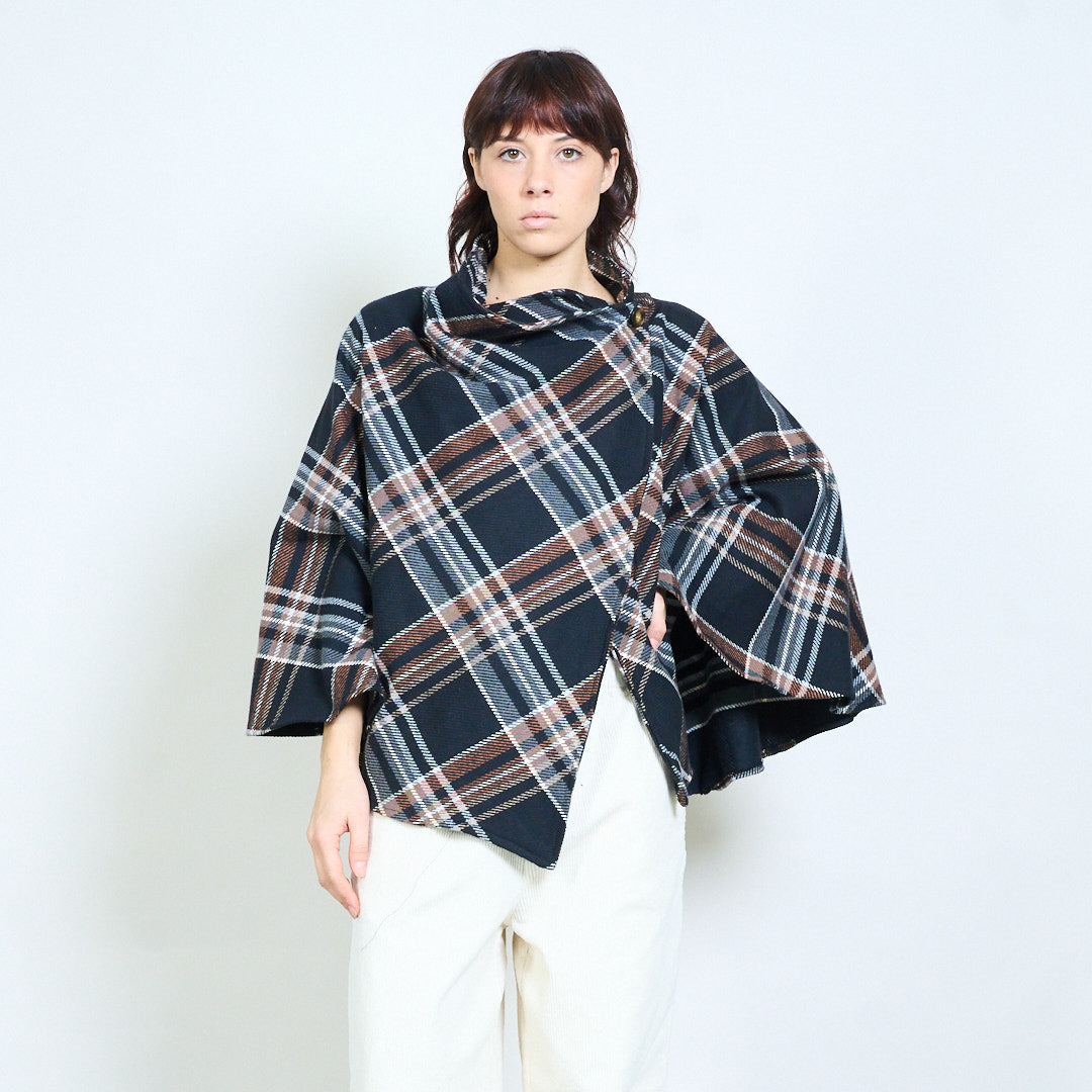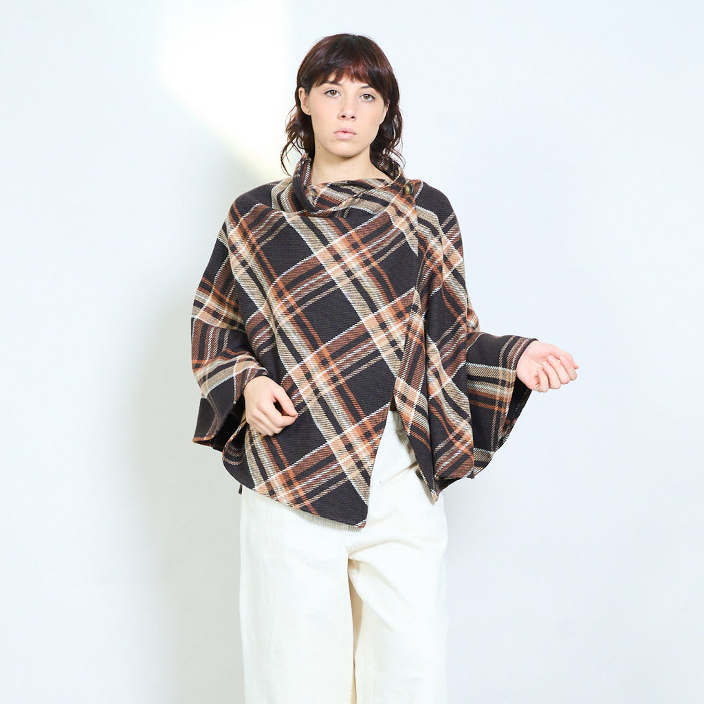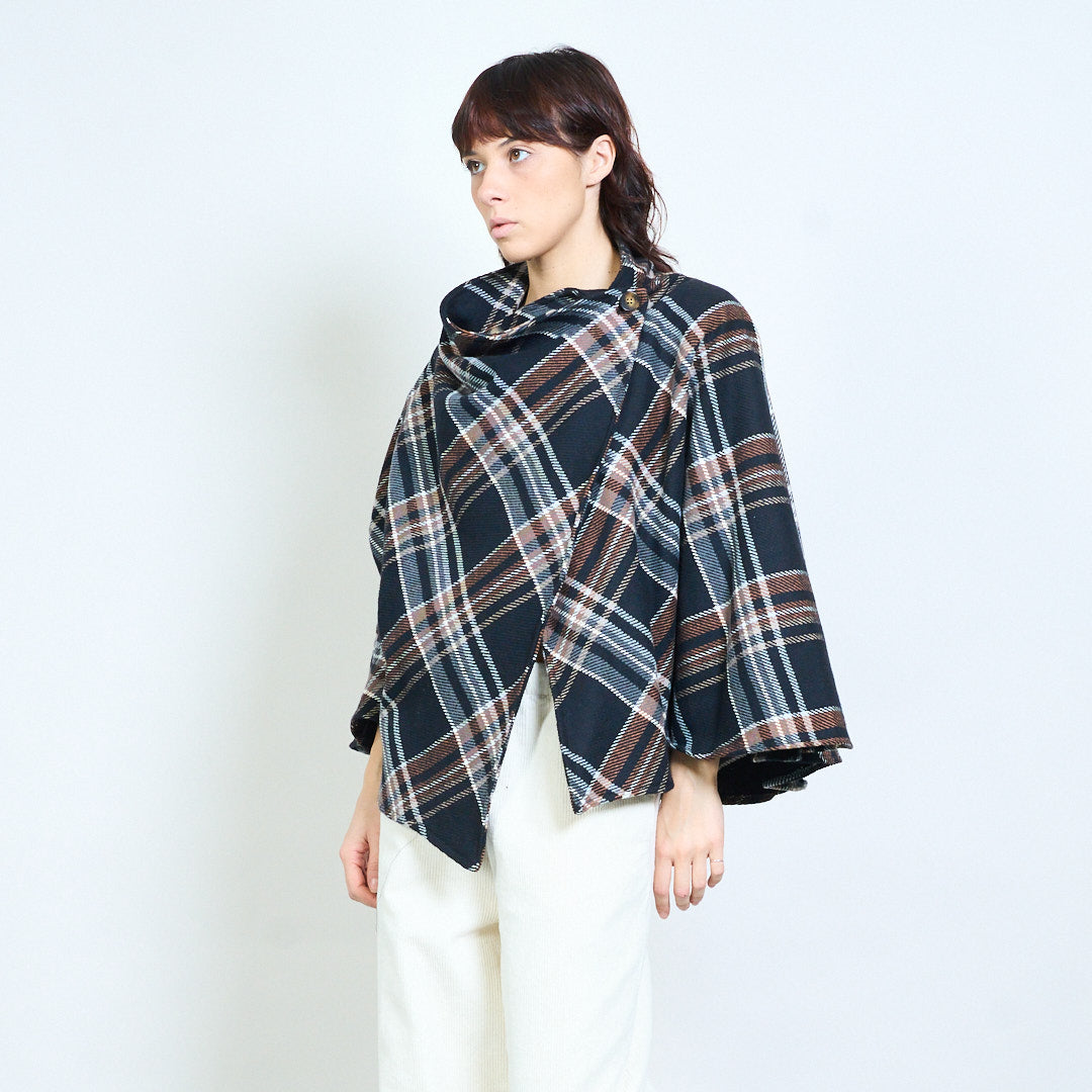Клетчатый жакет-кейп с драпировкой и пуговицами оптом