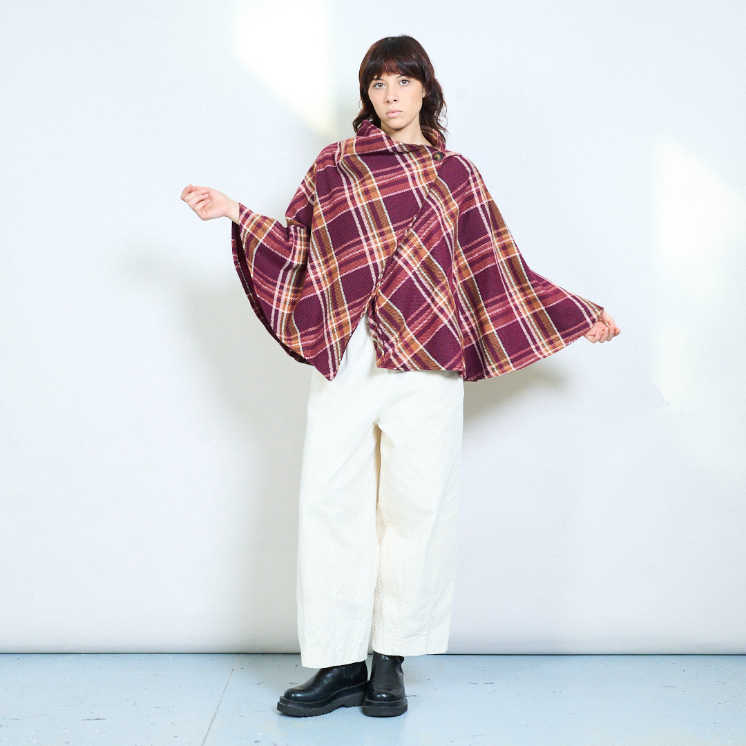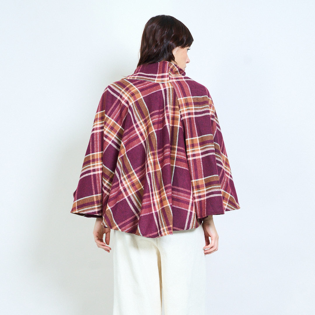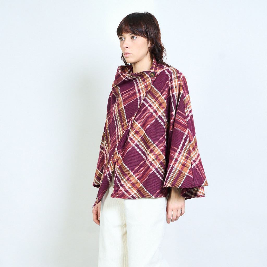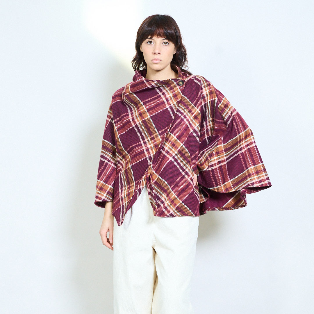 Клетчатый жакет-кейп с драпировкой и пуговицами оптом