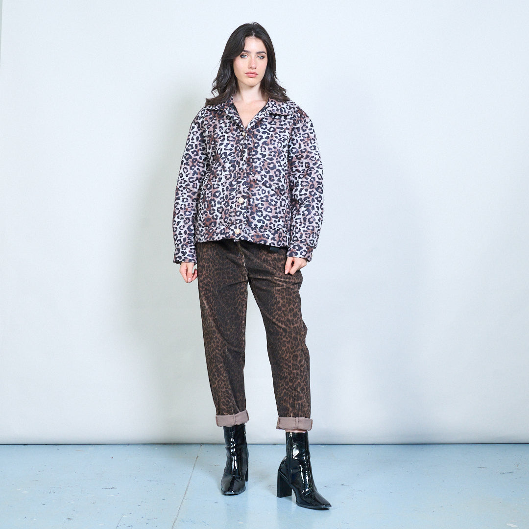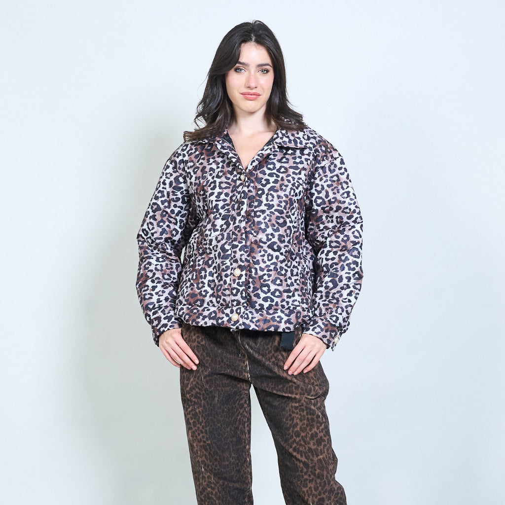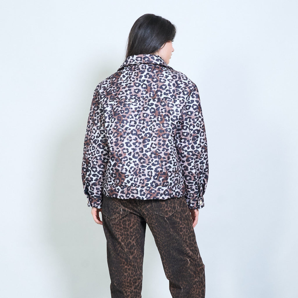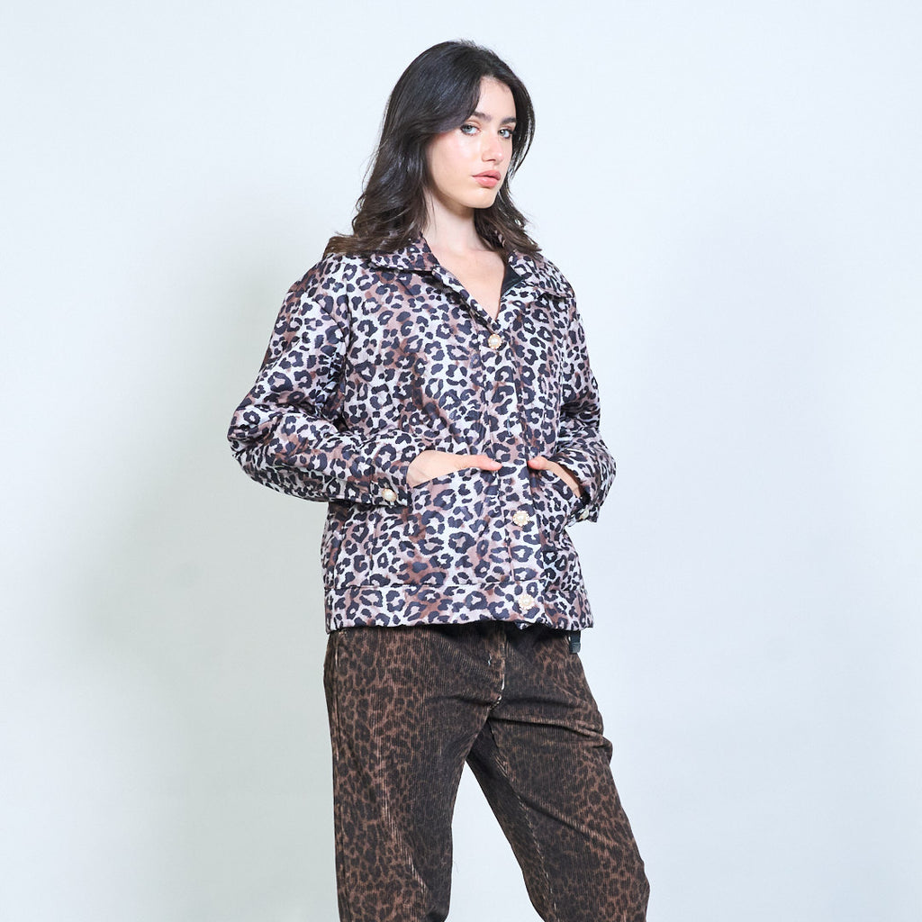 Кнопка леопардовой печати передняя повседневная куртка оптом