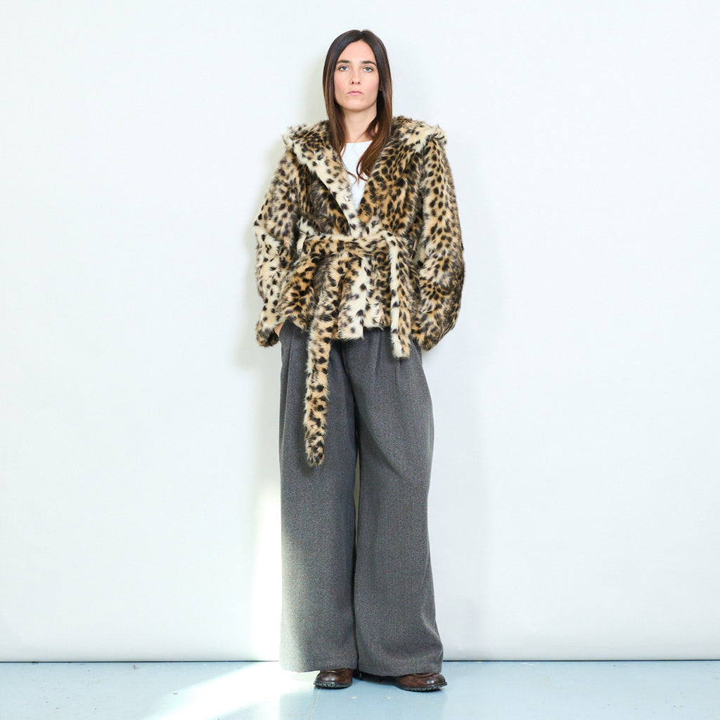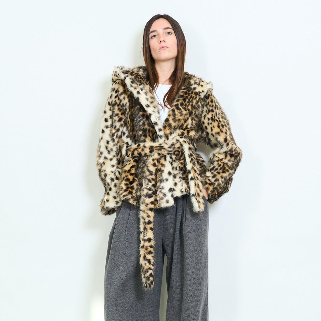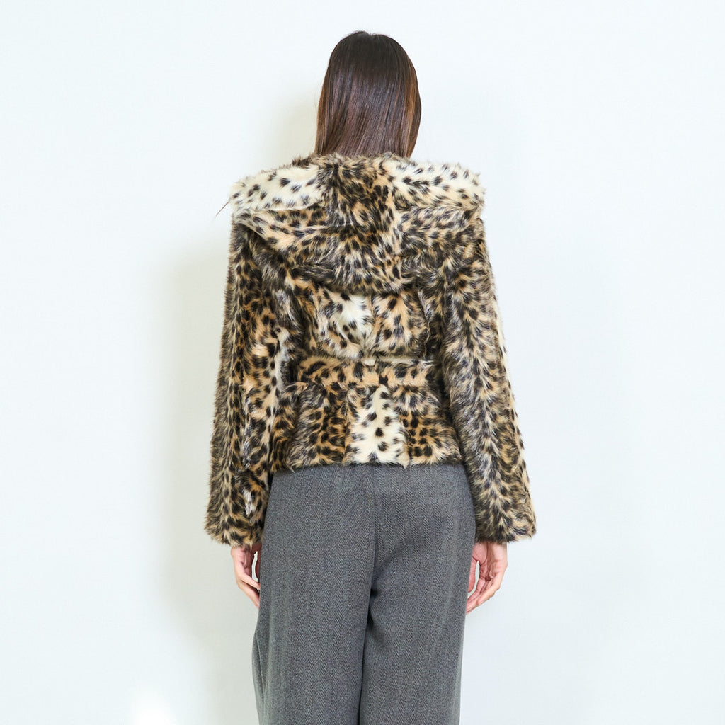 Леопардовый принт искусственный мех шерсть с капюшоном оптом