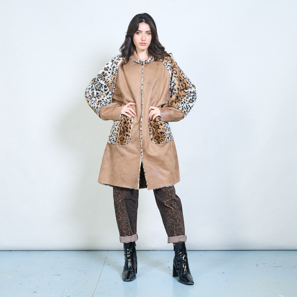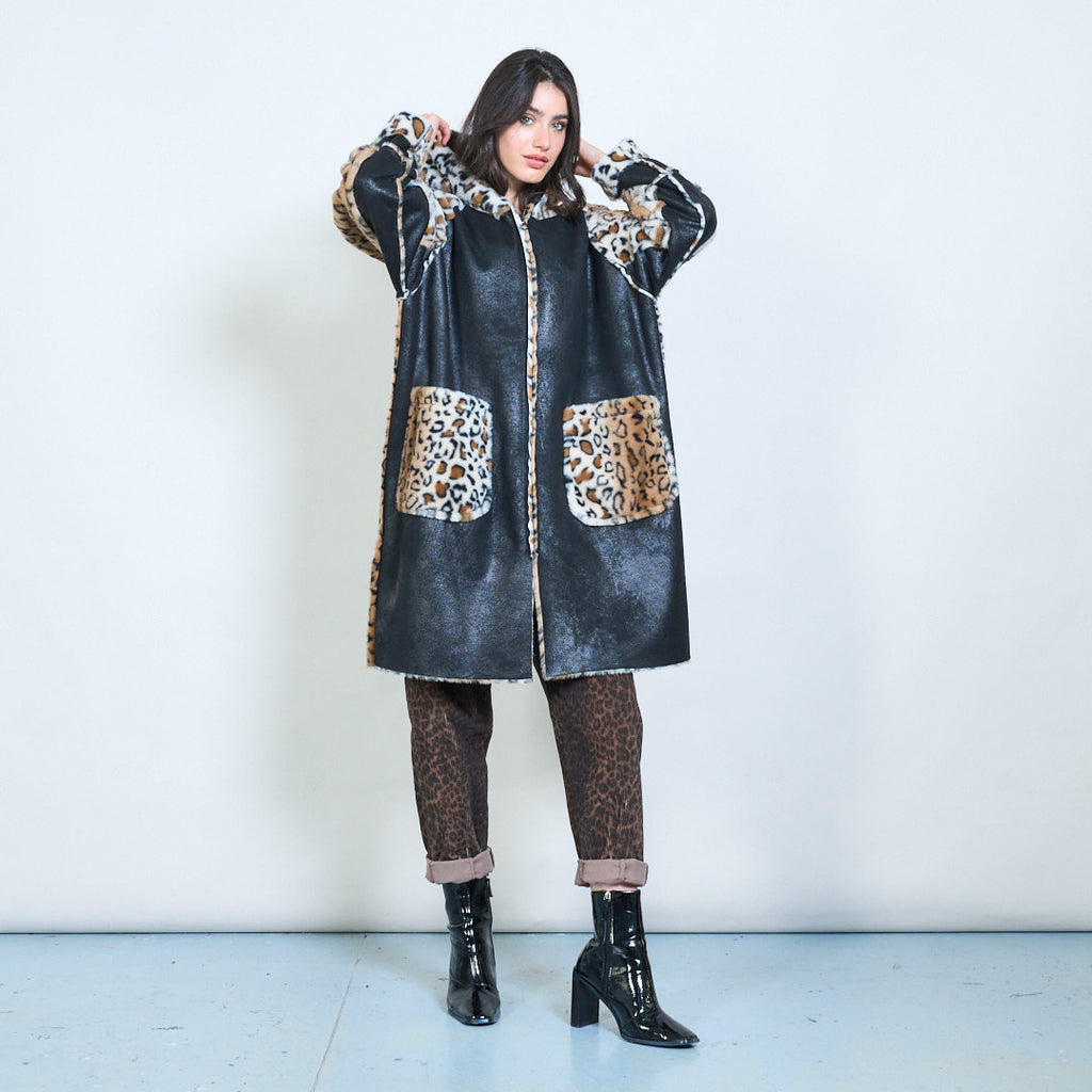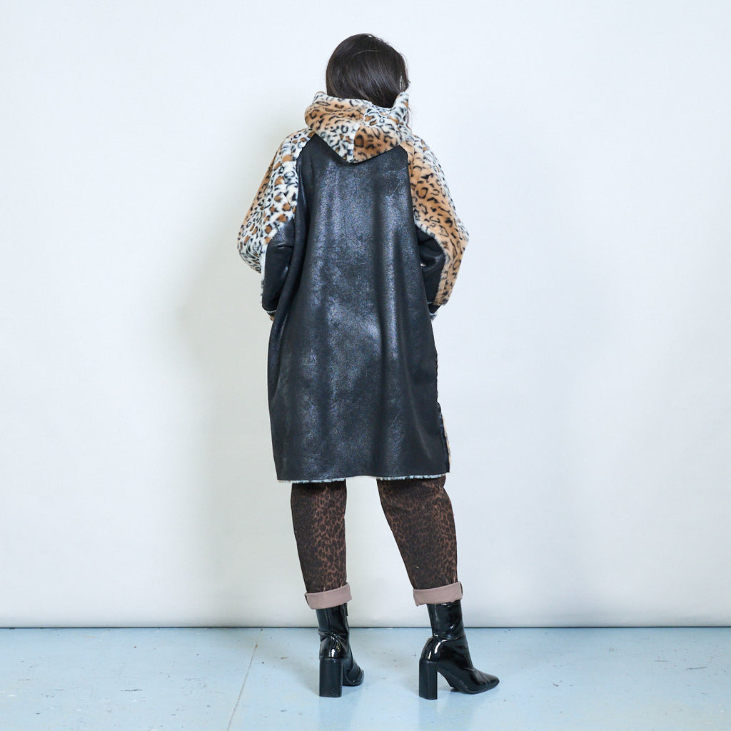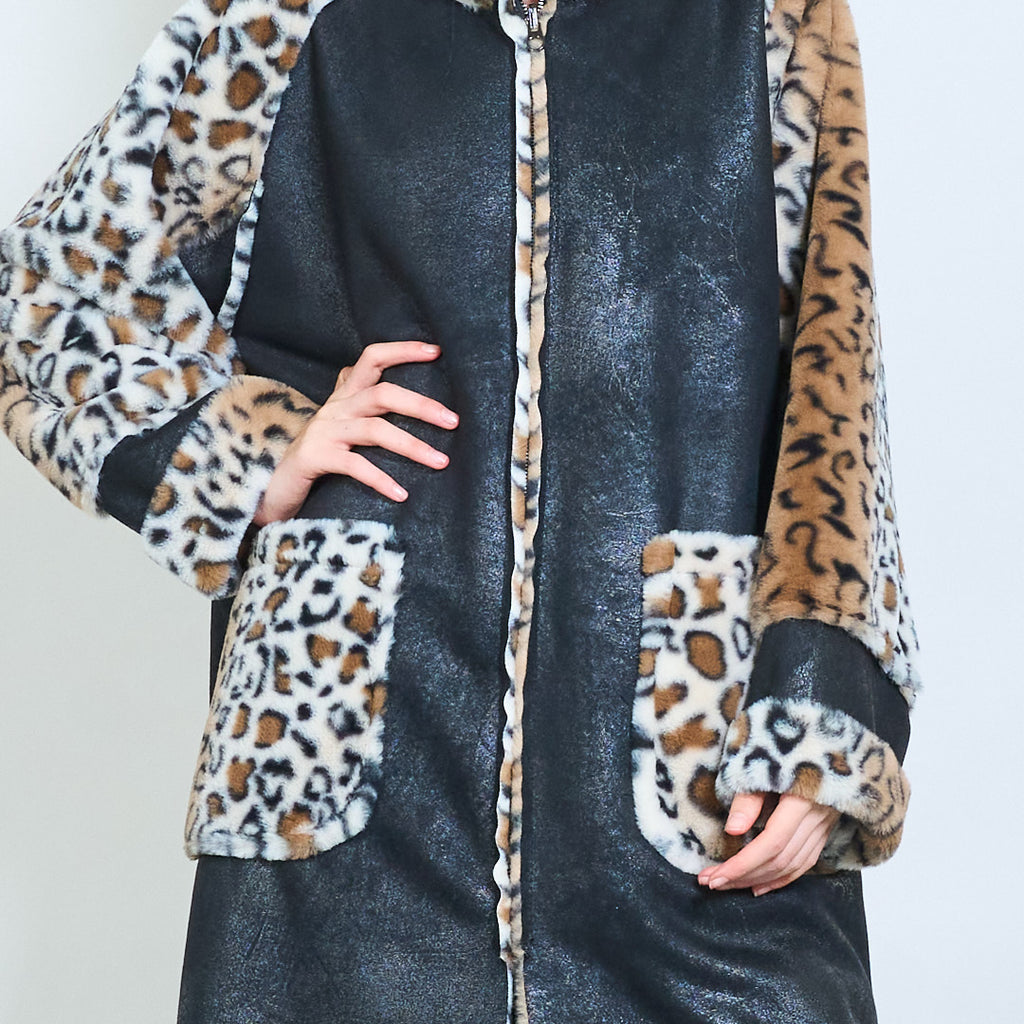 Леопардовый принт контрастной панель с капюшоном на молнии оптом