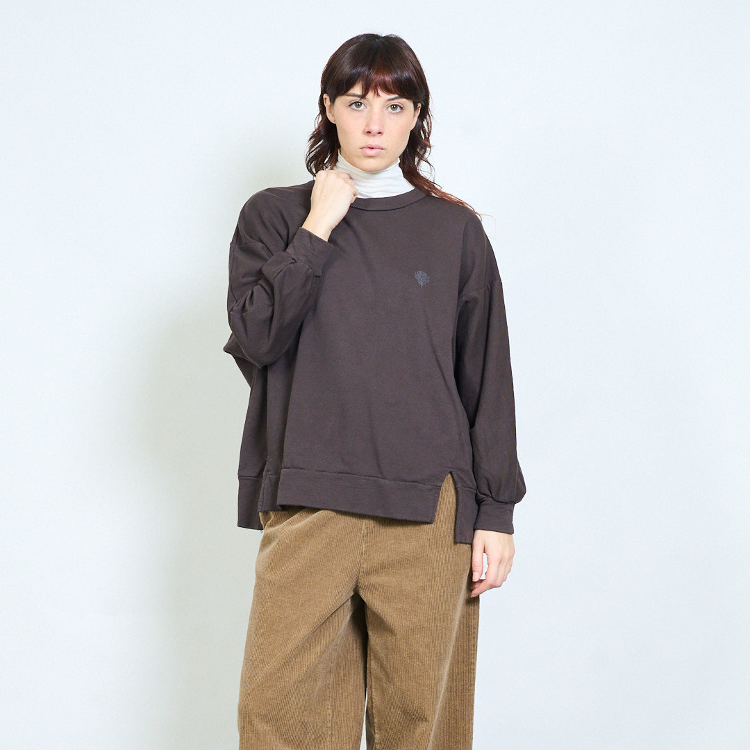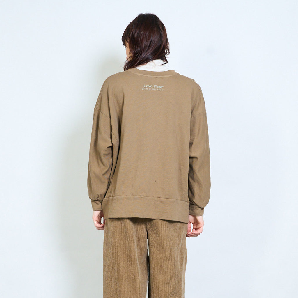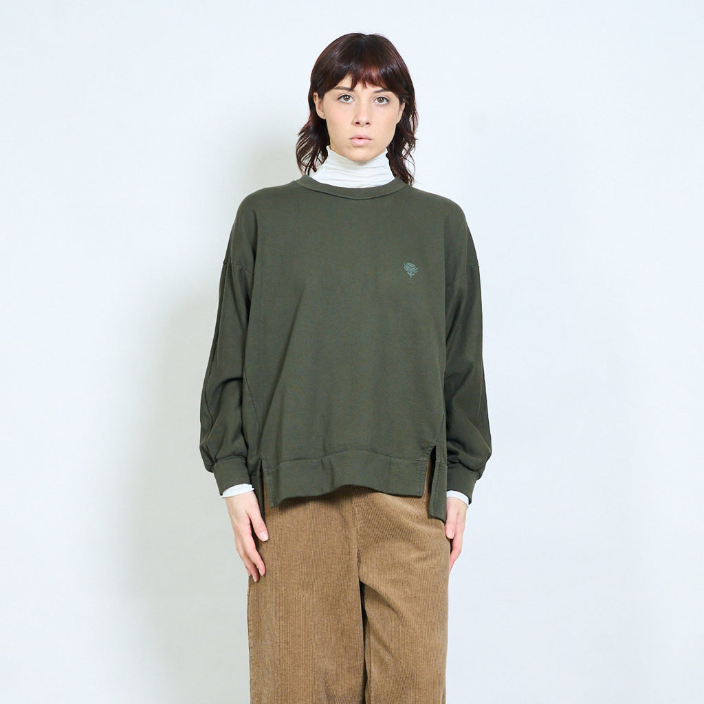 Минималистичный свободный свитшот с вышивкой в виде листьев оптом