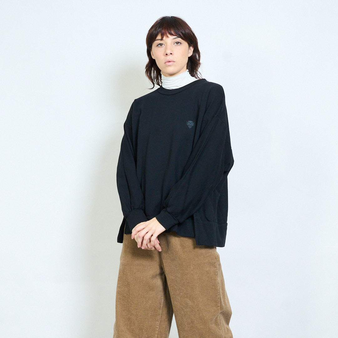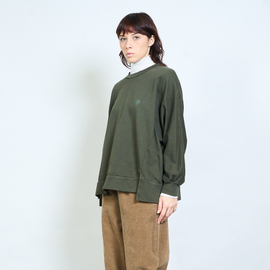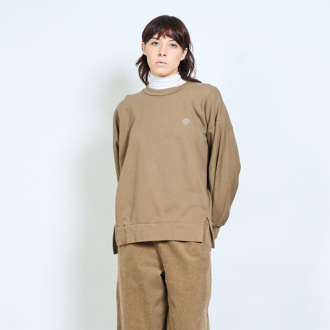 Минималистичный свободный свитшот с вышивкой в виде листьев оптом