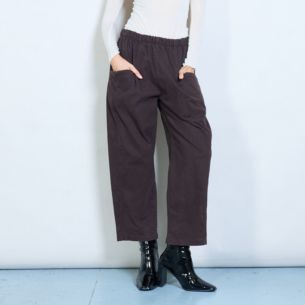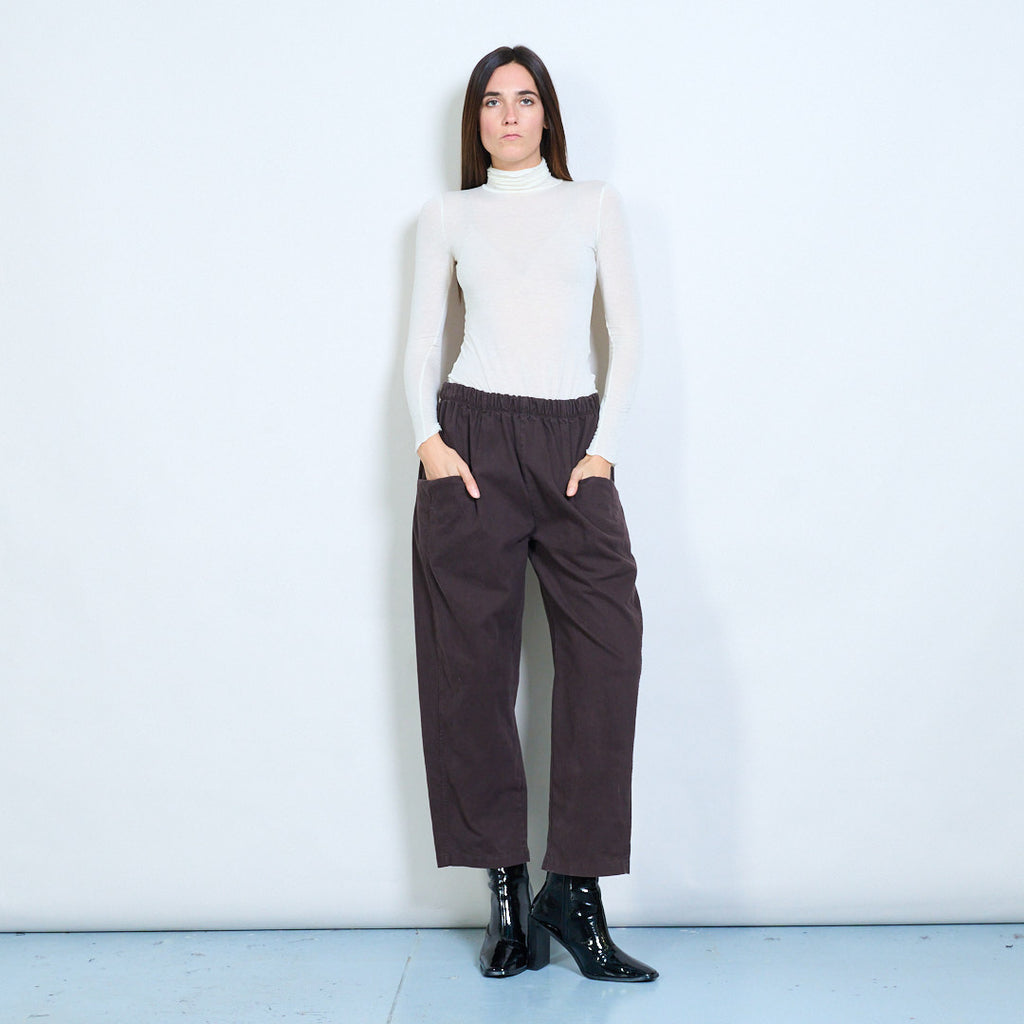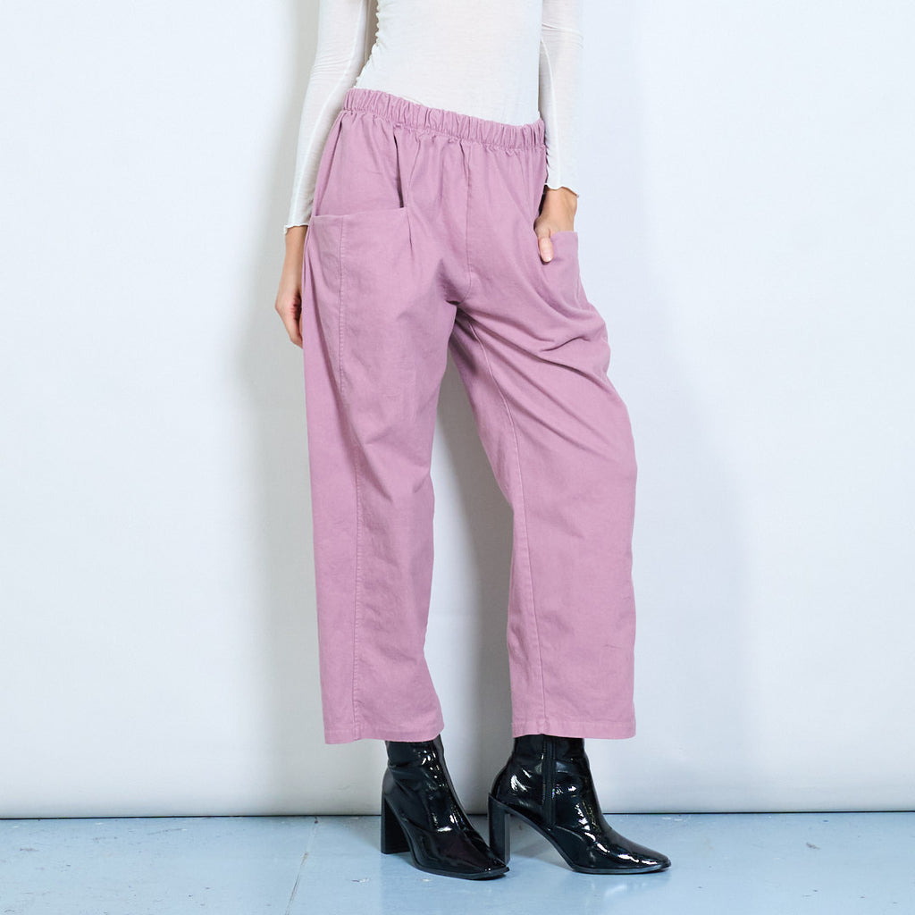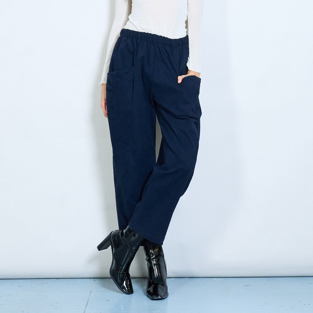 Расслабленные брюки с высокой талией с патч -карманами оптом