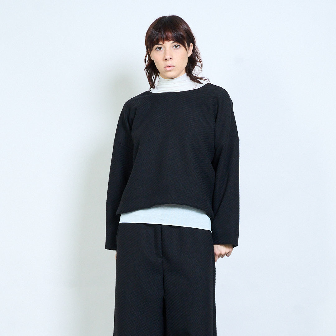 Свободный топ в полоску с фактурным многослойным подолом оптом