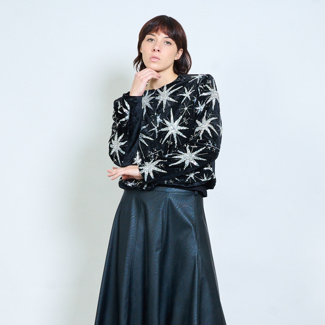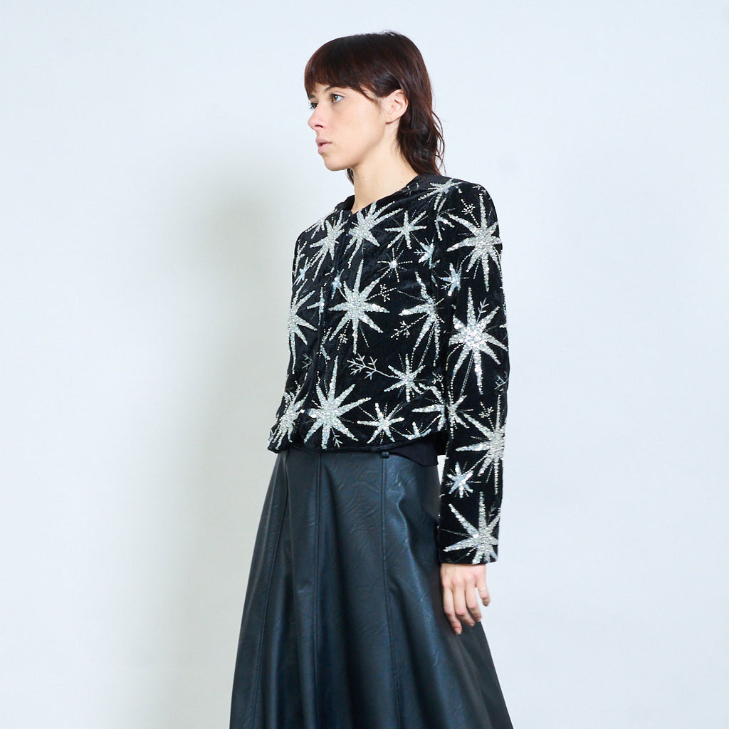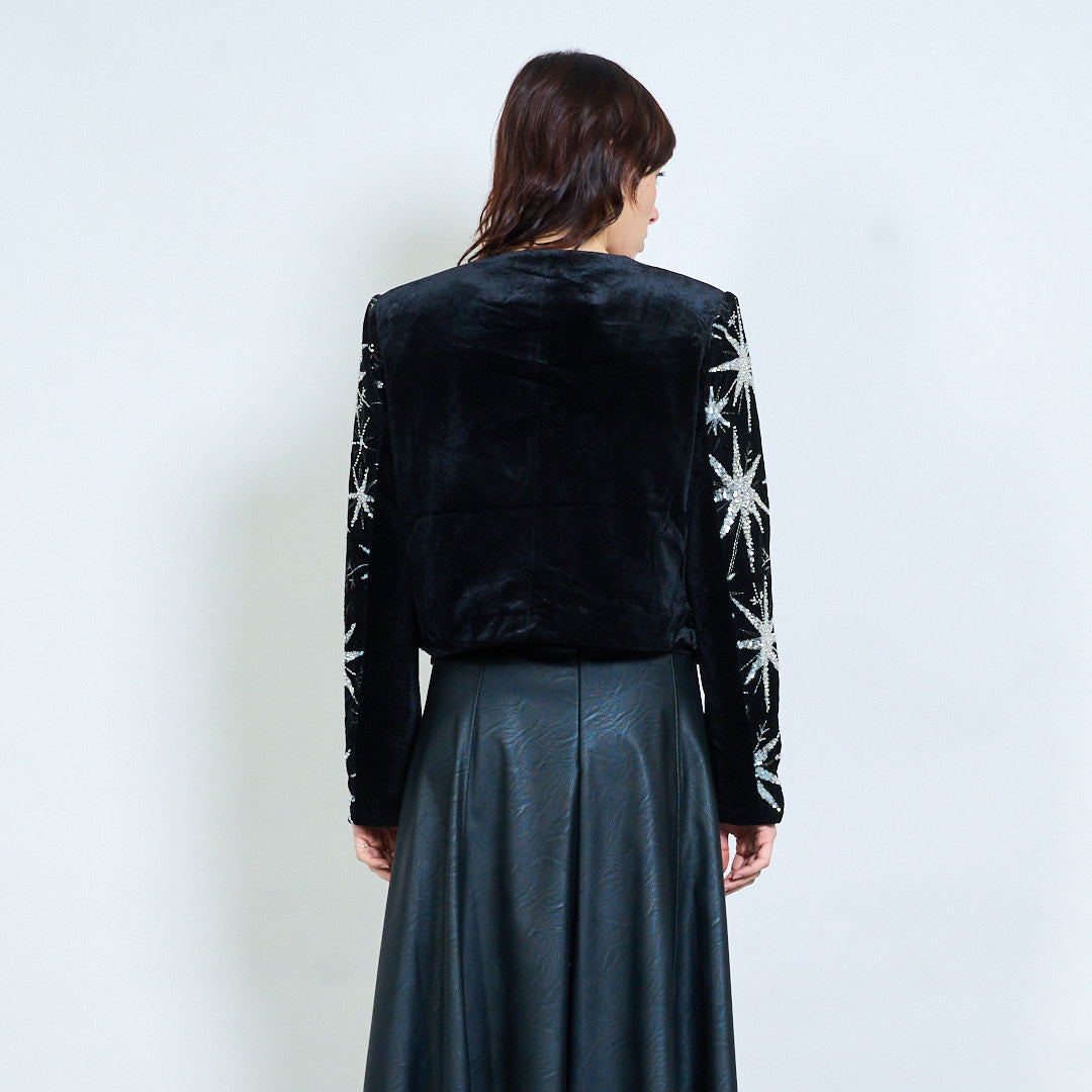 Укороченный бархатный жакет с блестками и звездочками оптом