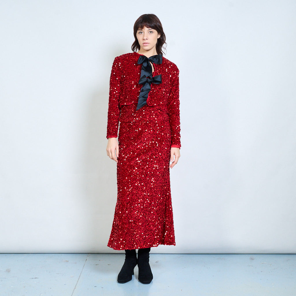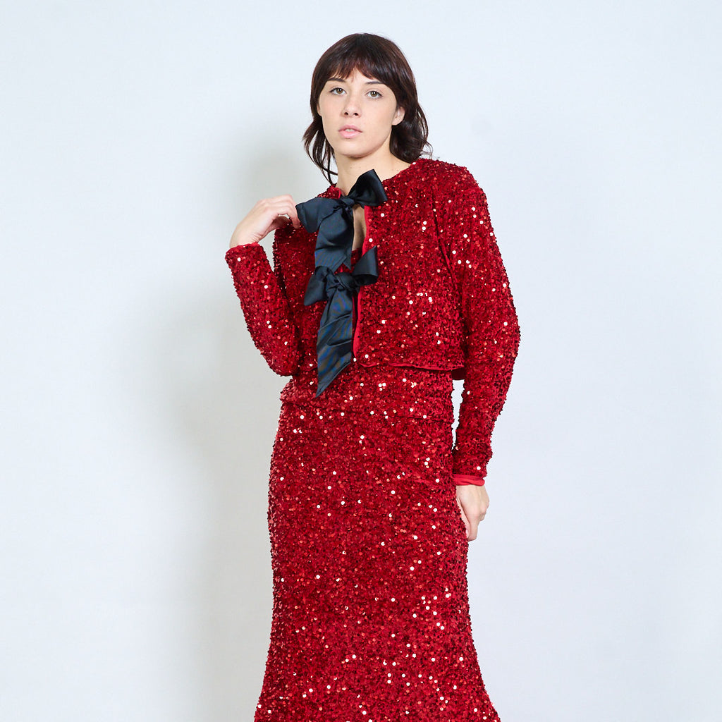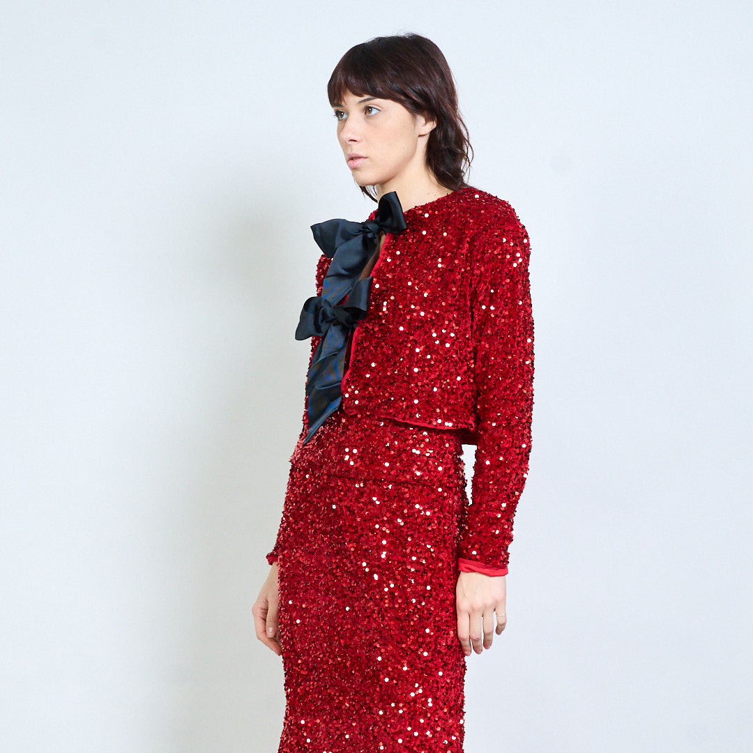 Укороченный жакет с пайетками и галстуком-бабочкой оптом