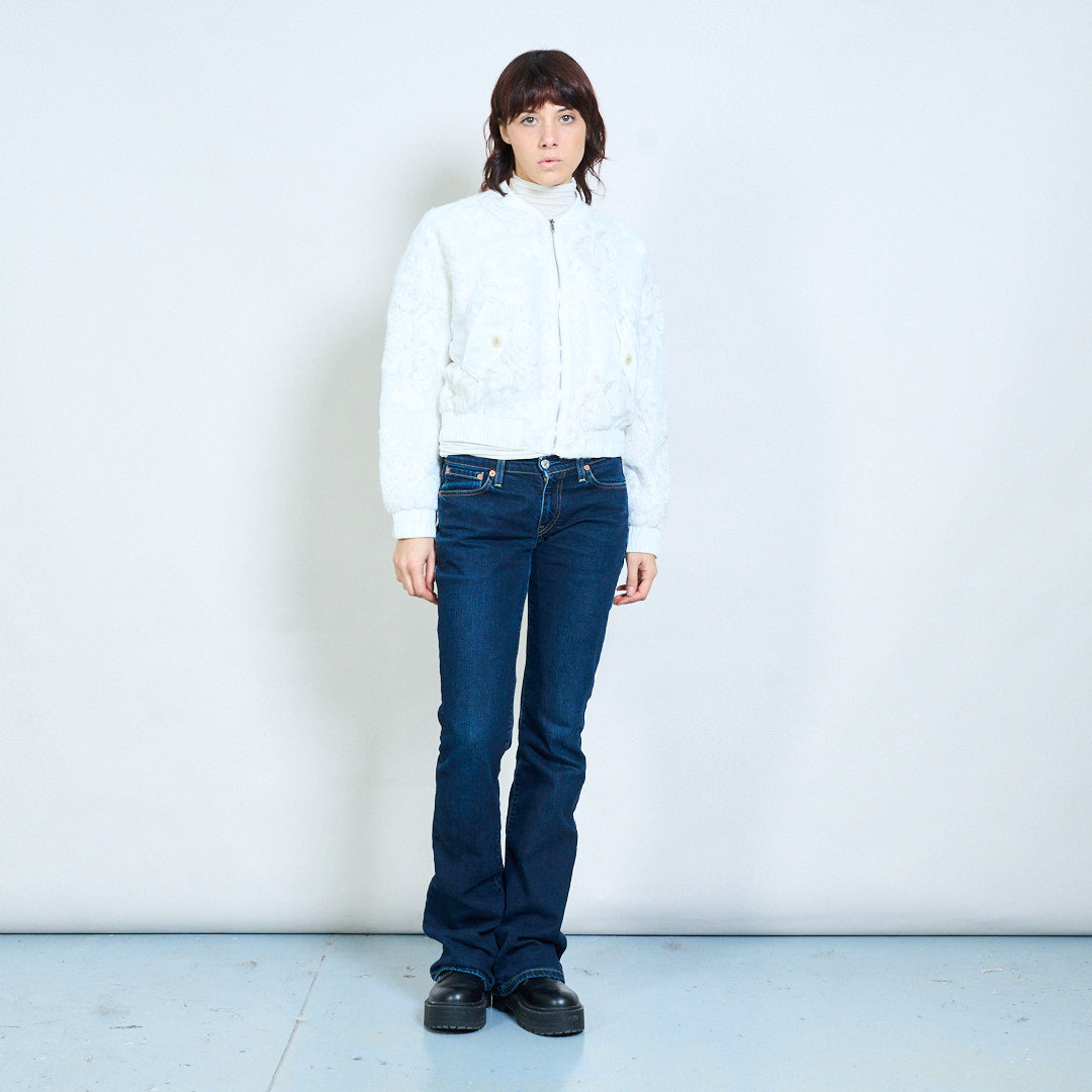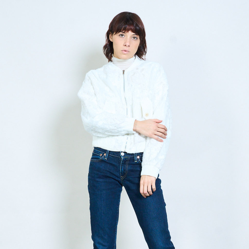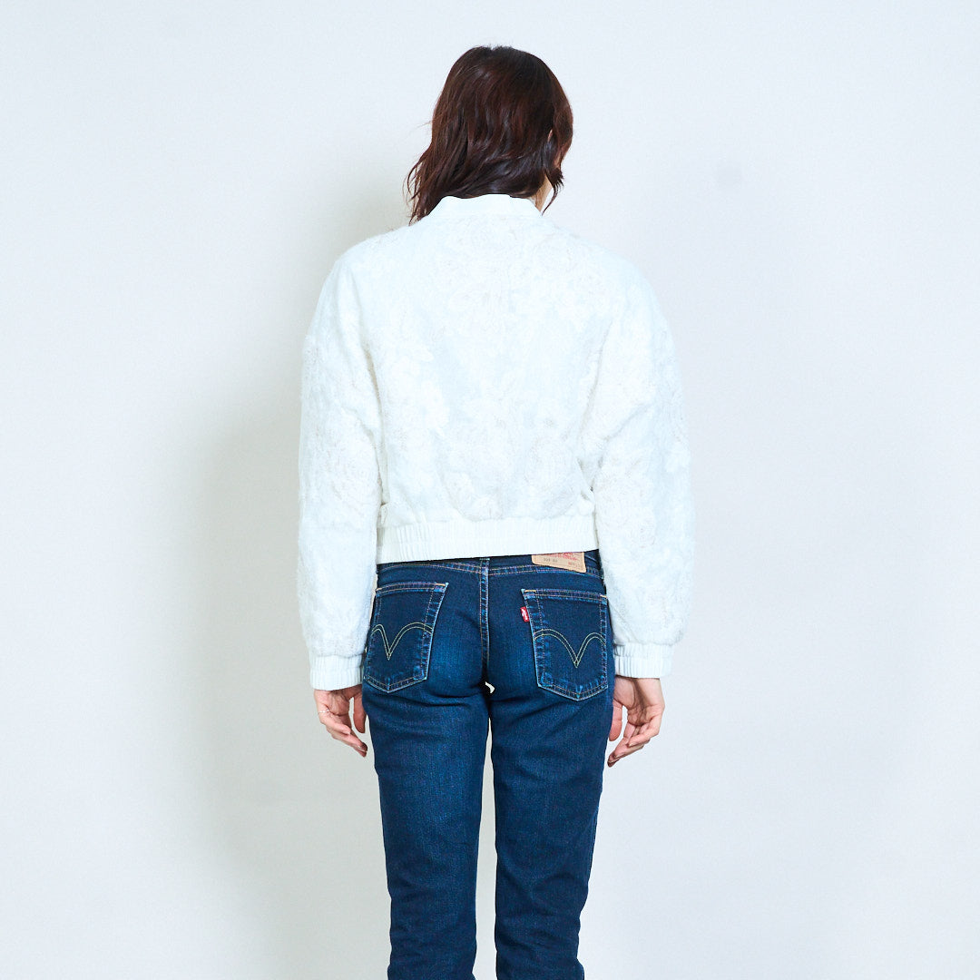 • Силуэт-бомбер с ребристым воротником, манжетами и подолом для классической структурированной отделки.