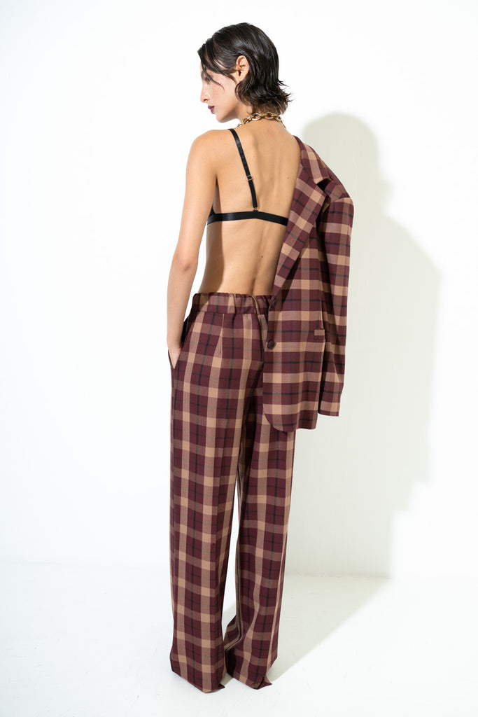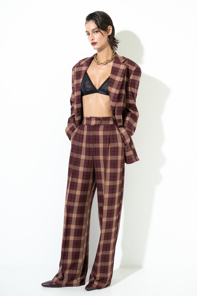 Chequered wide leg tailored trousers wholesale