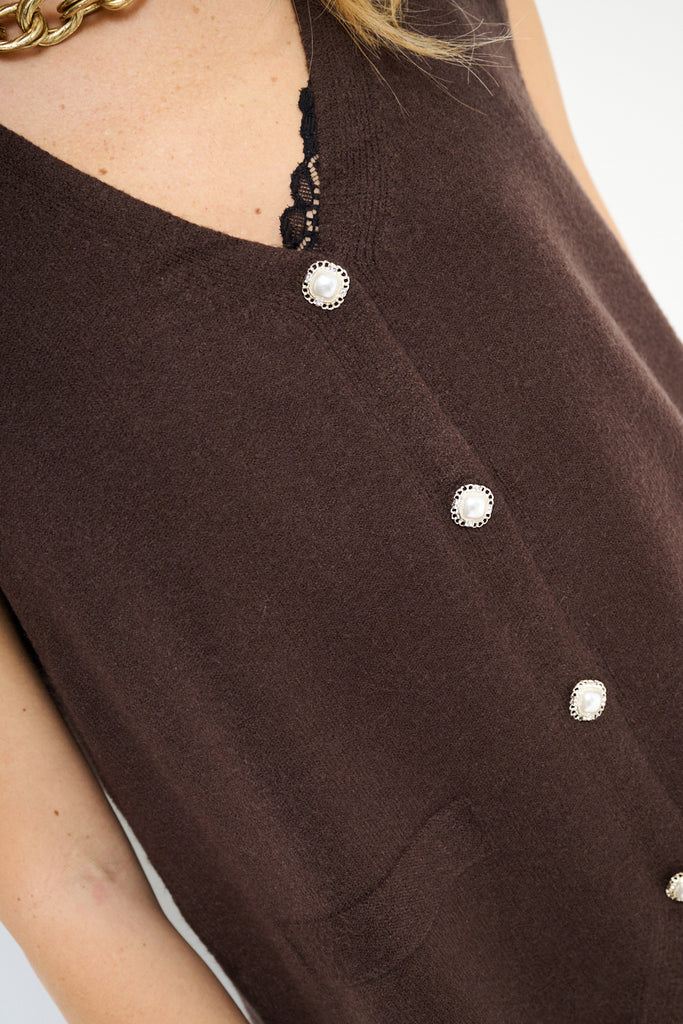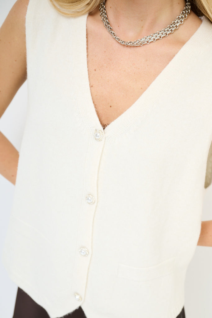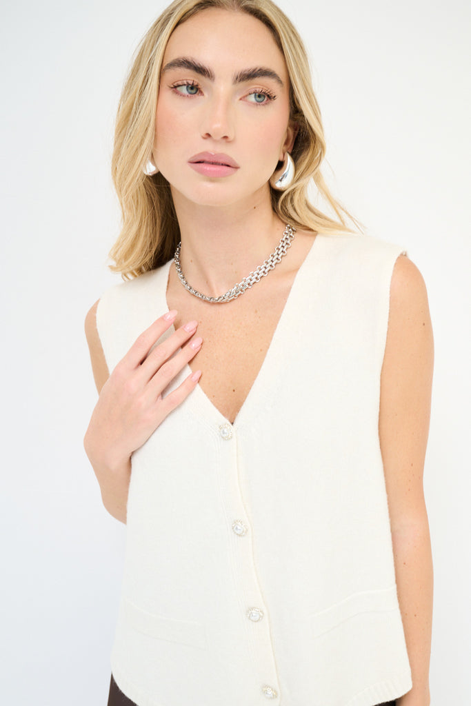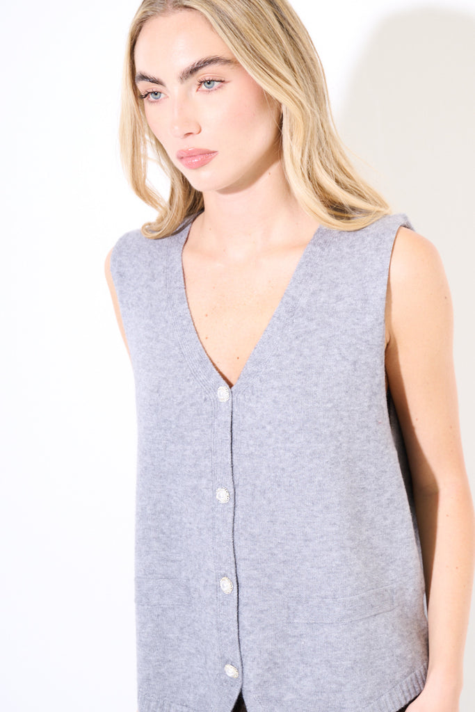 Sleeveless knit button front vest wholesale