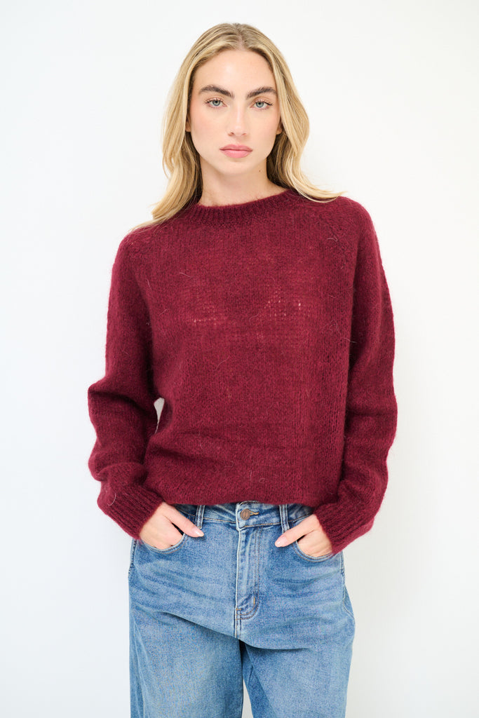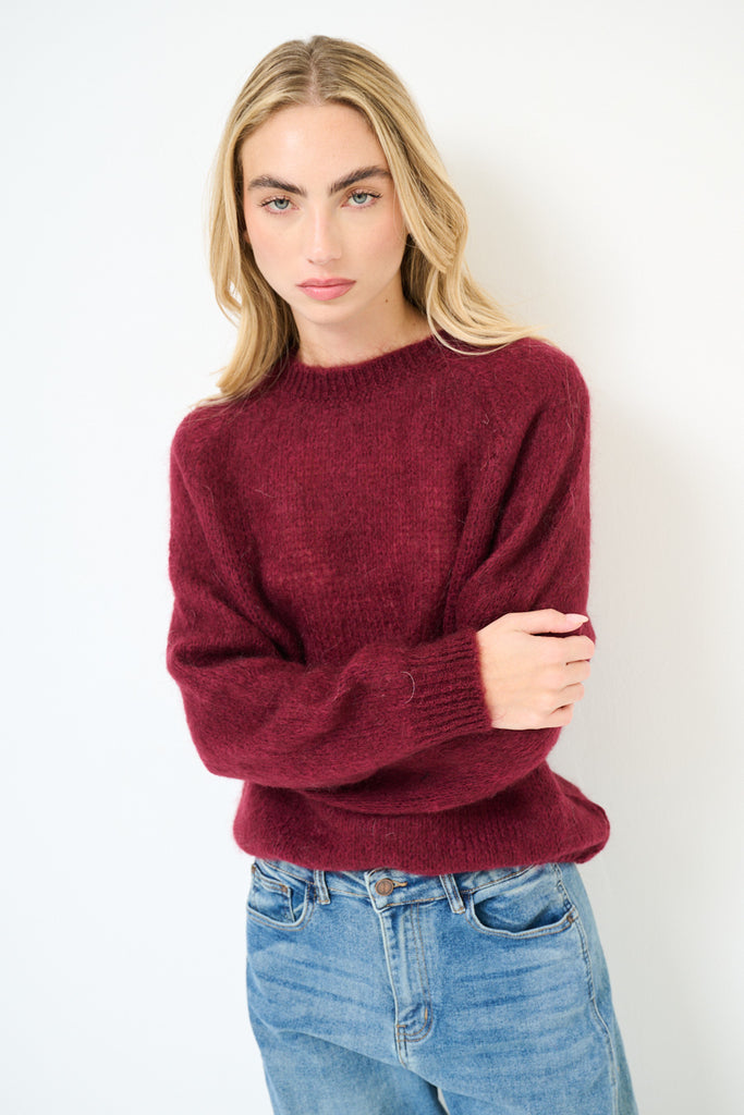 Soft textured crew neck knit sweater wholesale