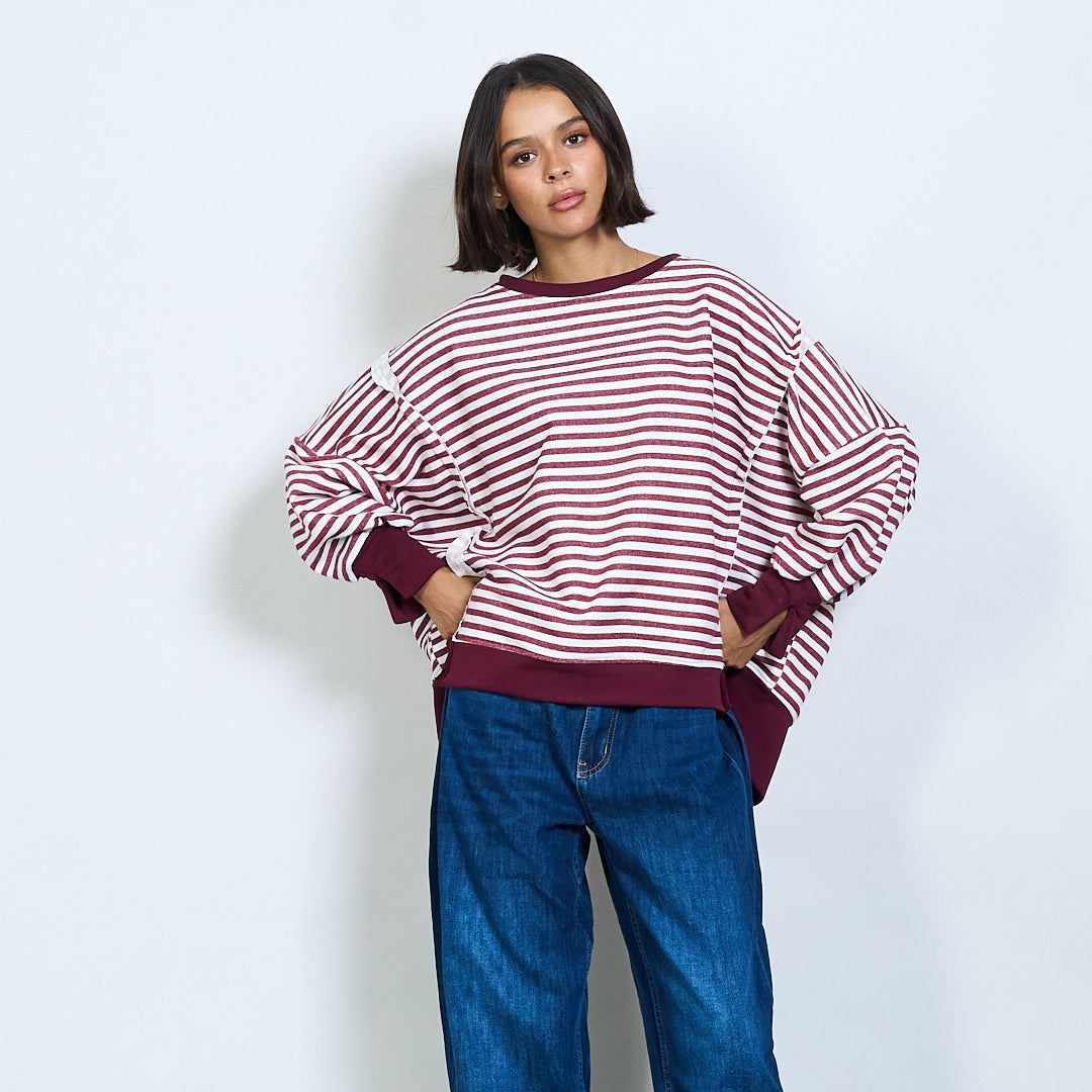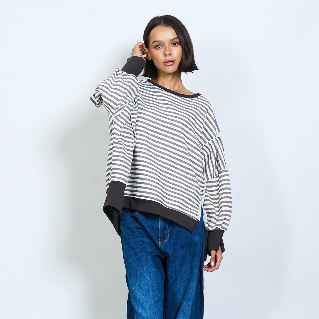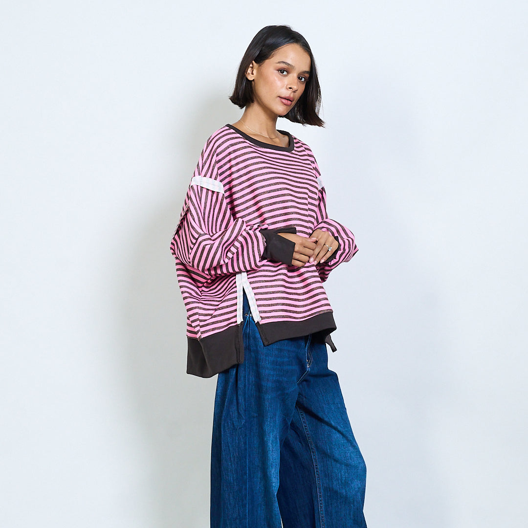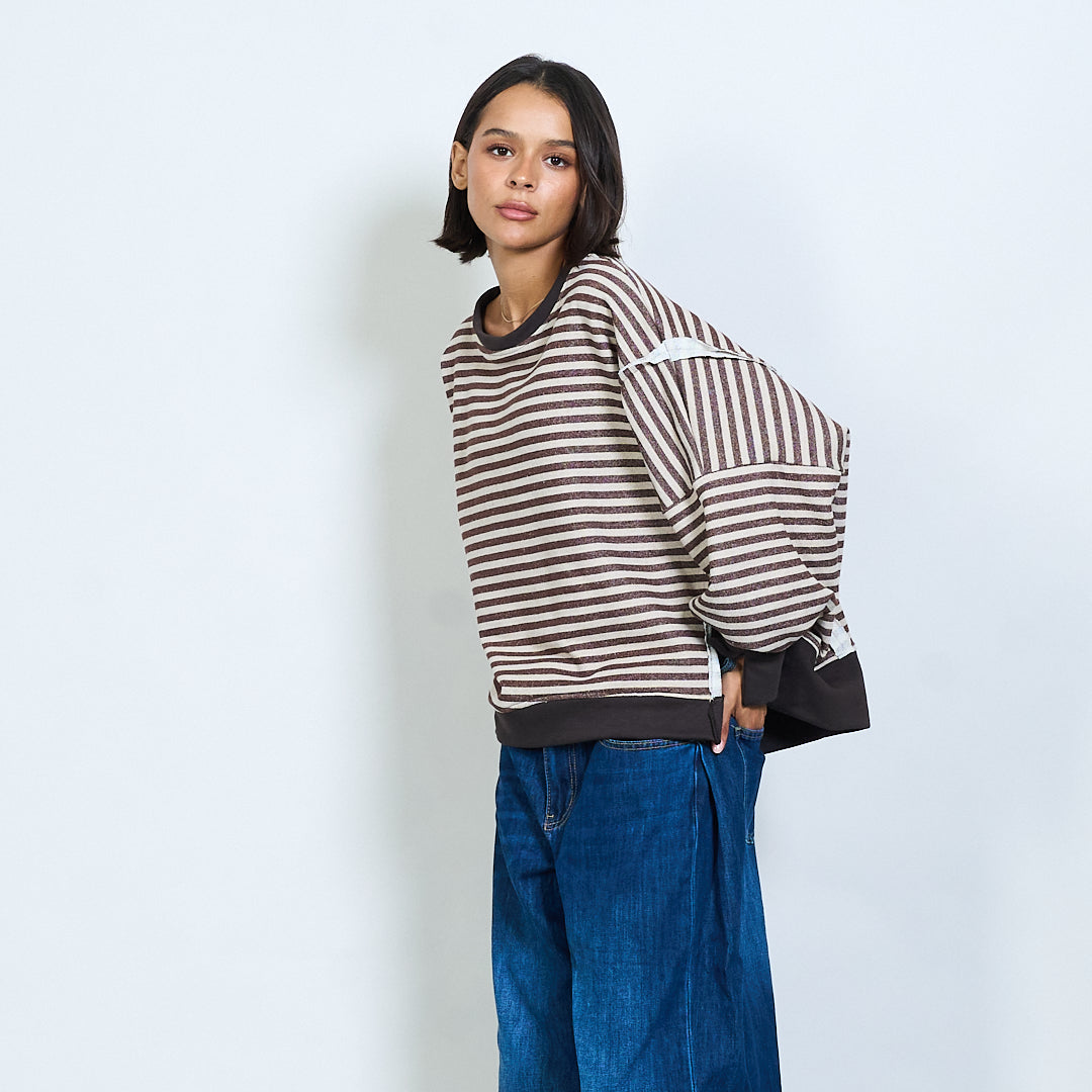 Полосатый с длинным рукавом контрастная отделка верхняя оптом