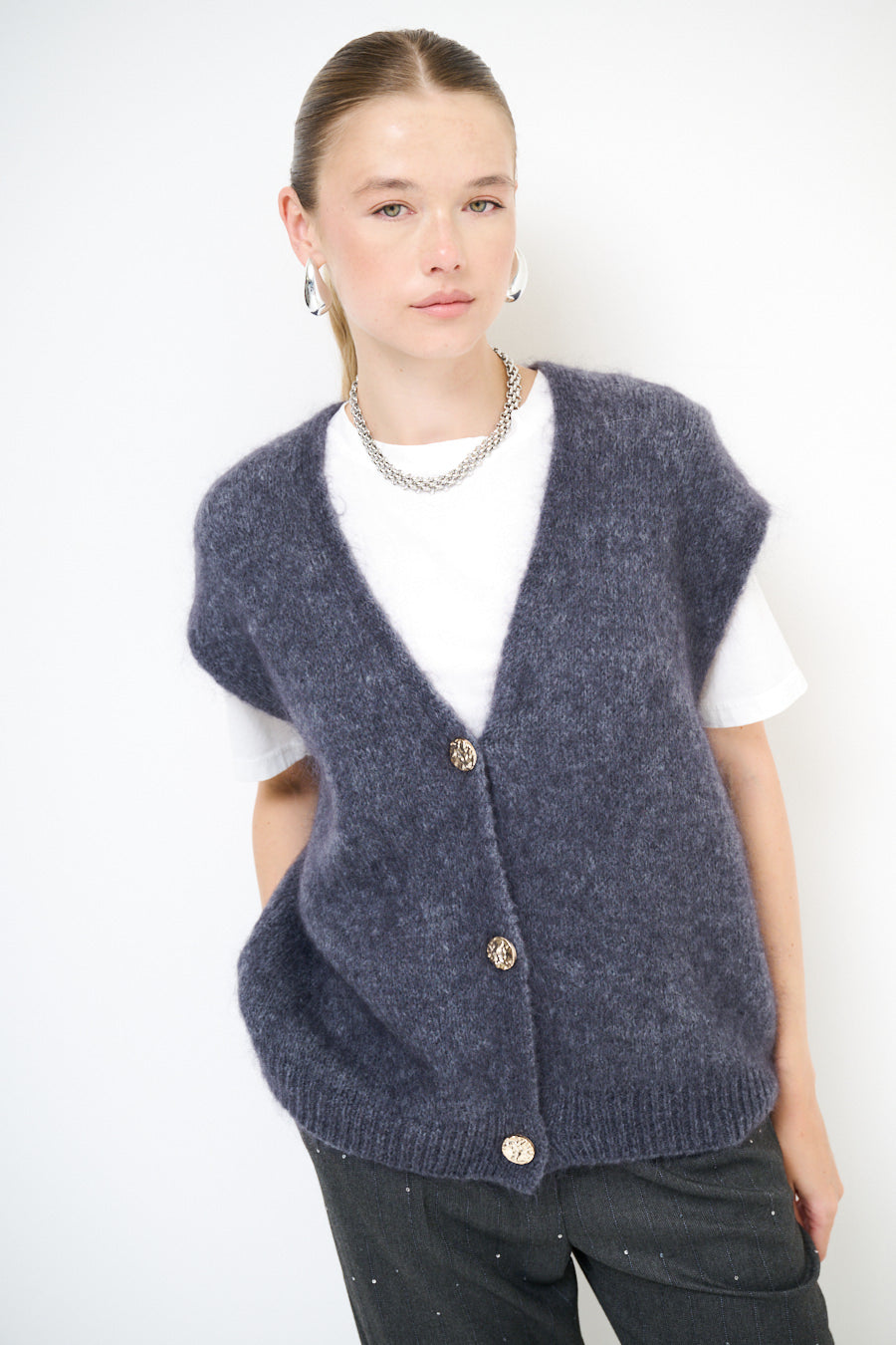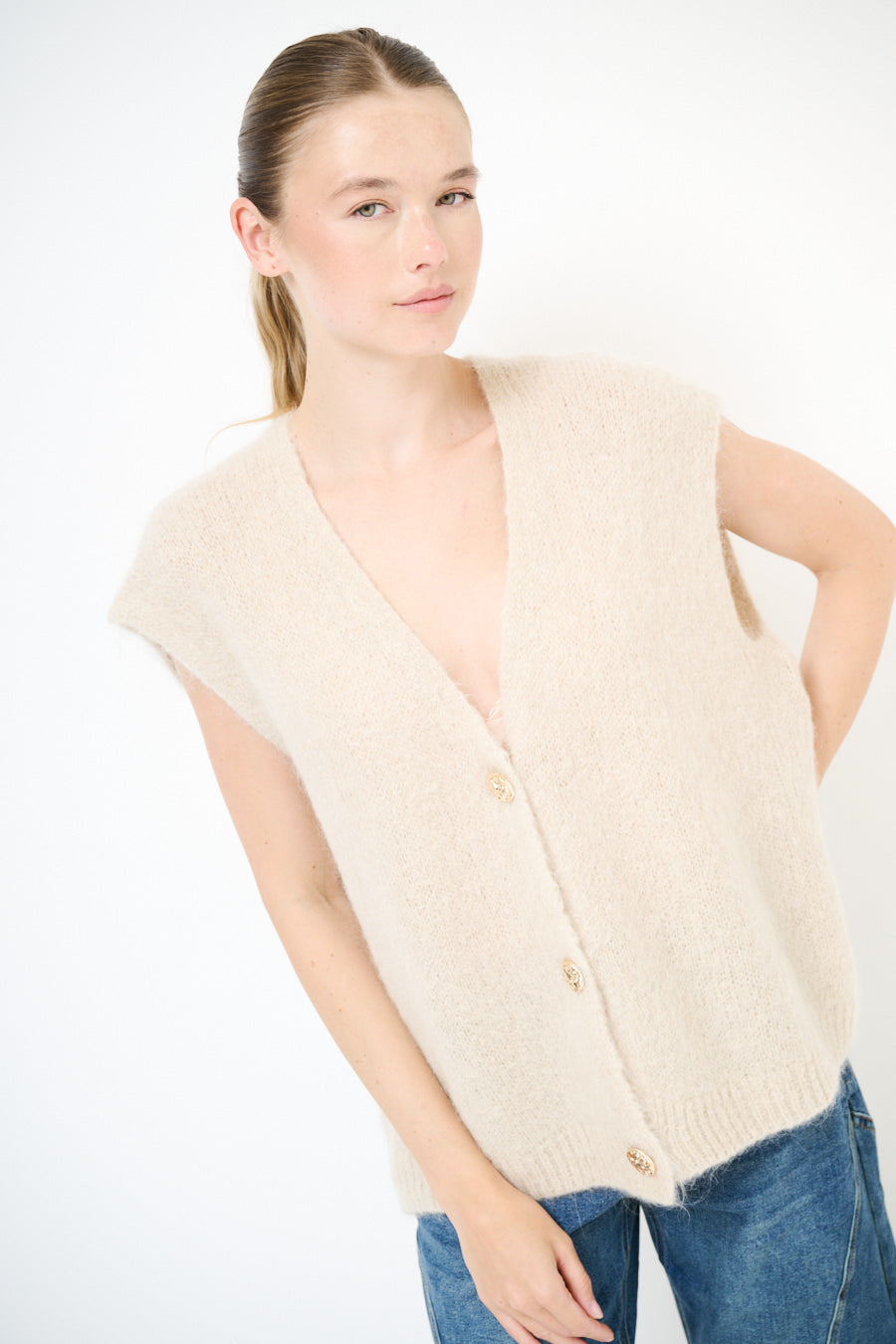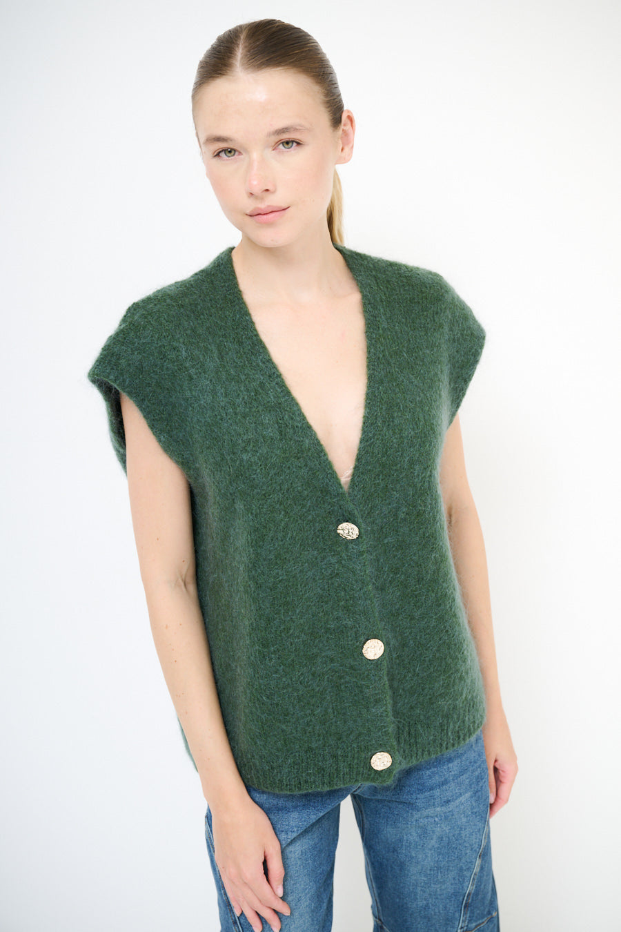 Безруковая вязаная жилет с золотой кнопкой детализации оптом