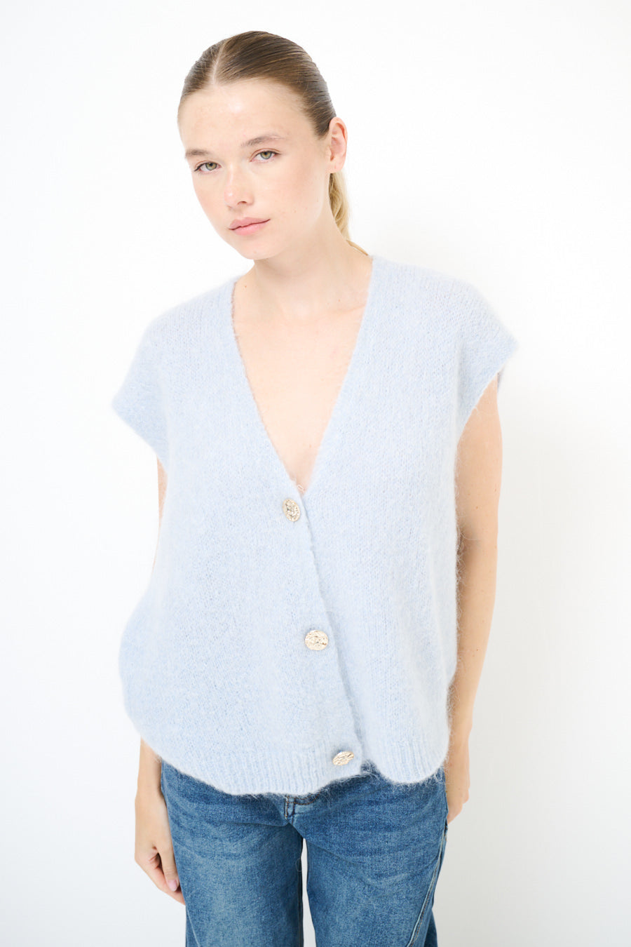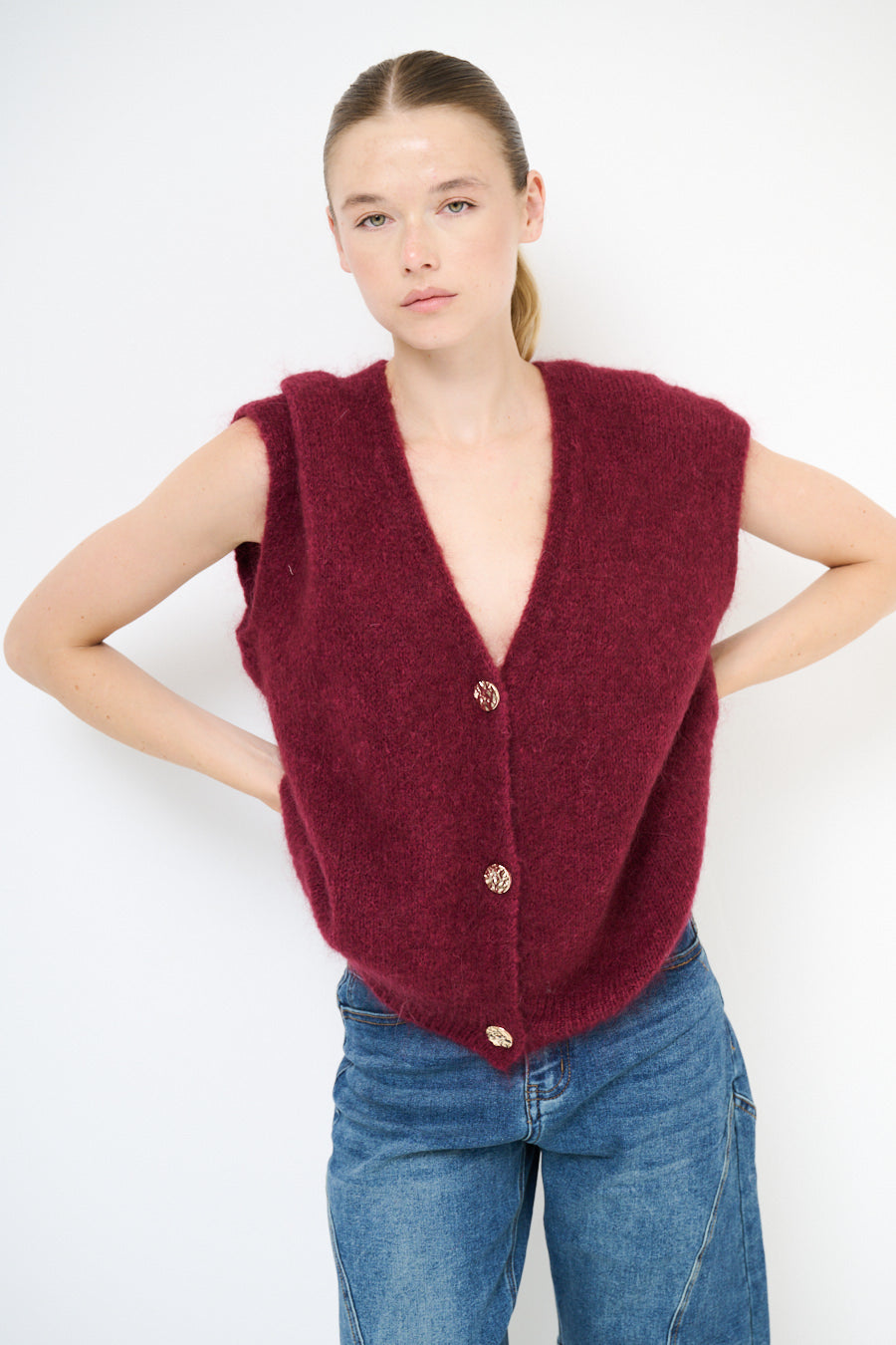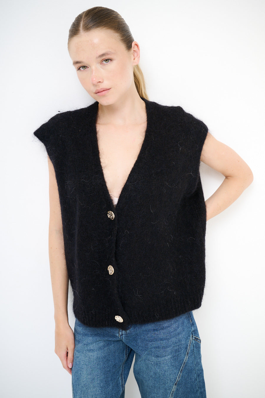 Безруковая вязаная жилет с золотой кнопкой детализации оптом