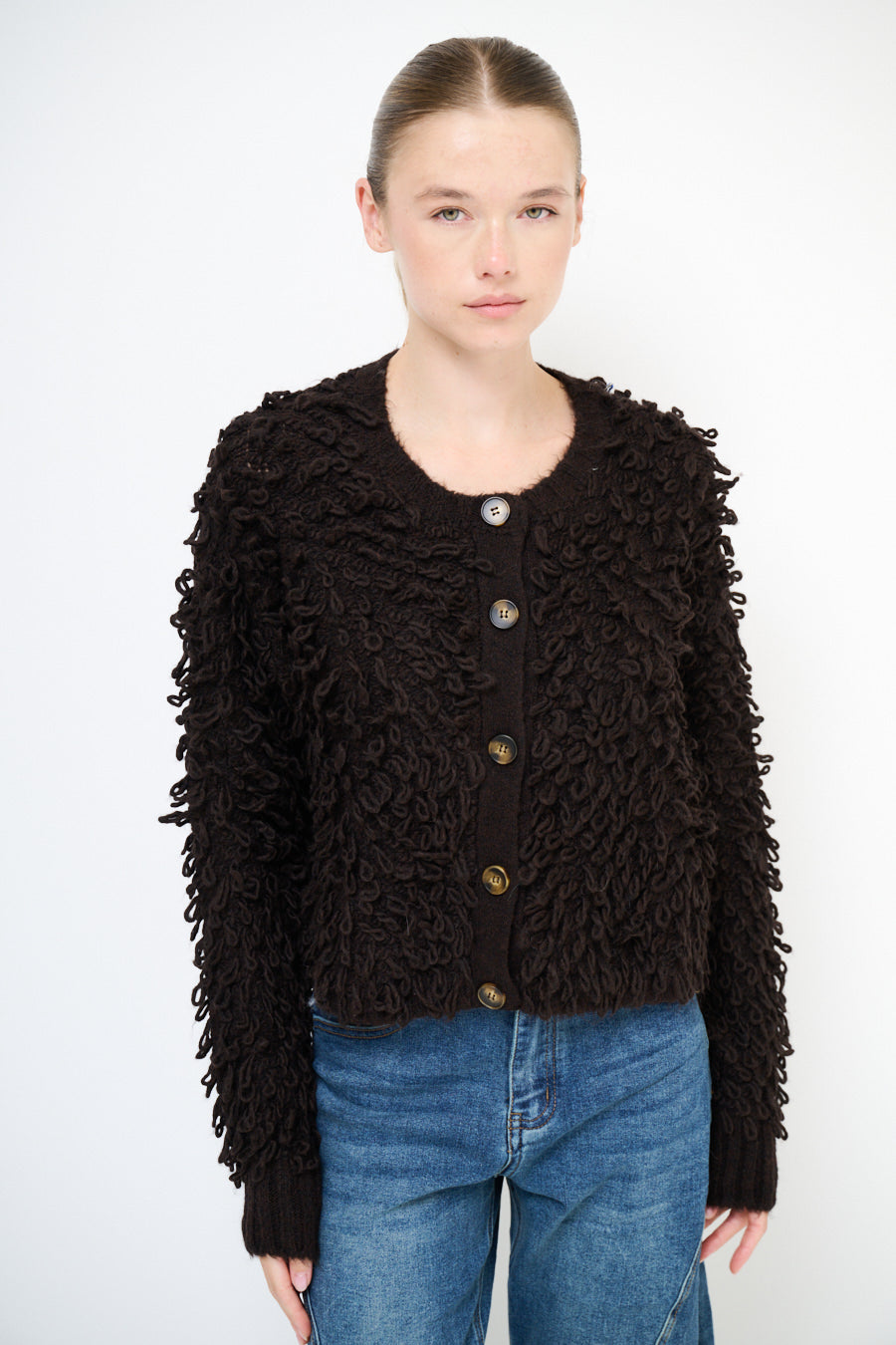 Текстурированная петля кнопка вязания кардиган оптом
